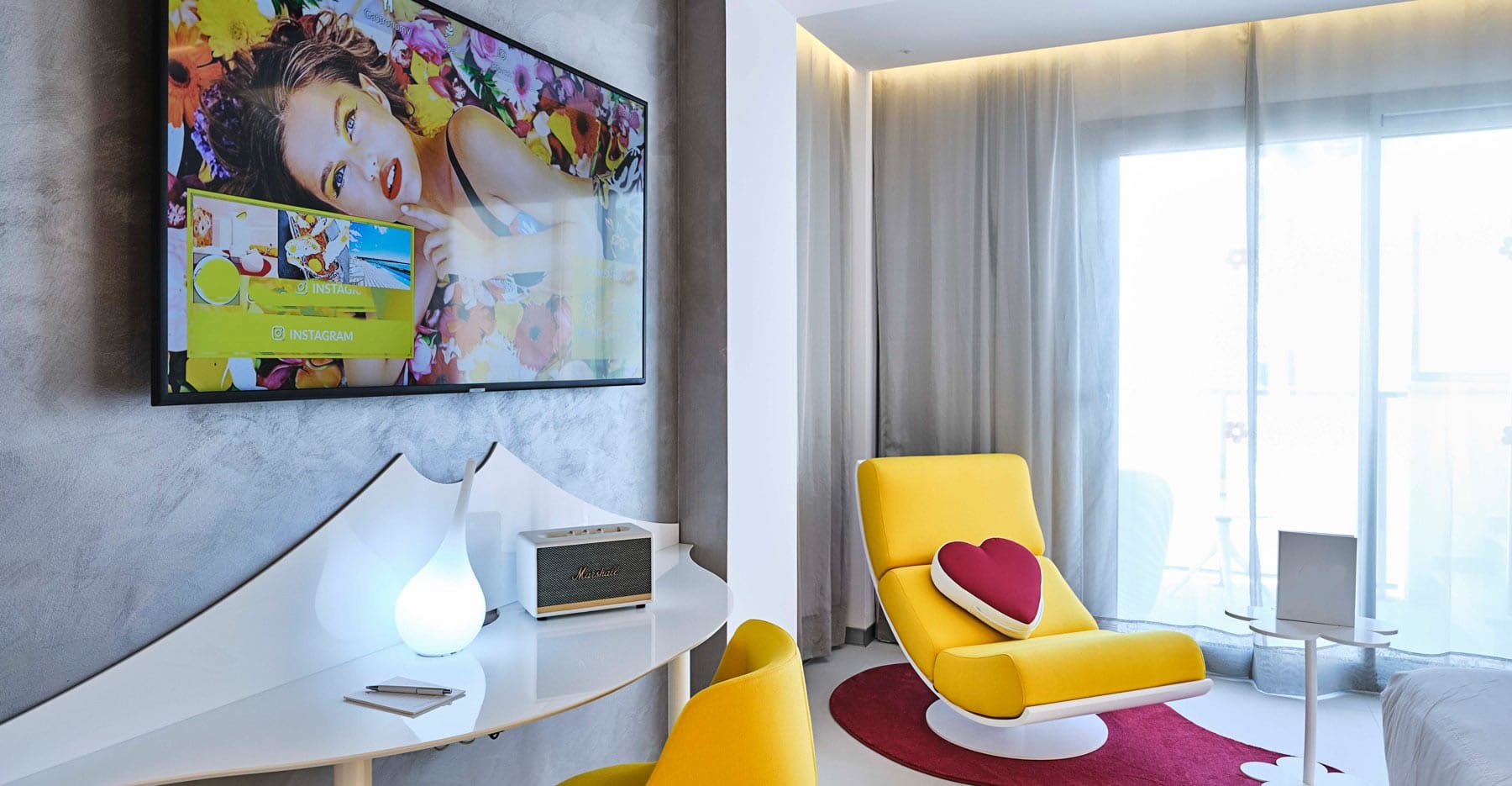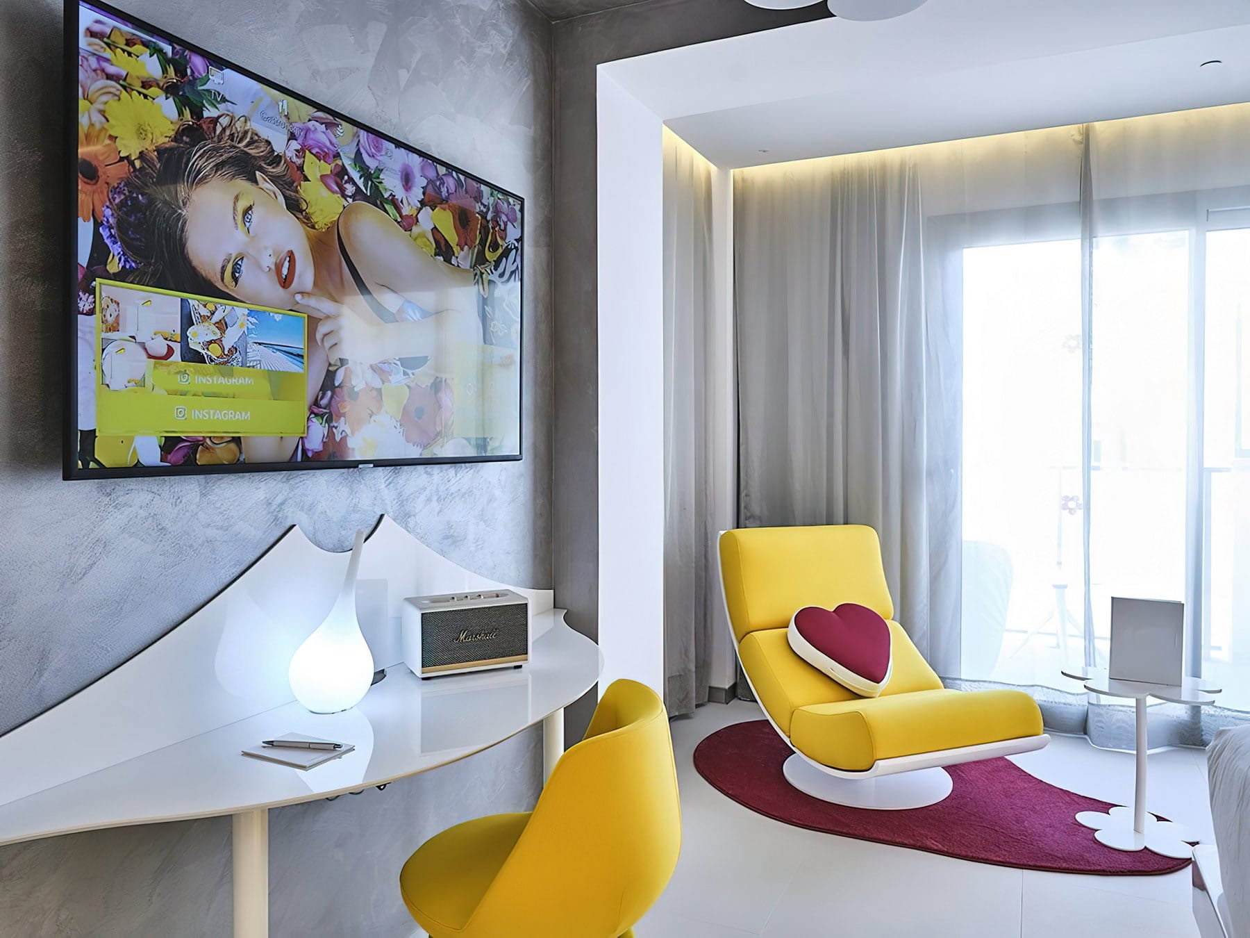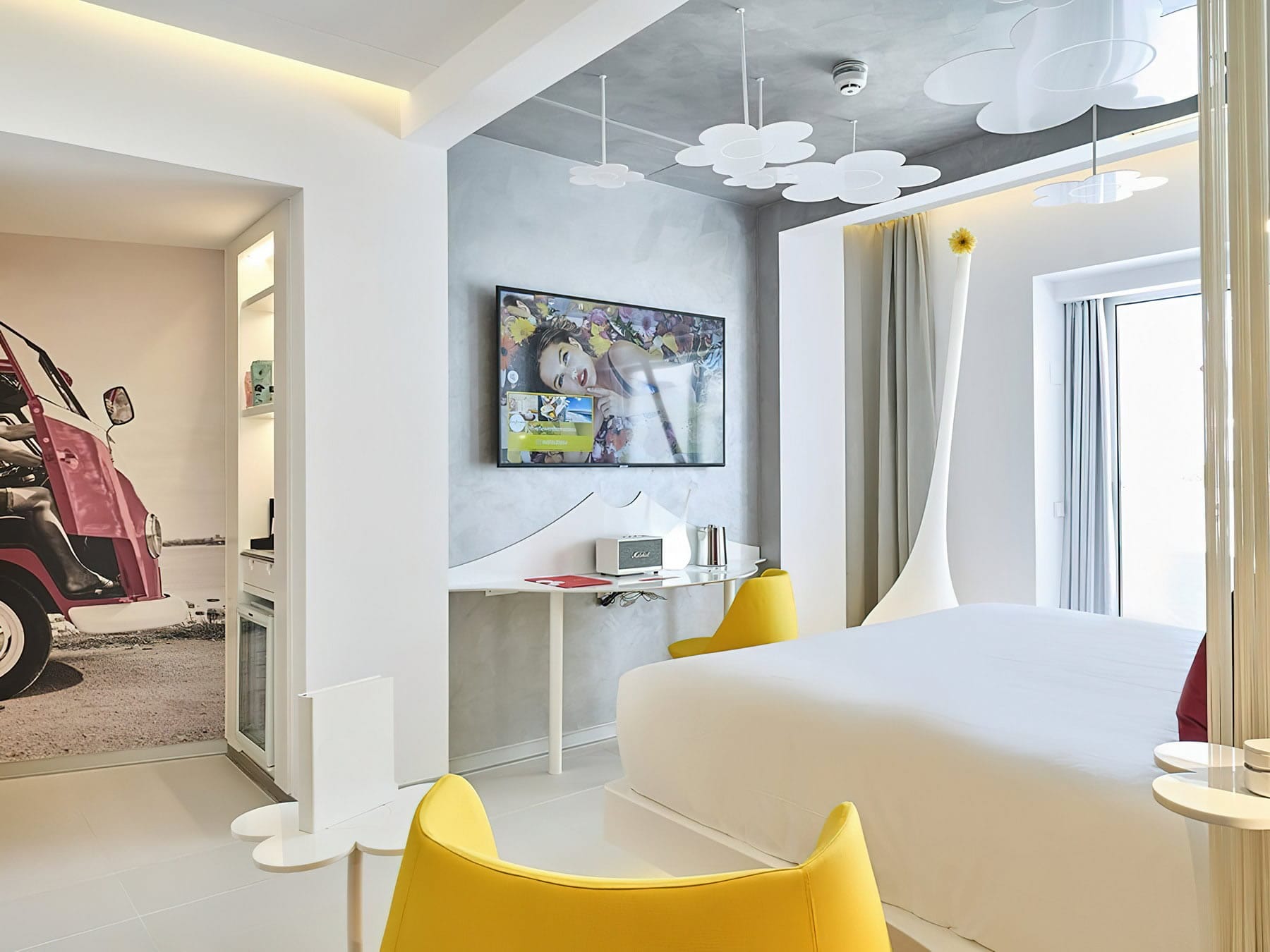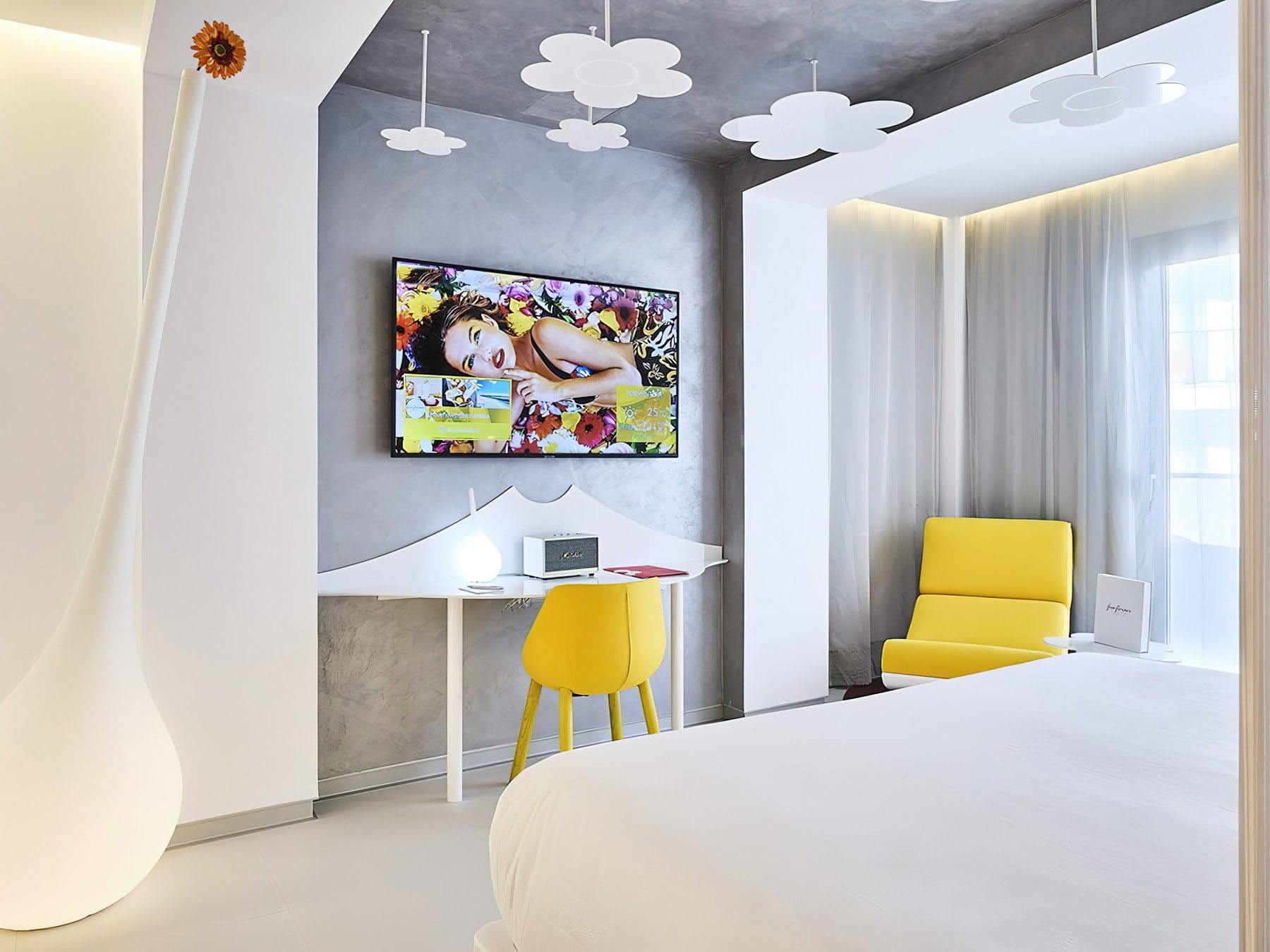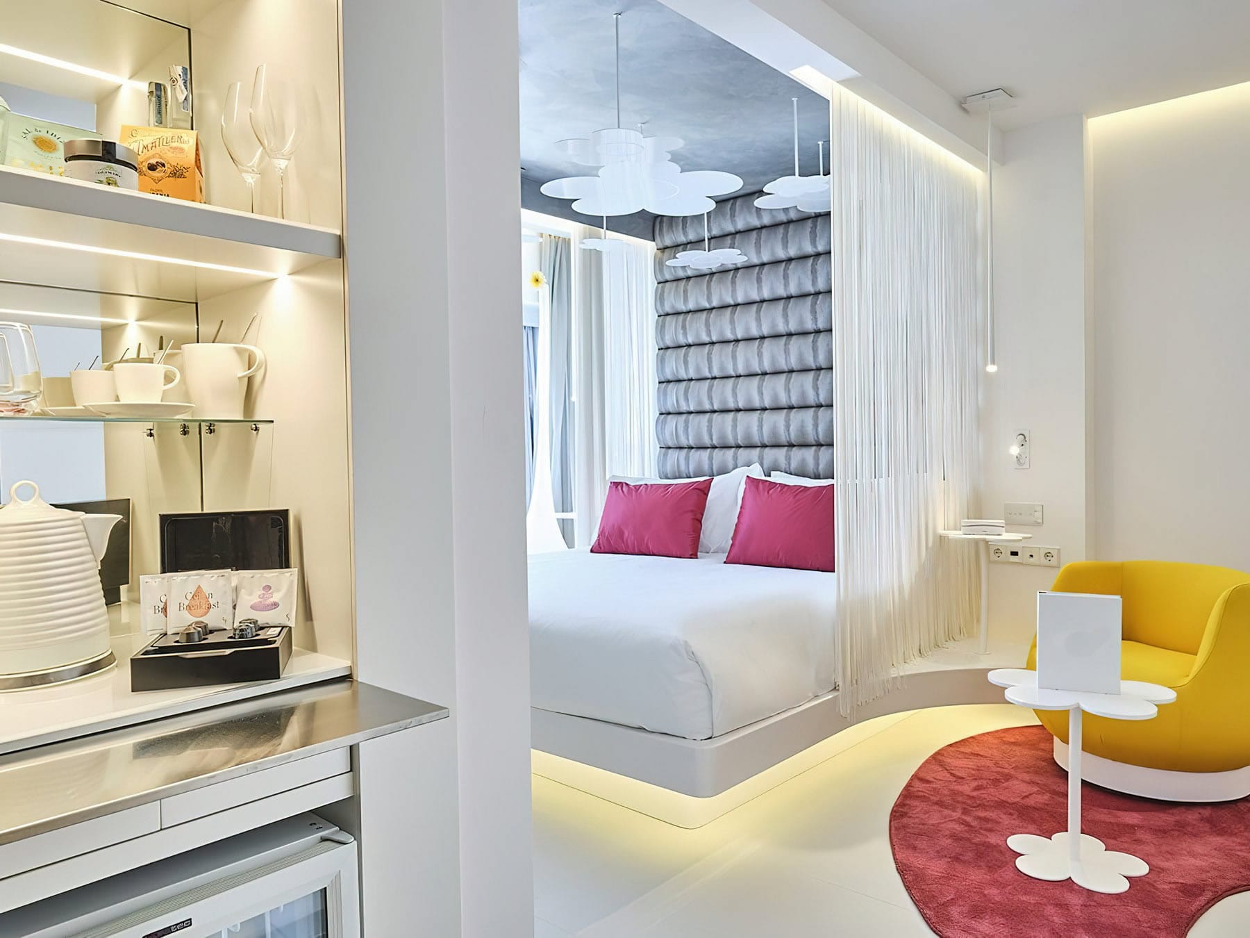 Premium: Rooms with some comfy extra space, larger than the Flower Boutique rooms and measuring up to 34 m2. These rooms have a surface area ranging between 27 m2 and 34 m2, include King-sized double beds or twin beds, as well as an equipped terrace with outdoor table and armchairs.