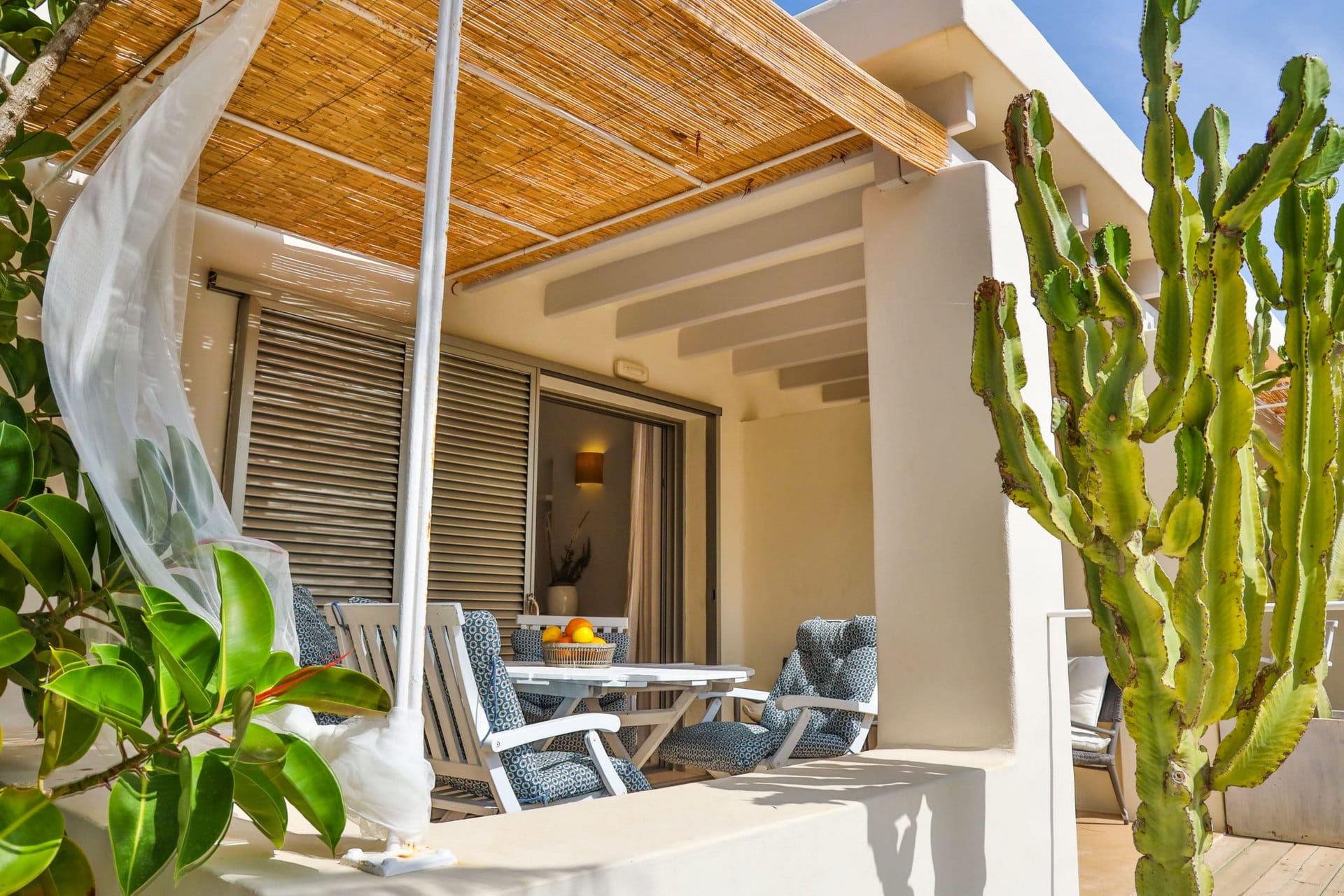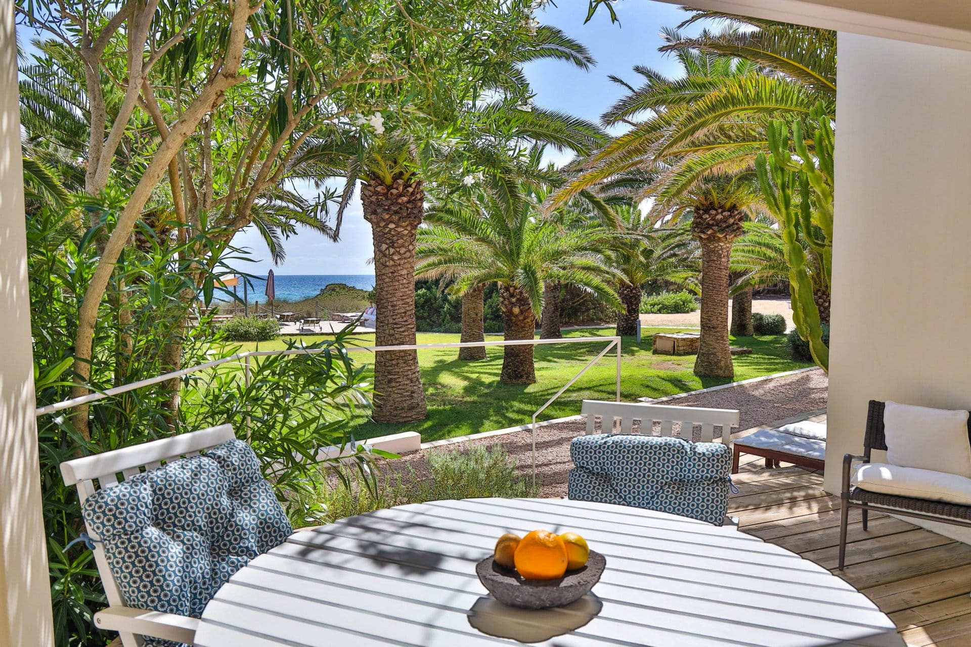 Each apartment has a an spacious terrace from which to enjoy the beautiful blue sea, the great gardens and the mediterranean sun. All apartments are fully equipped (AC, TV, Fridge, Vitro, Microwave…) and nicely decorated.