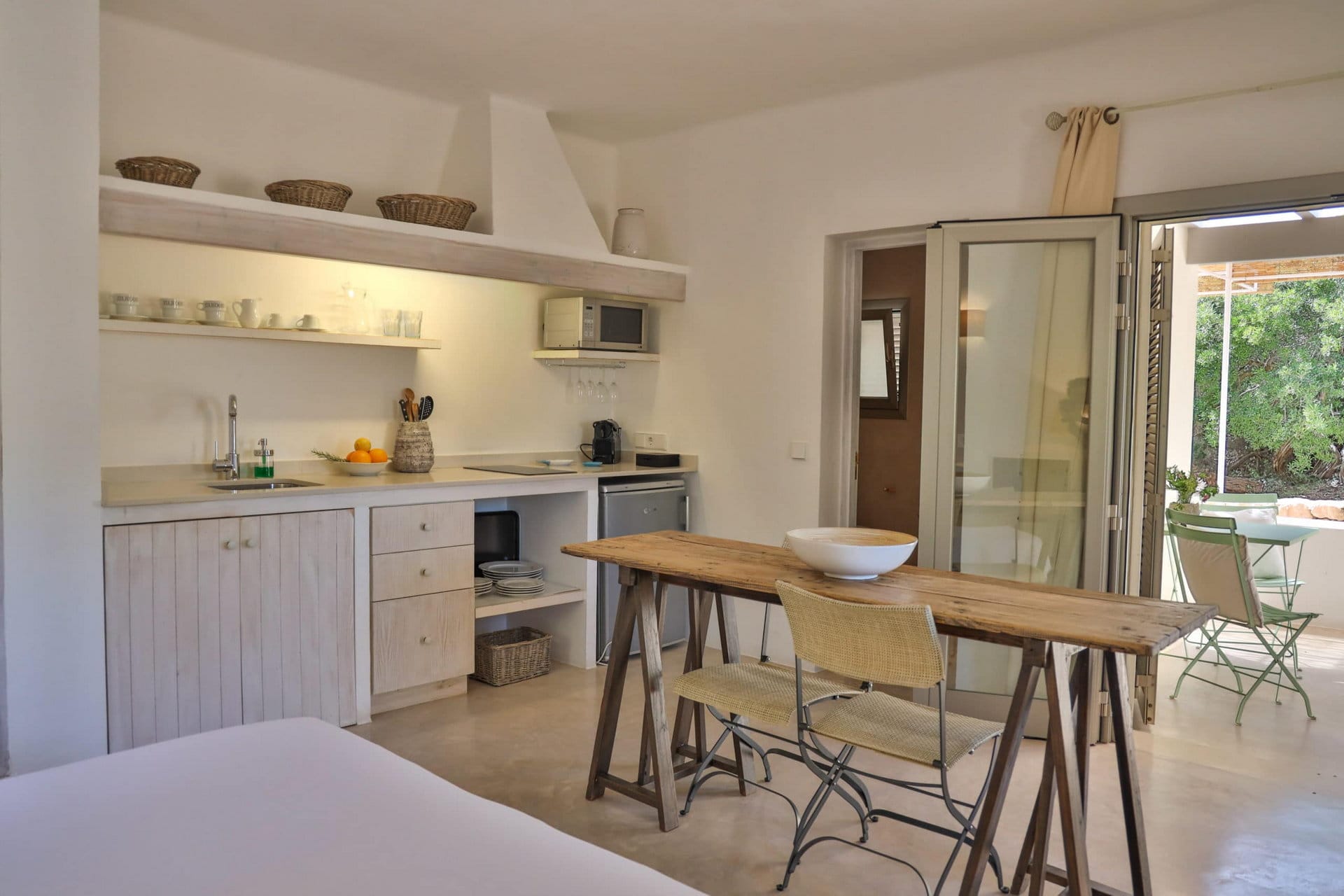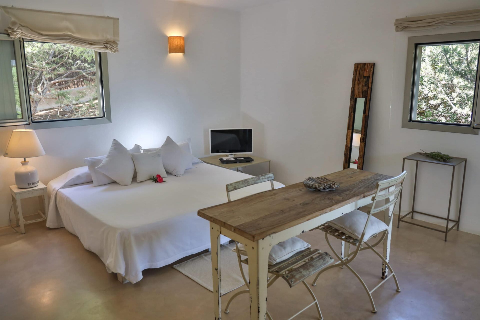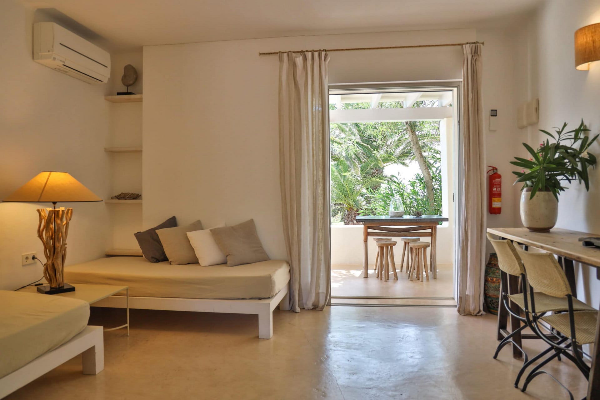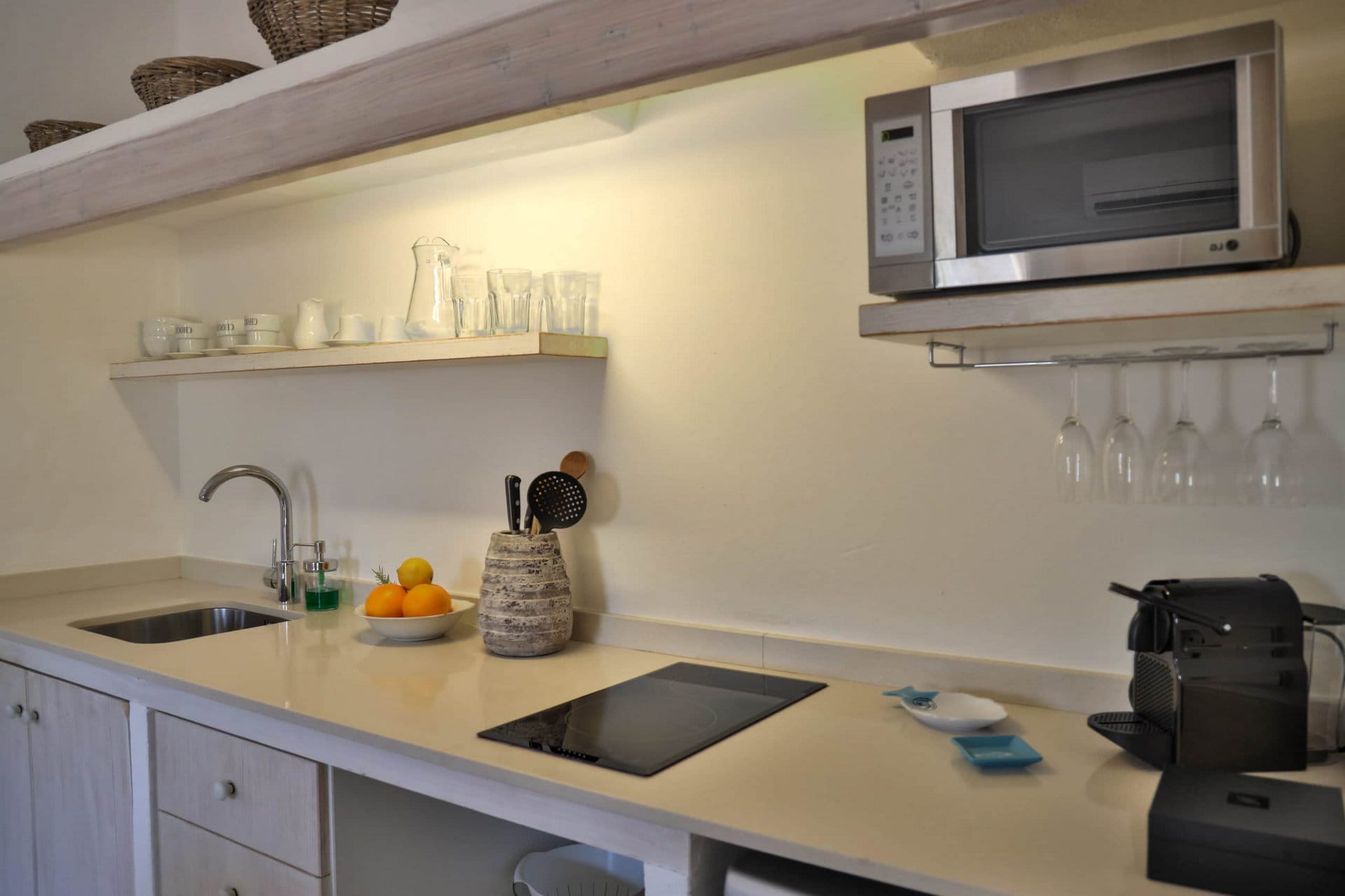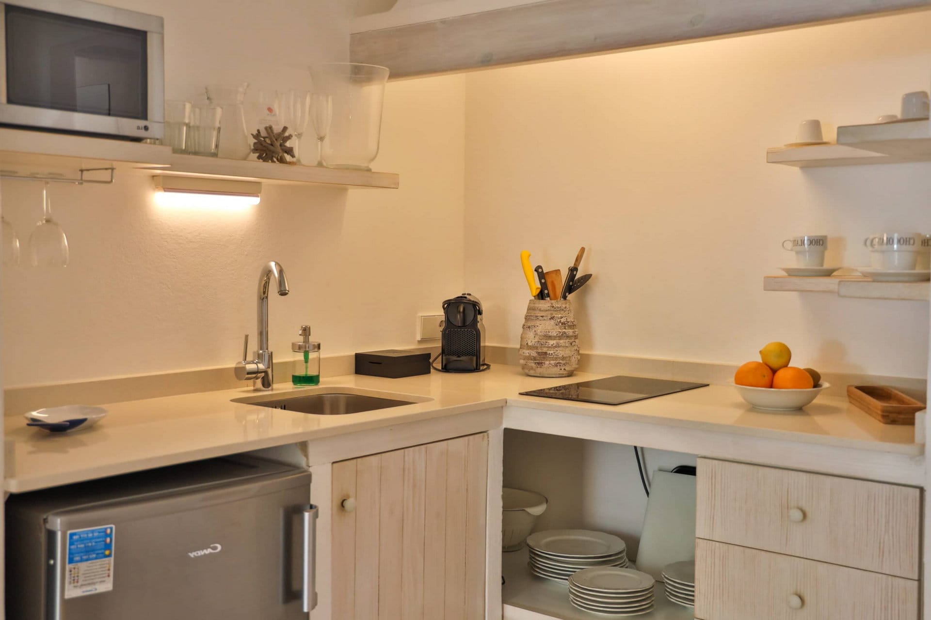 Each studio has a spacious terrace from which to enjoy the great gardens and the Mediterranean sun. All apartments are fully equipped (AC, TV, Fridge, Vitro, Microwave….) and nicely decorated. An open kitchen and lounge, and re-comforting good shower. This studio sleeps