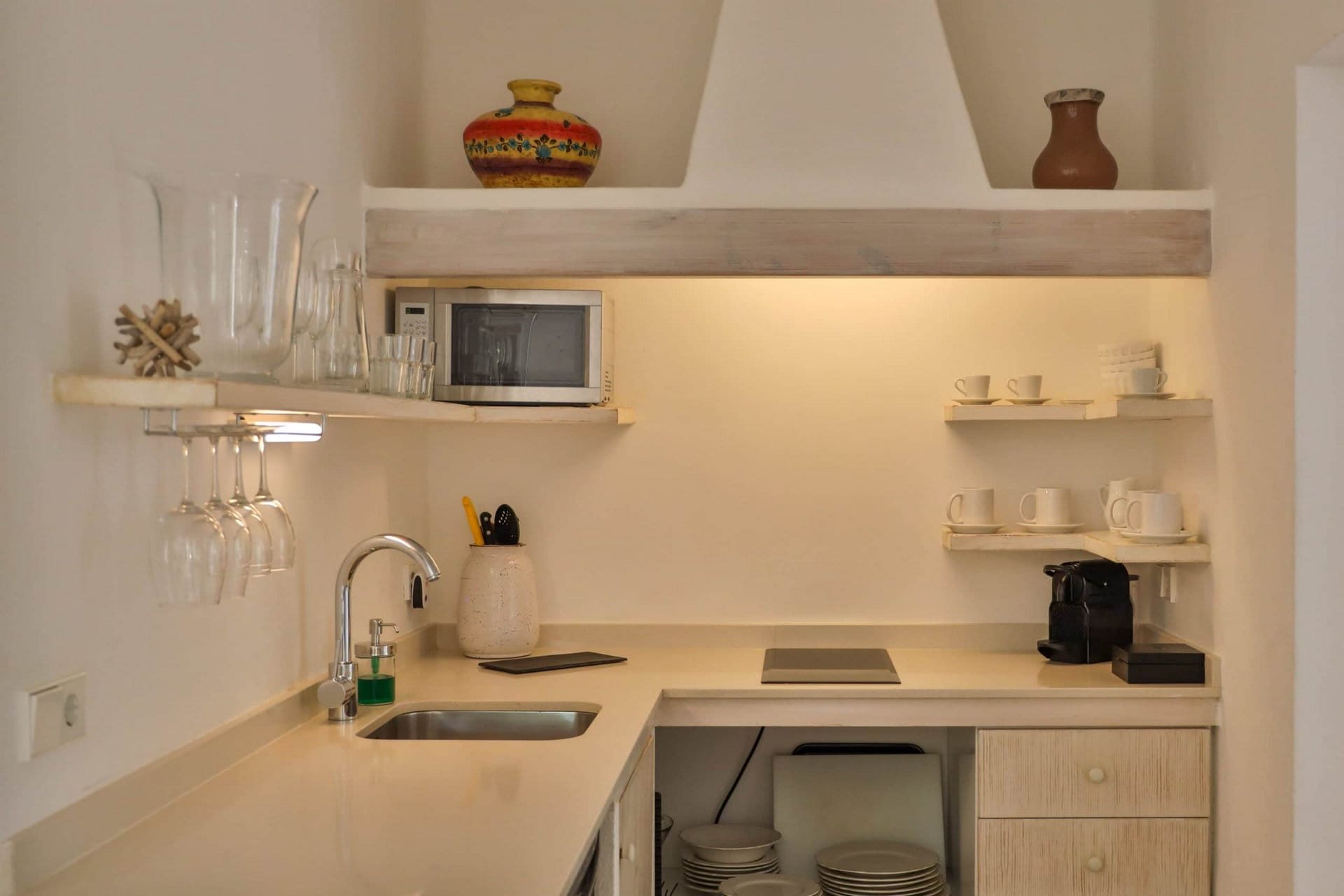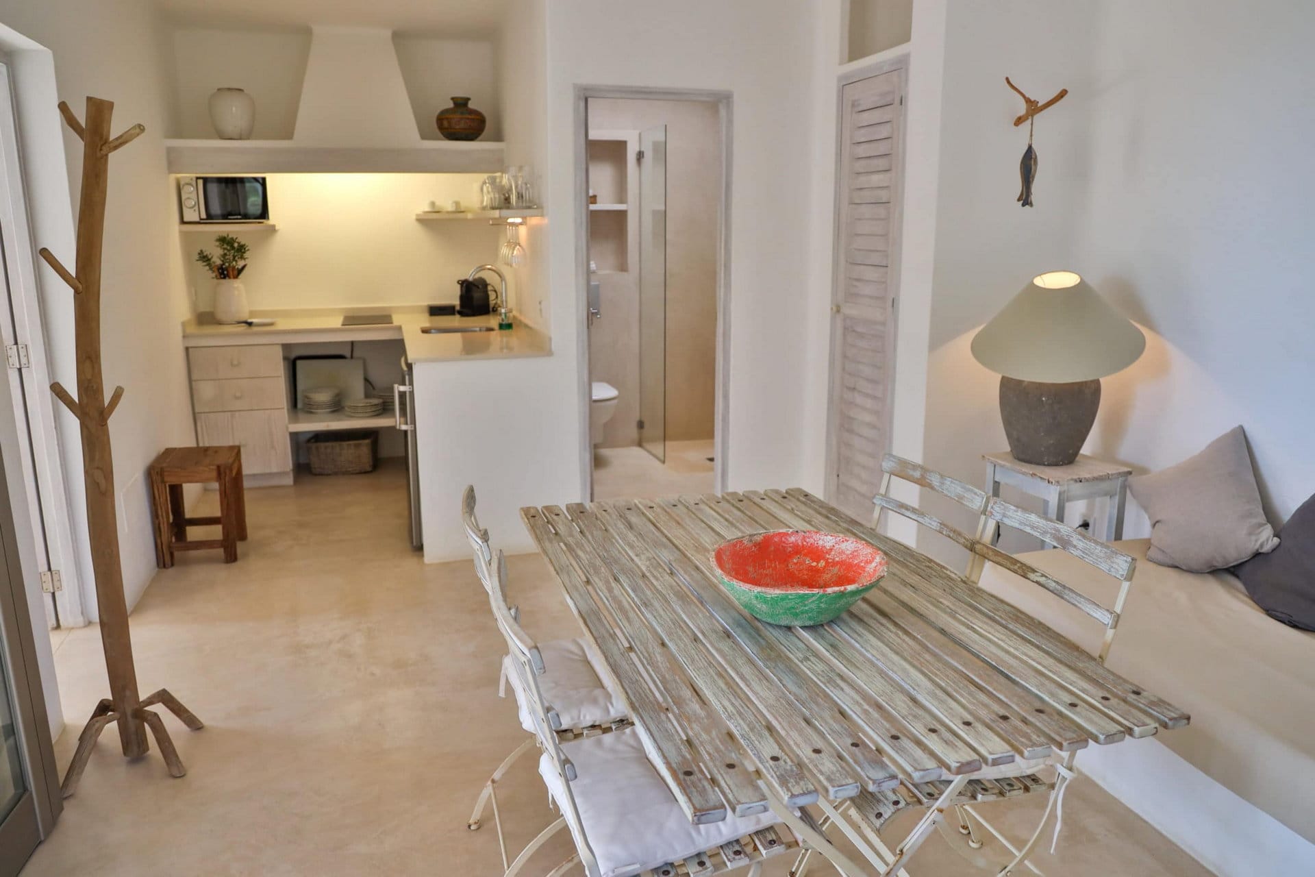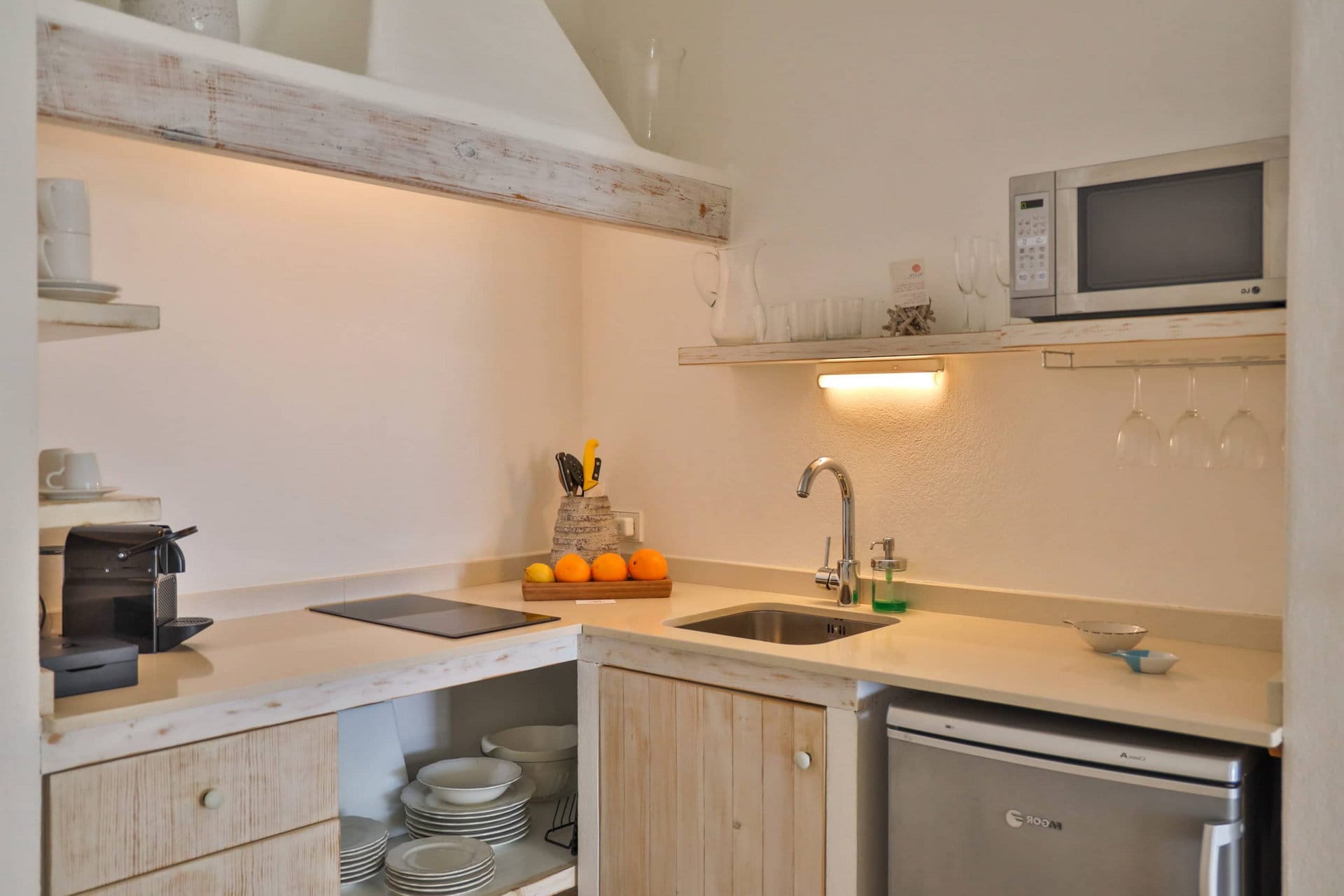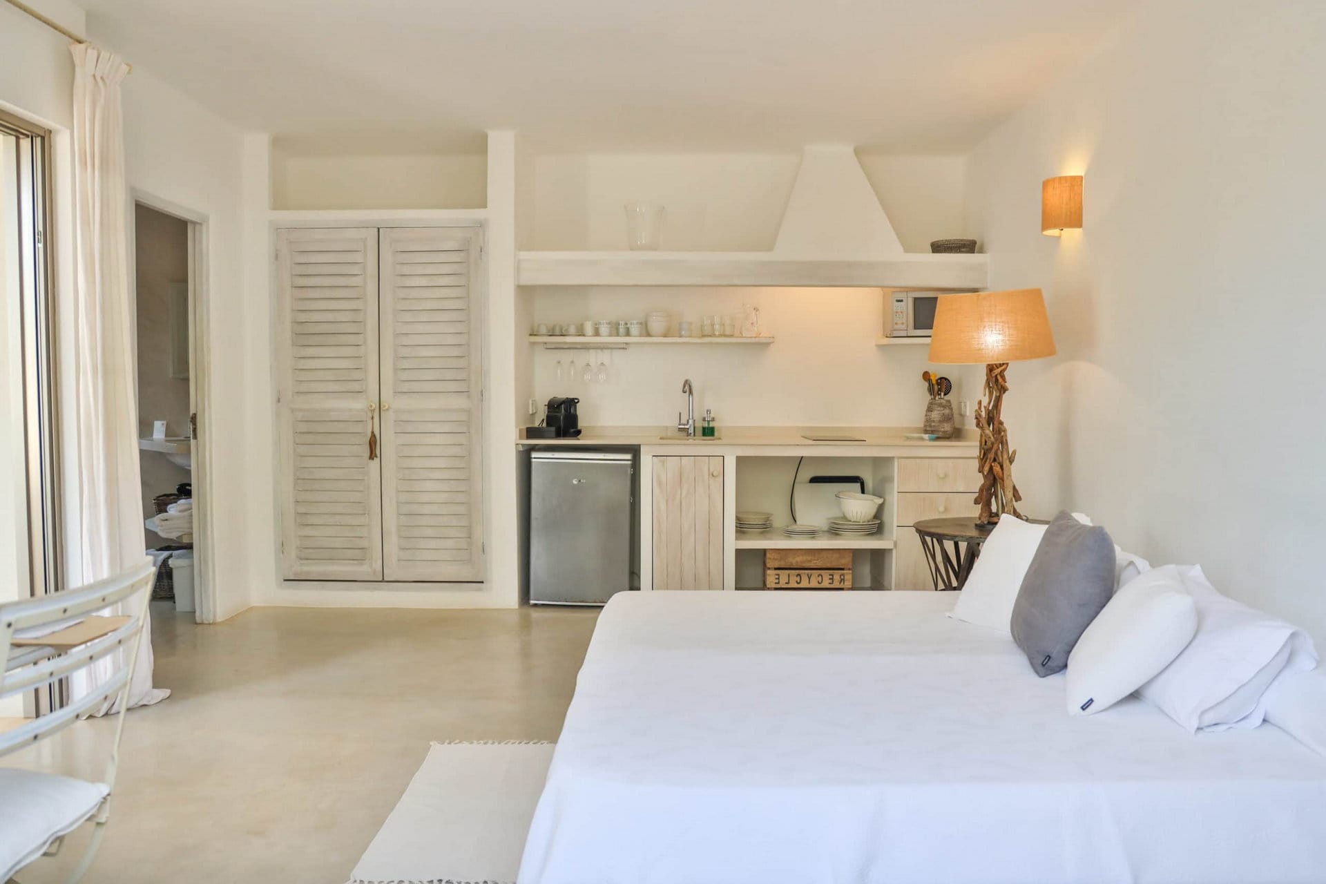 Each studio has a spacious terrace from which to enjoy the great gardens and the Mediterranean sun. All apartments are fully equipped (AC, TV, Fridge, Vitro, Microwave….) and nicely decorated. An open kitchen and lounge, and re-comforting good shower. This studio sleeps