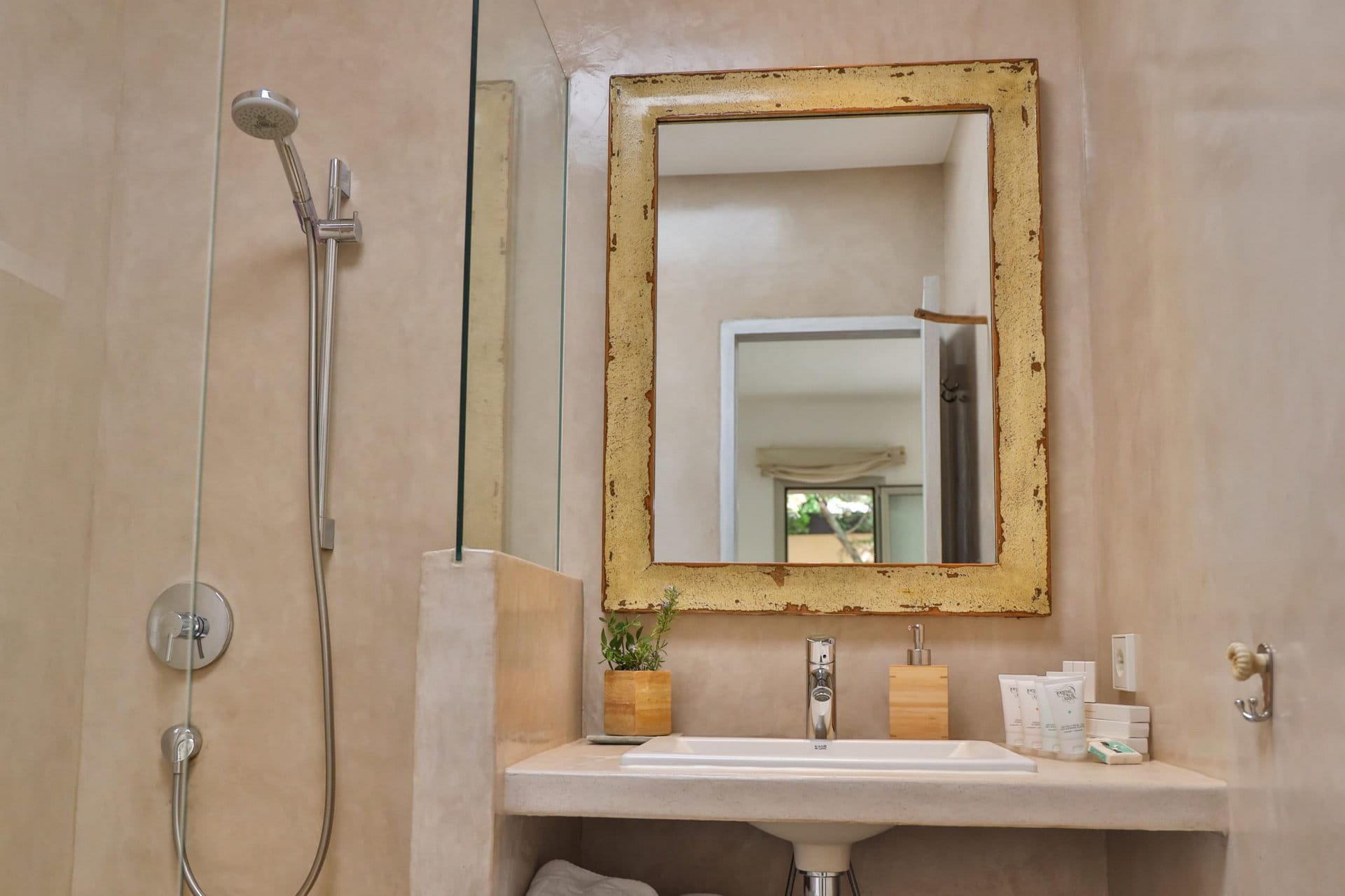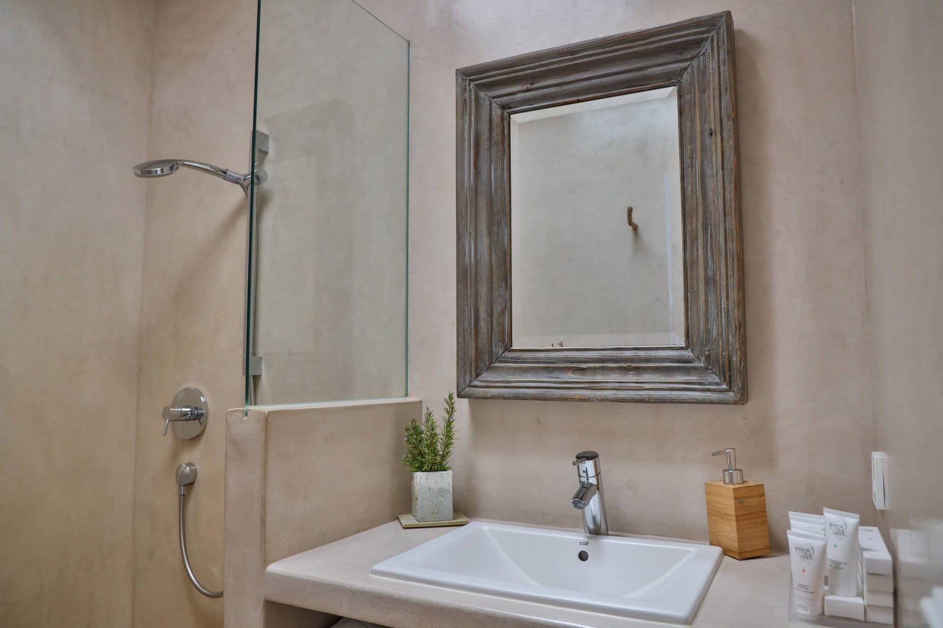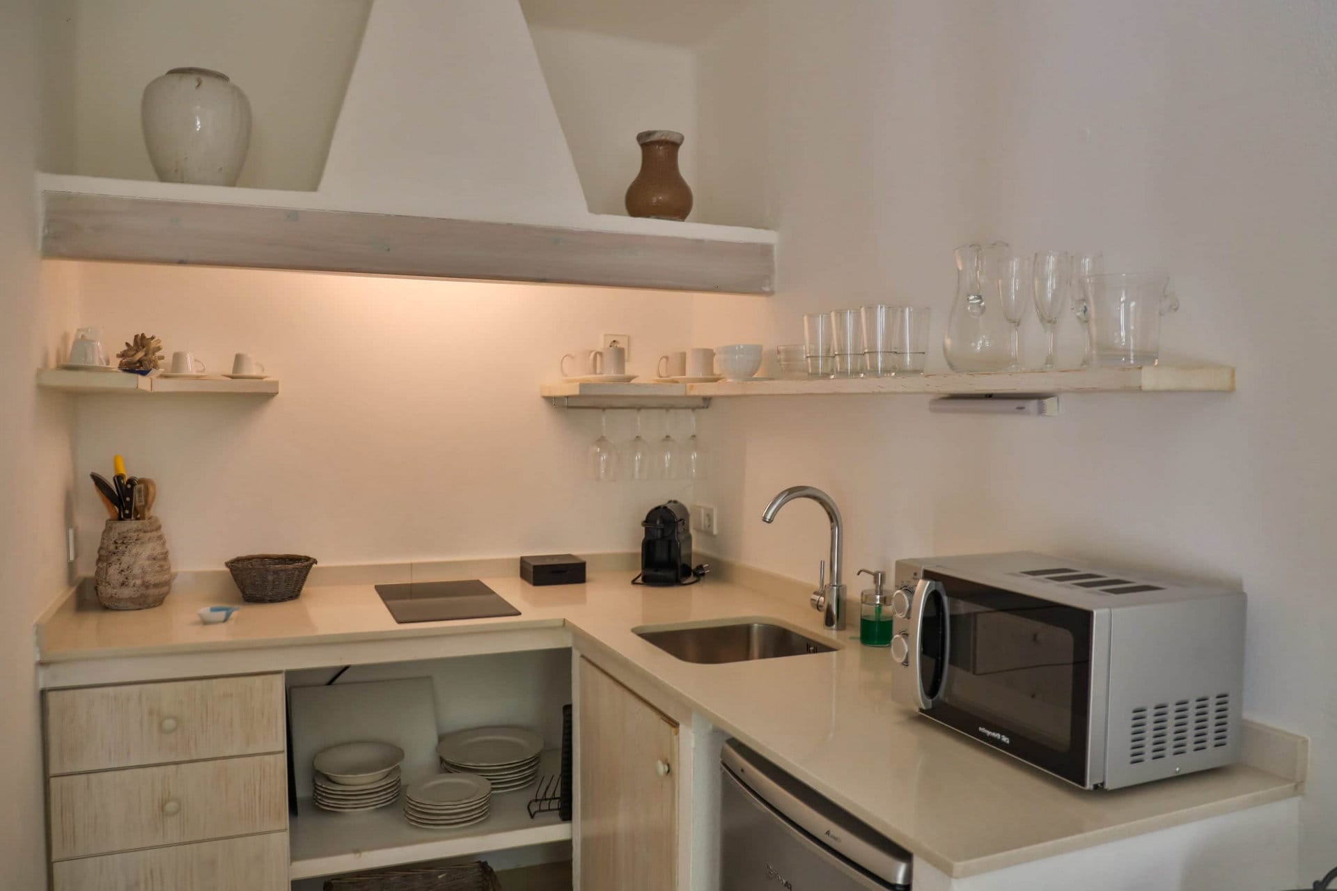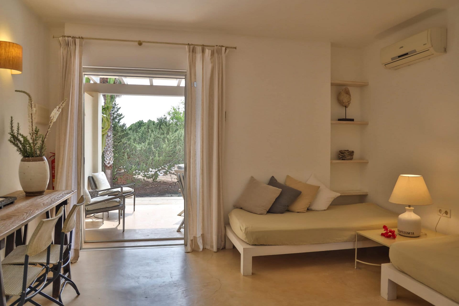 Each studio has a spacious terrace from which to enjoy the great gardens and the Mediterranean sun. All apartments are fully equipped (AC, TV, Fridge, Vitro, Microwave….) and nicely decorated. An open kitchen and lounge, and re-comforting good shower. This studio sleeps