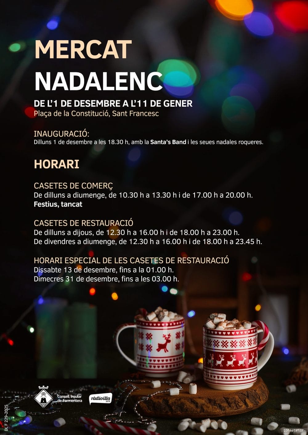 Experience the magic of the season at the Christmas Market in Sant Francesc. Festive stalls, food, music and a warm holiday atmosphere in the heart of the island, perfect for all ages.