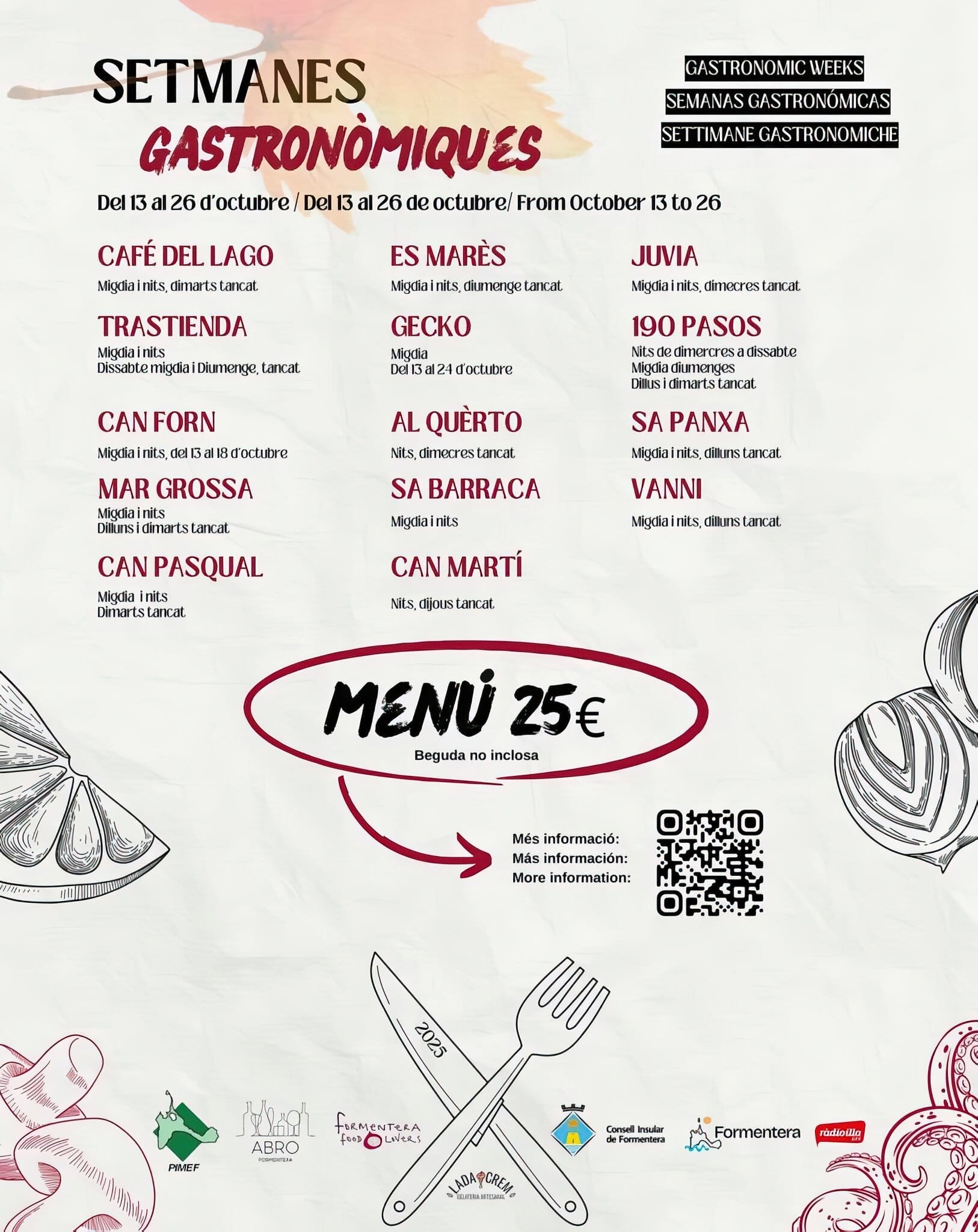 🍴 Gastronomic Weeks in Formentera From October 13 to 26 Get ready to enjoy two delicious weeks celebrating the authentic flavors of Formentera!During the Gastronomic