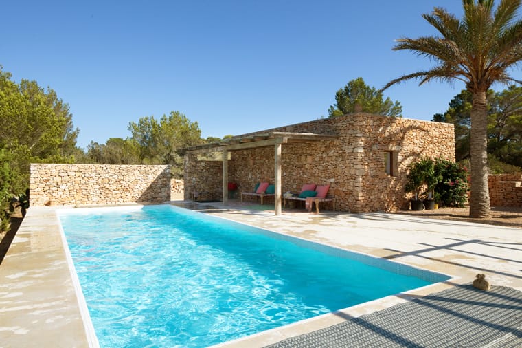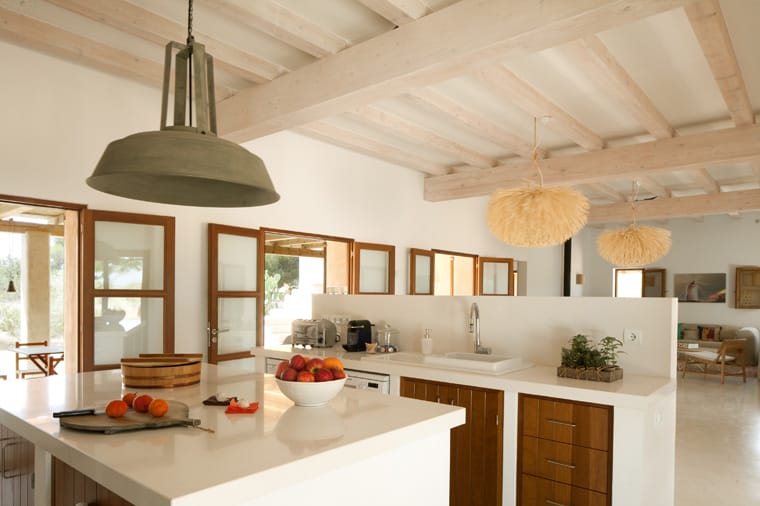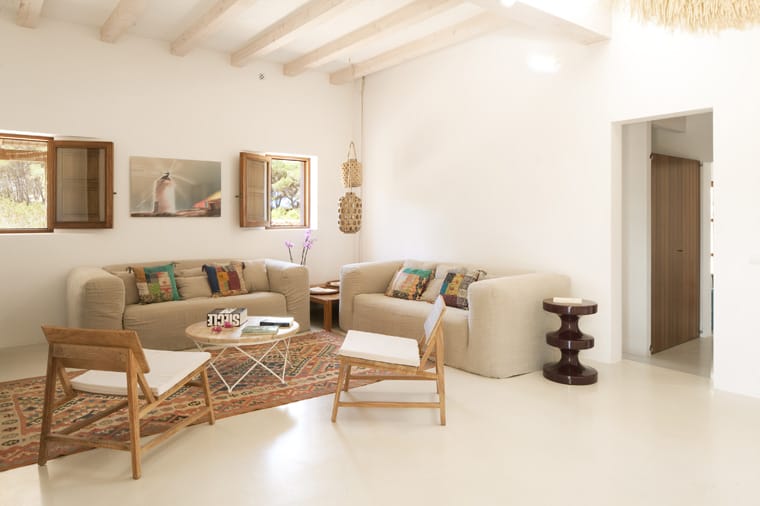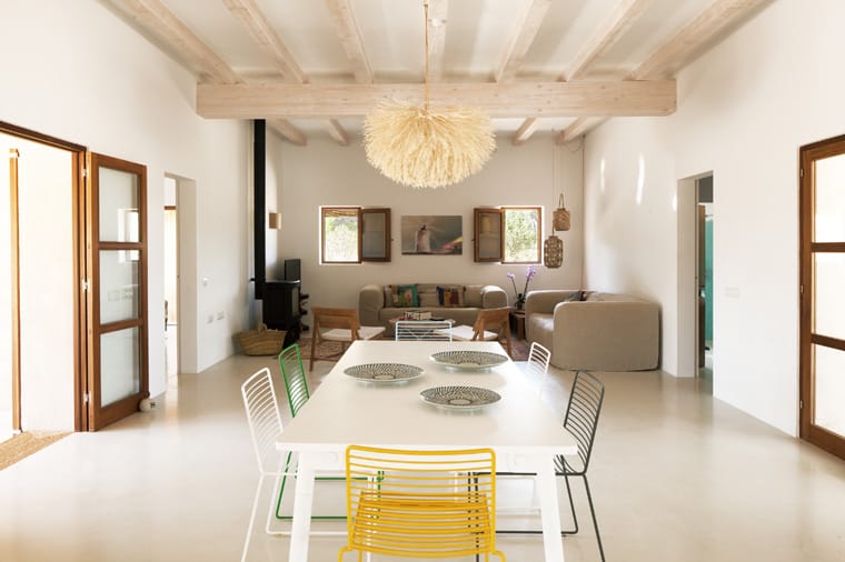 Located in a quiet and beautiful area of the Cap de Barbaria. Finished with modern furniture combined with the typical Formentera architecture and the rural surroundings, this is a great place to spend your long stay on the island. This luxury villa for rent has a total of five bedrooms, all with their own bathroom.