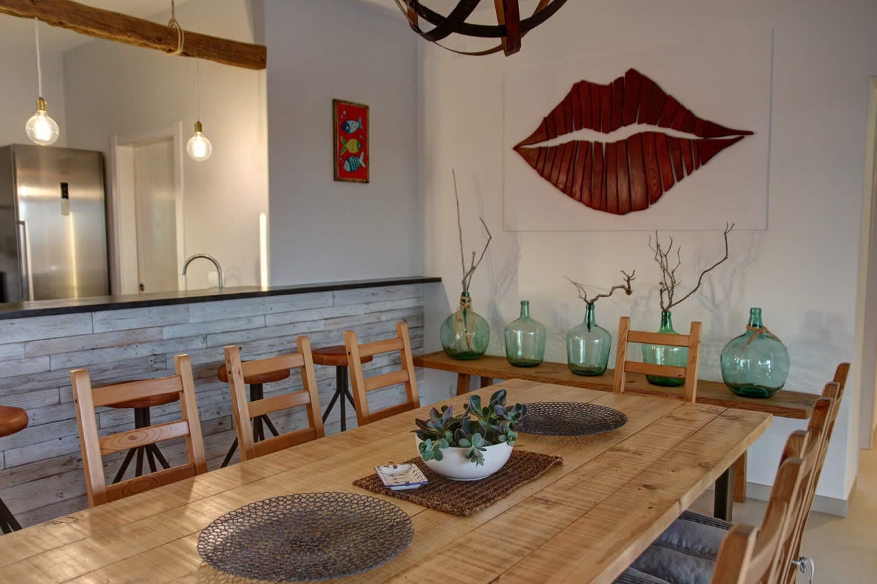 The cozy interior is presented in a stylish yet rustic manner and is perfectly furnished to compliment the style of the villa. The light and stylish colouring combined create a cooling summer ambience for an unforgettable holiday.