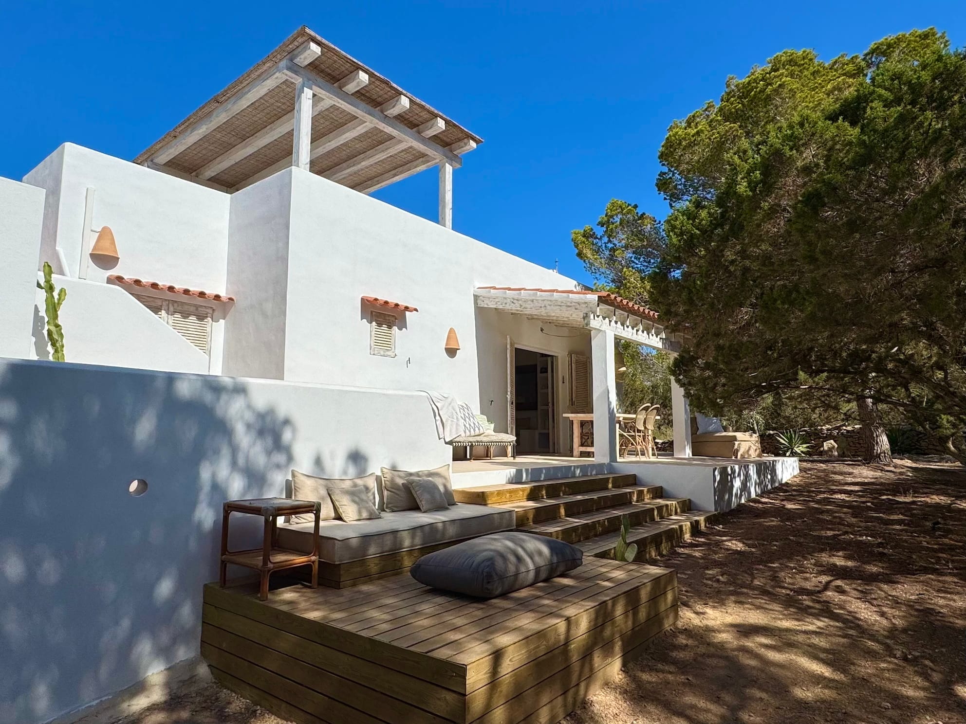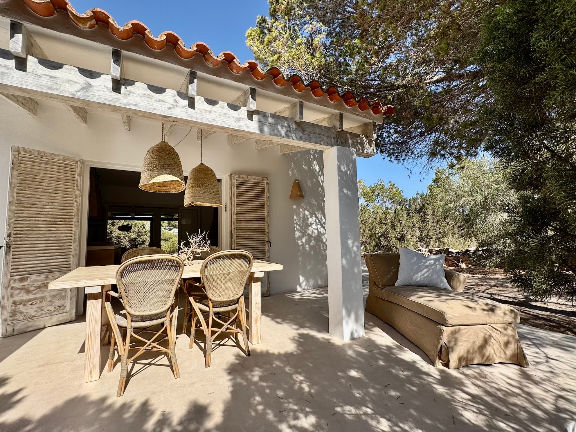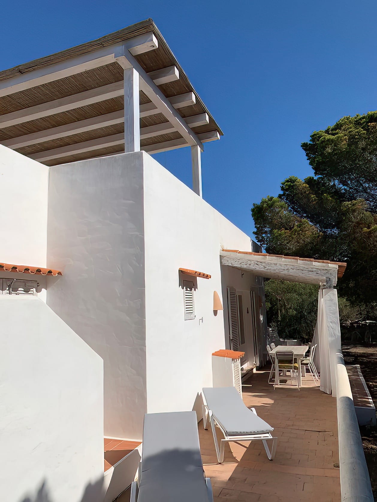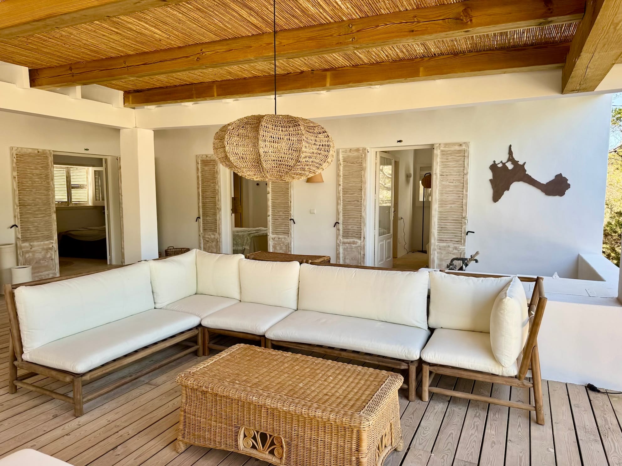 There is a beautiful garden and terraced spaces outside, perfect for spending long, relaxed days basking in the sunshine of Formentera.