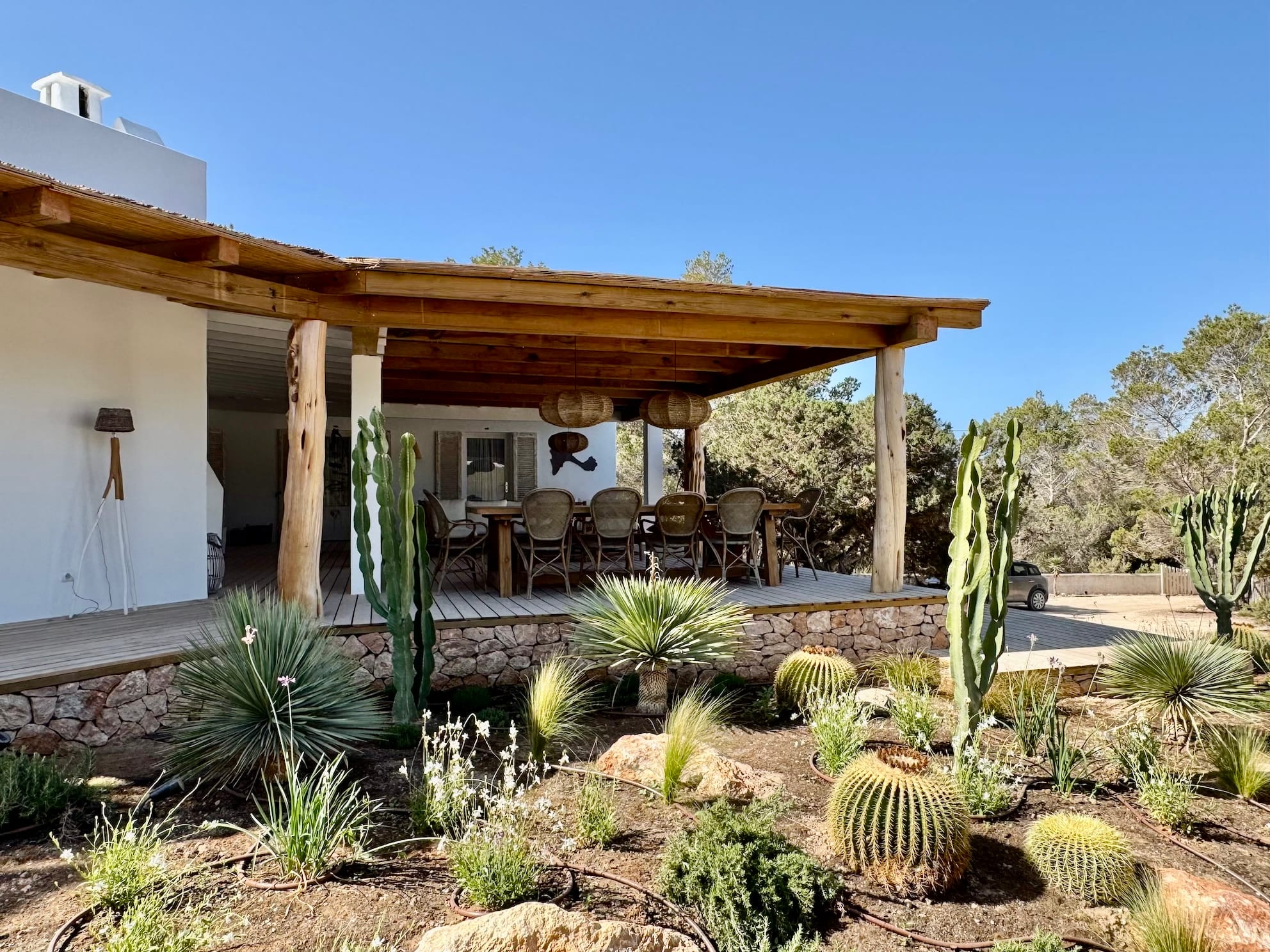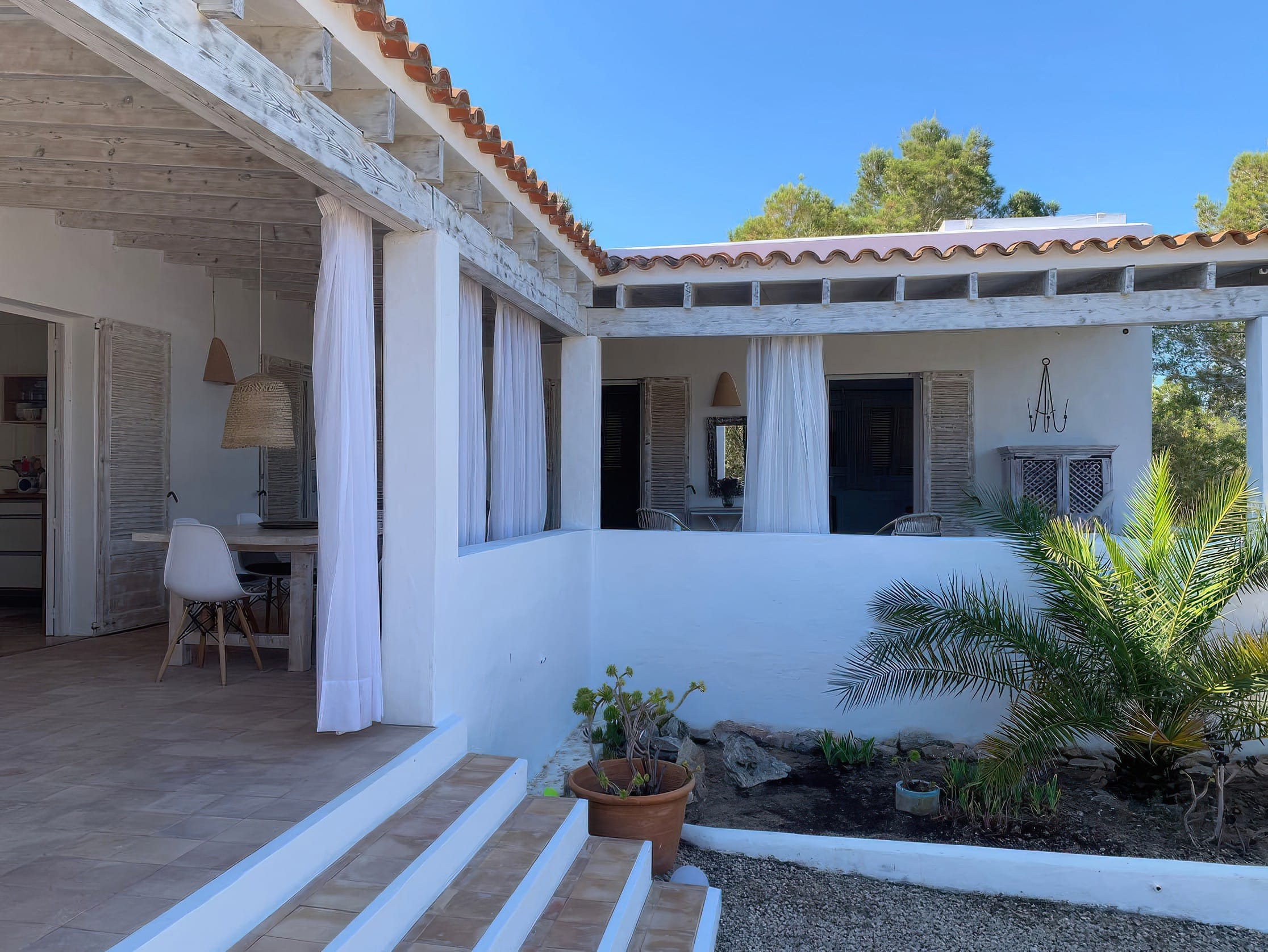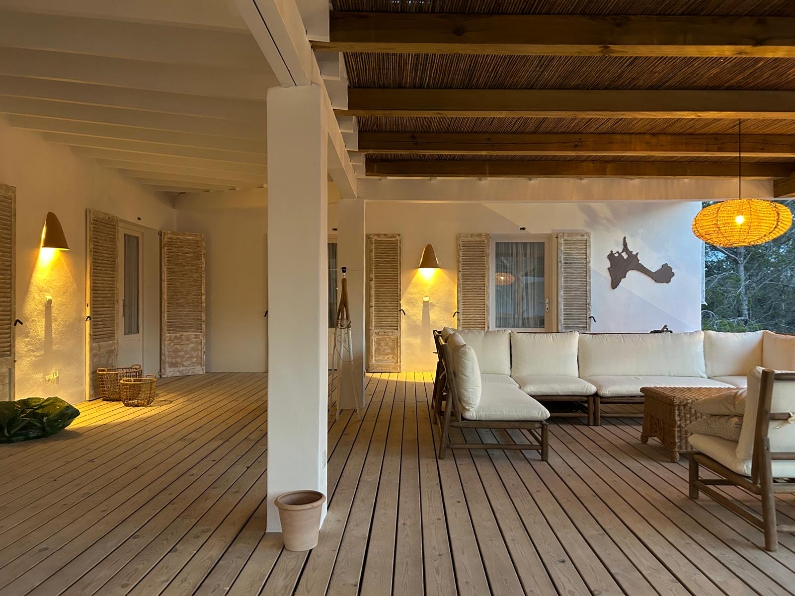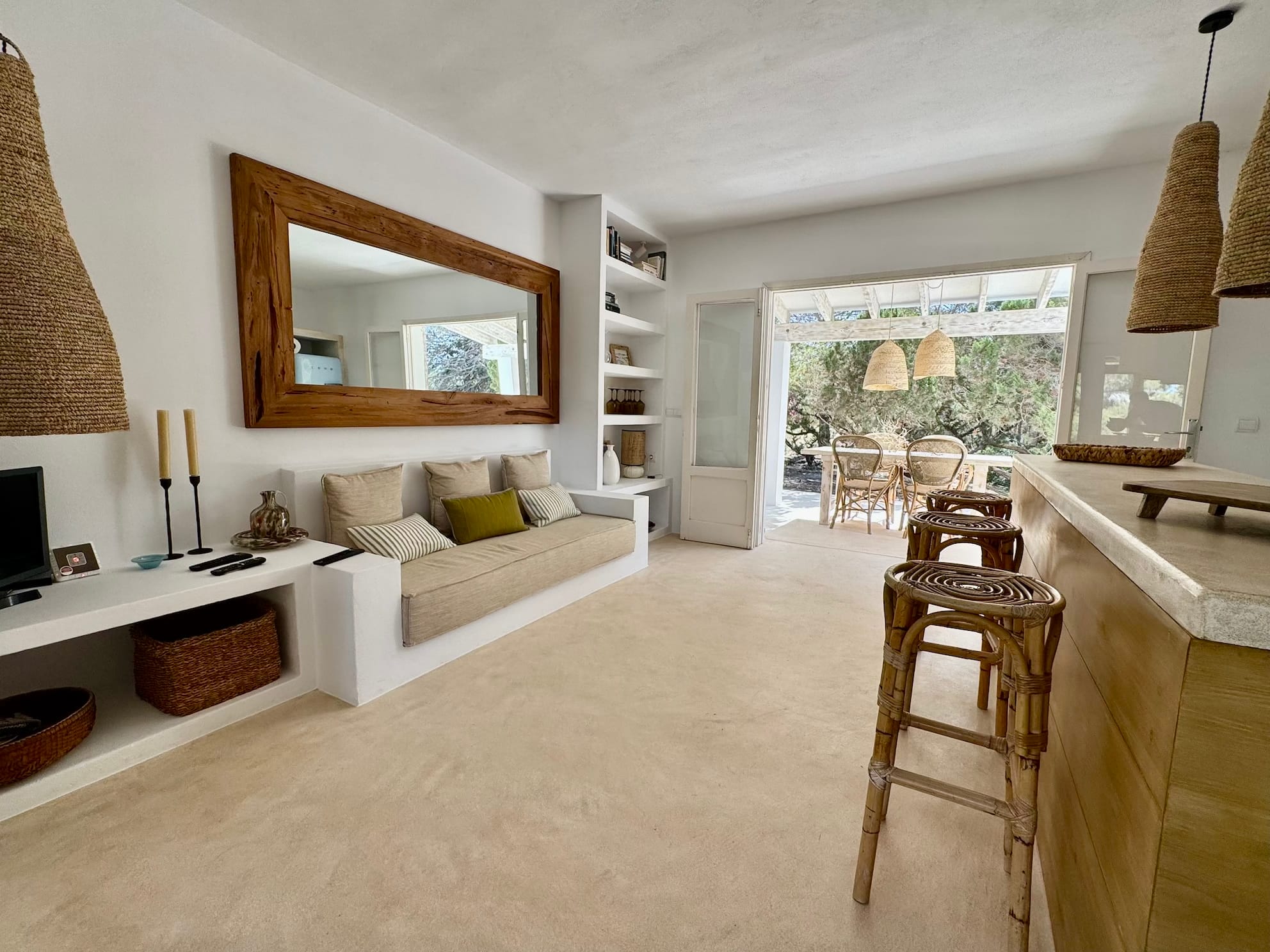 There is a beautiful garden and terraced spaces outside, perfect for spending long, relaxed days basking in the sunshine of Formentera.