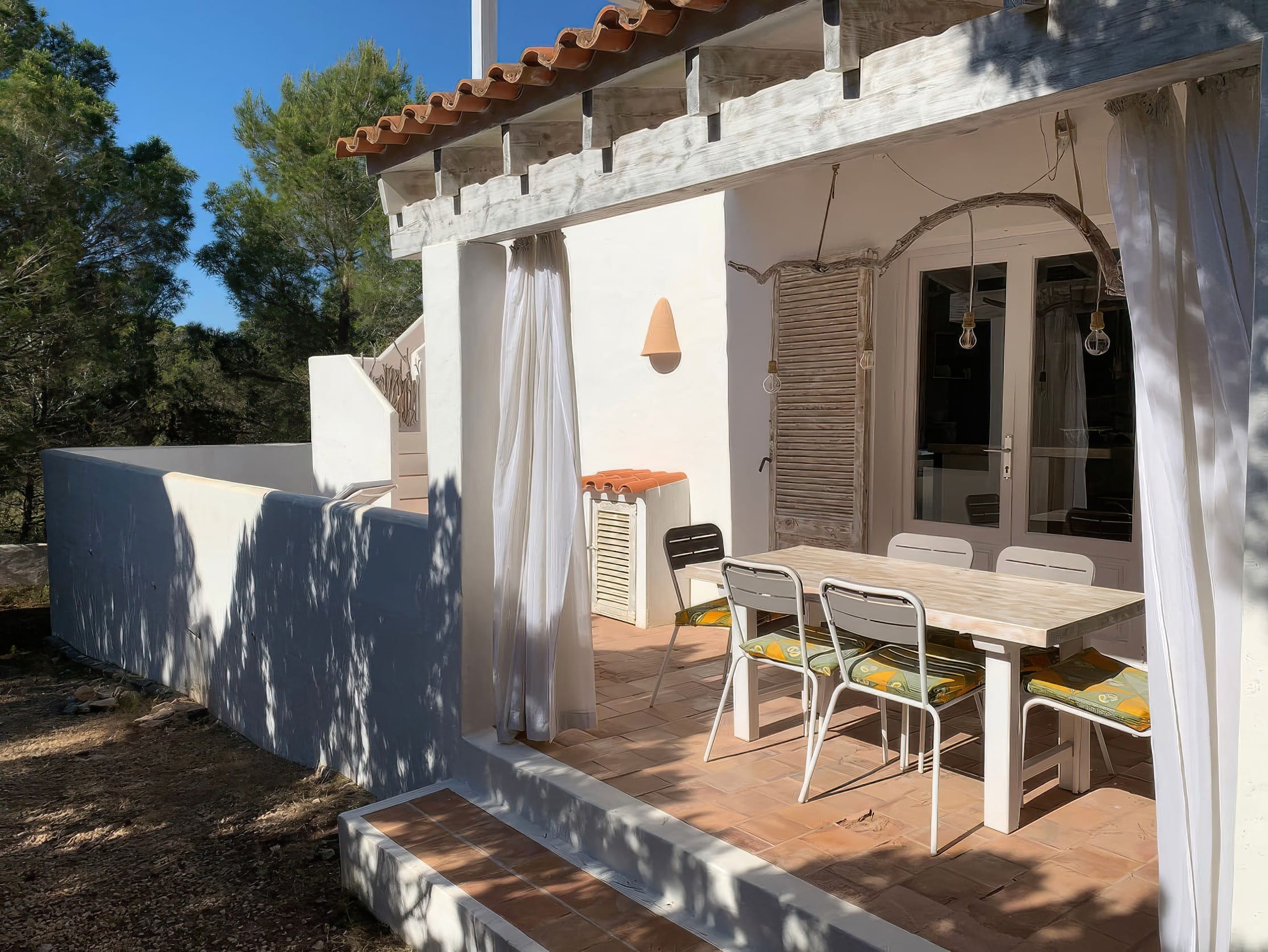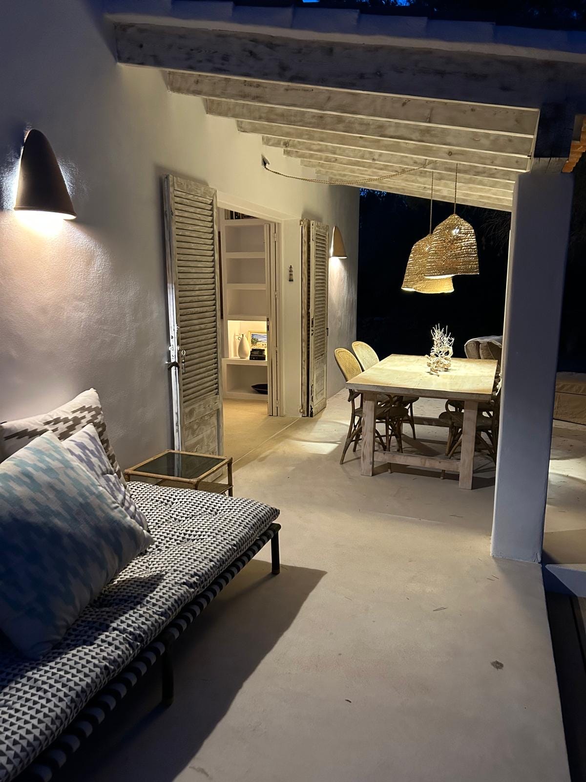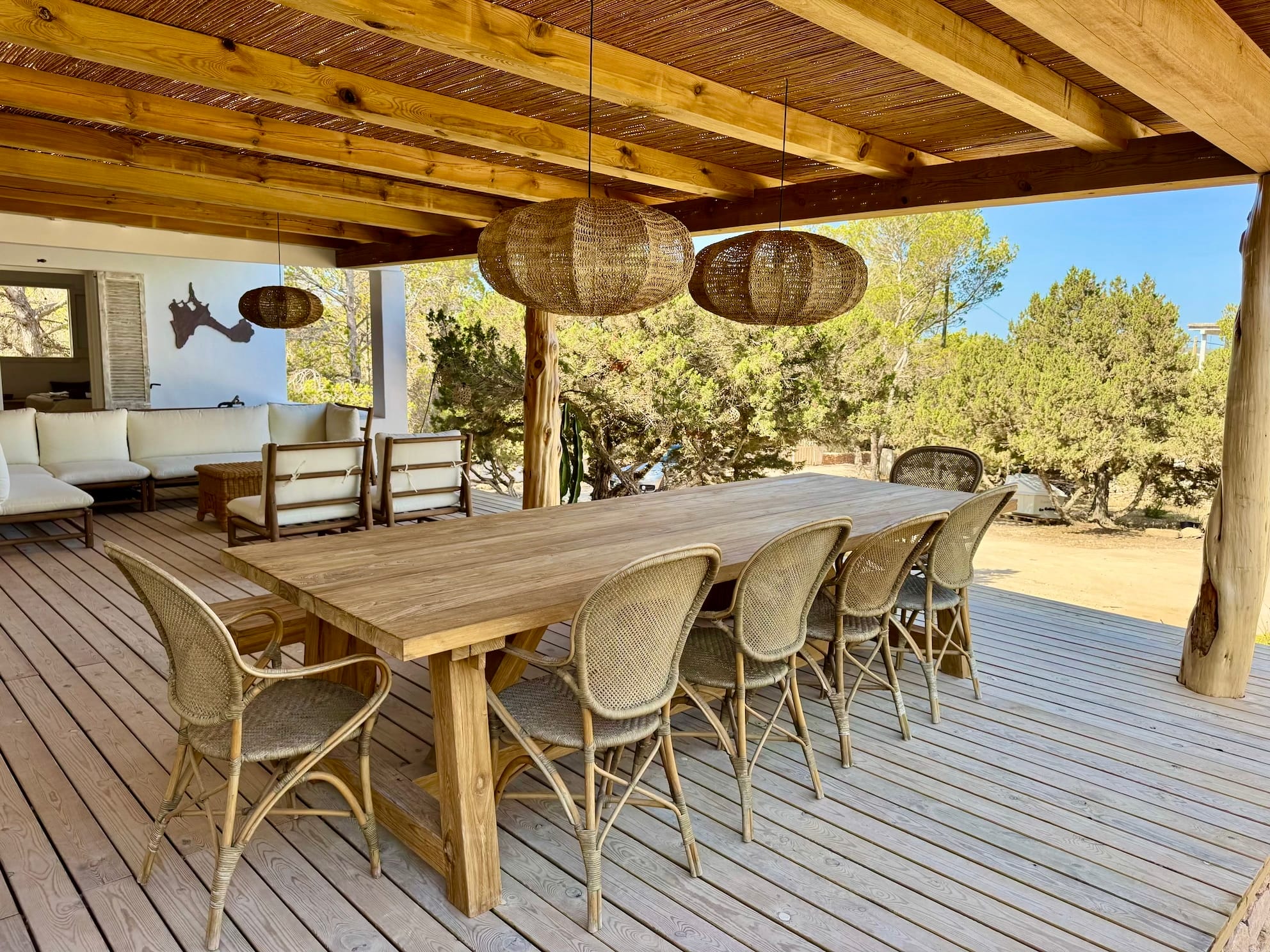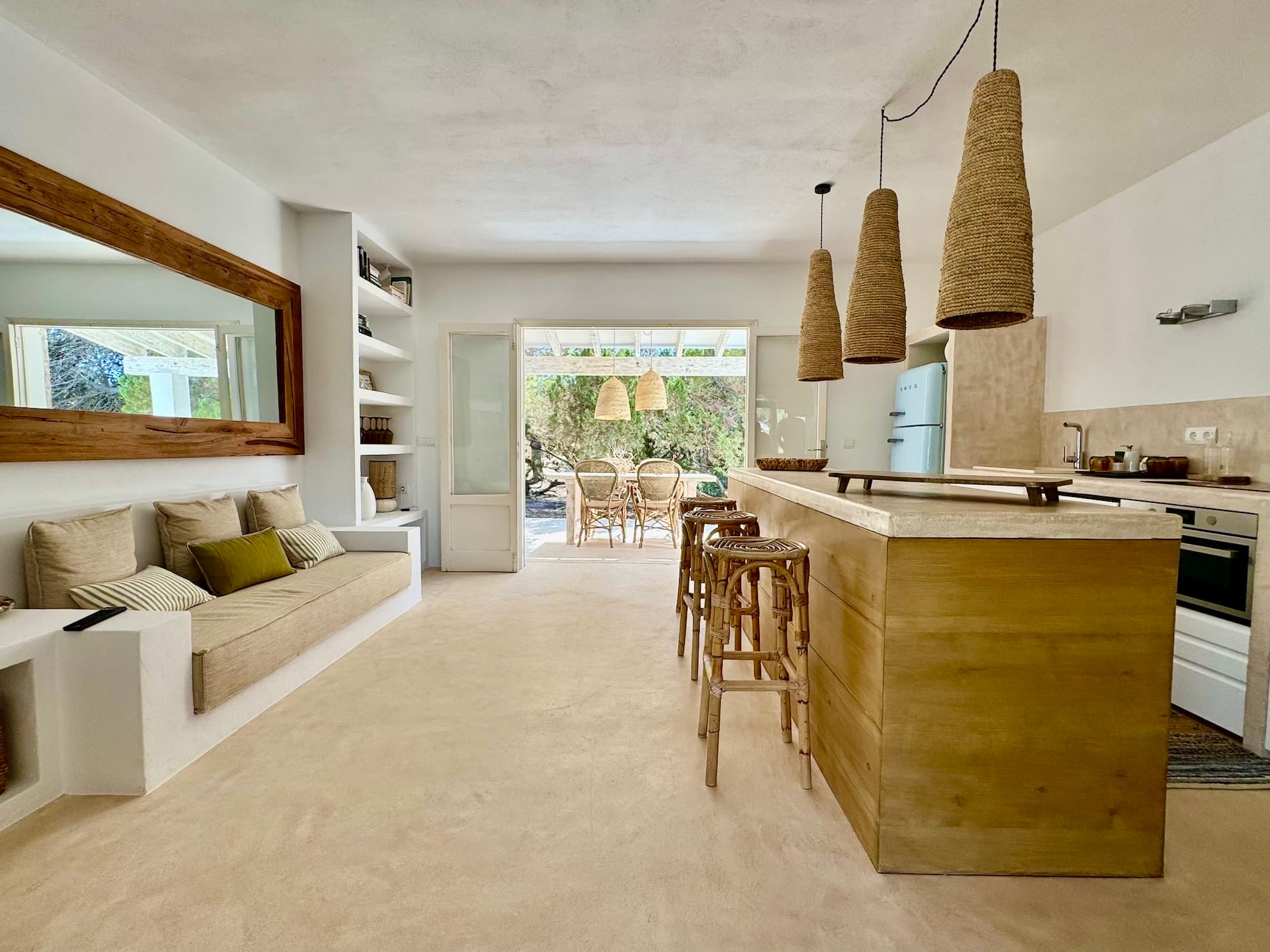 There is a beautiful garden and terraced spaces outside, perfect for spending long, relaxed days basking in the sunshine of Formentera.