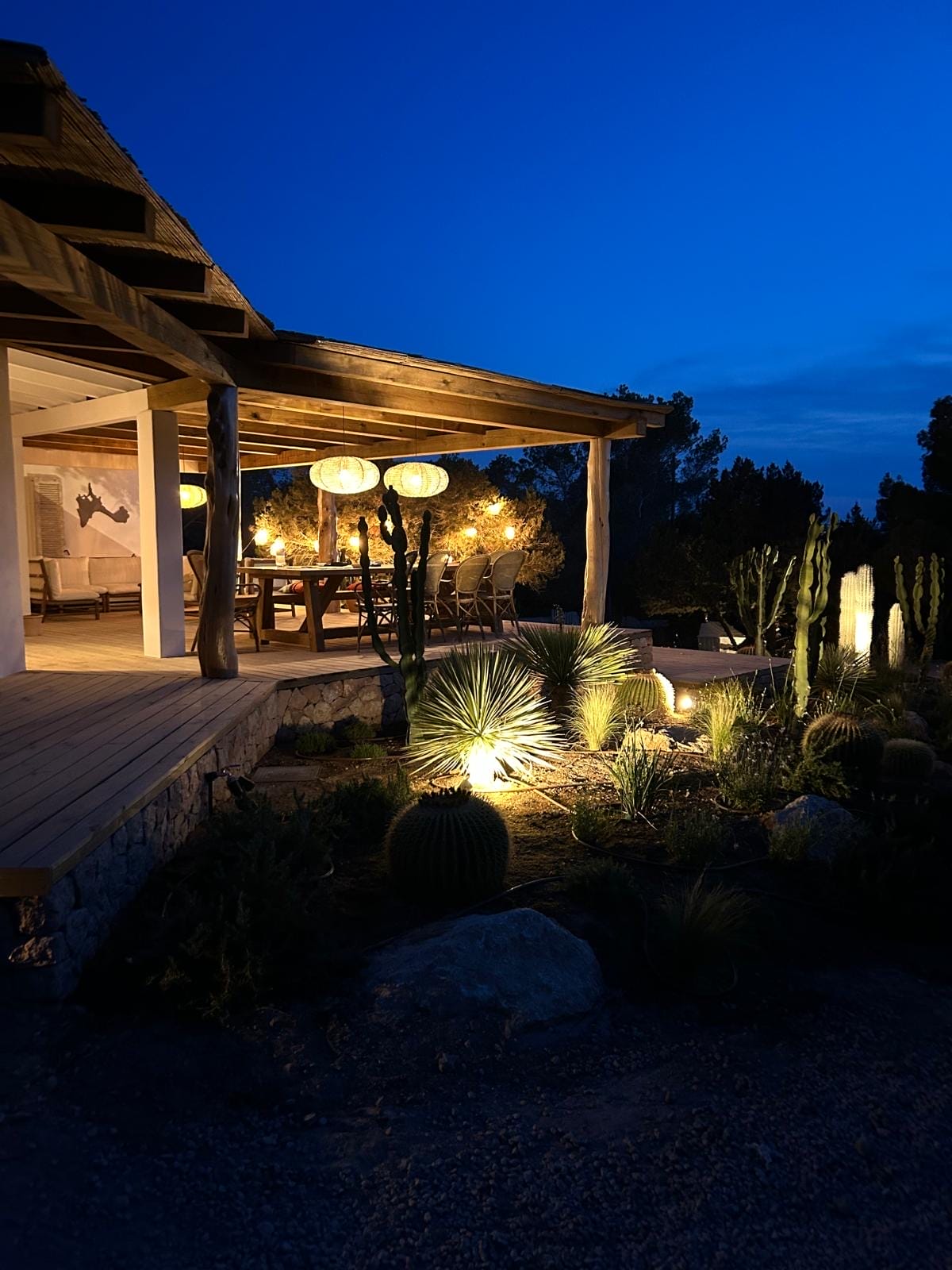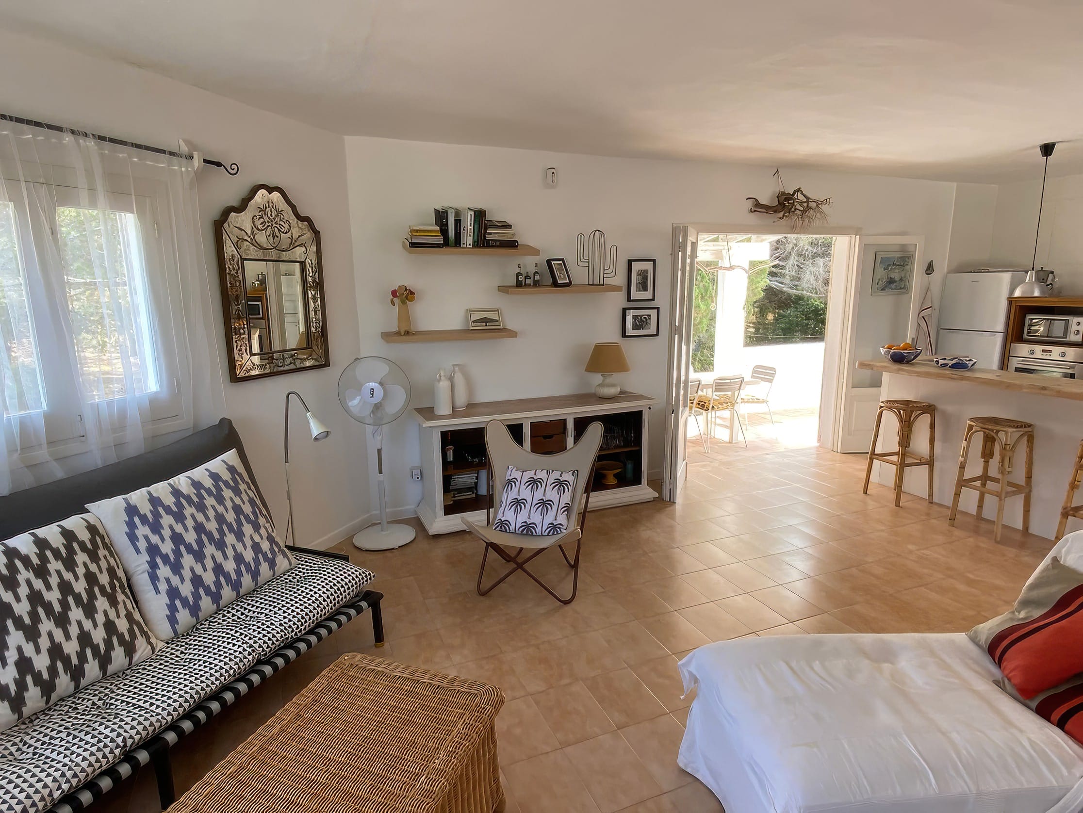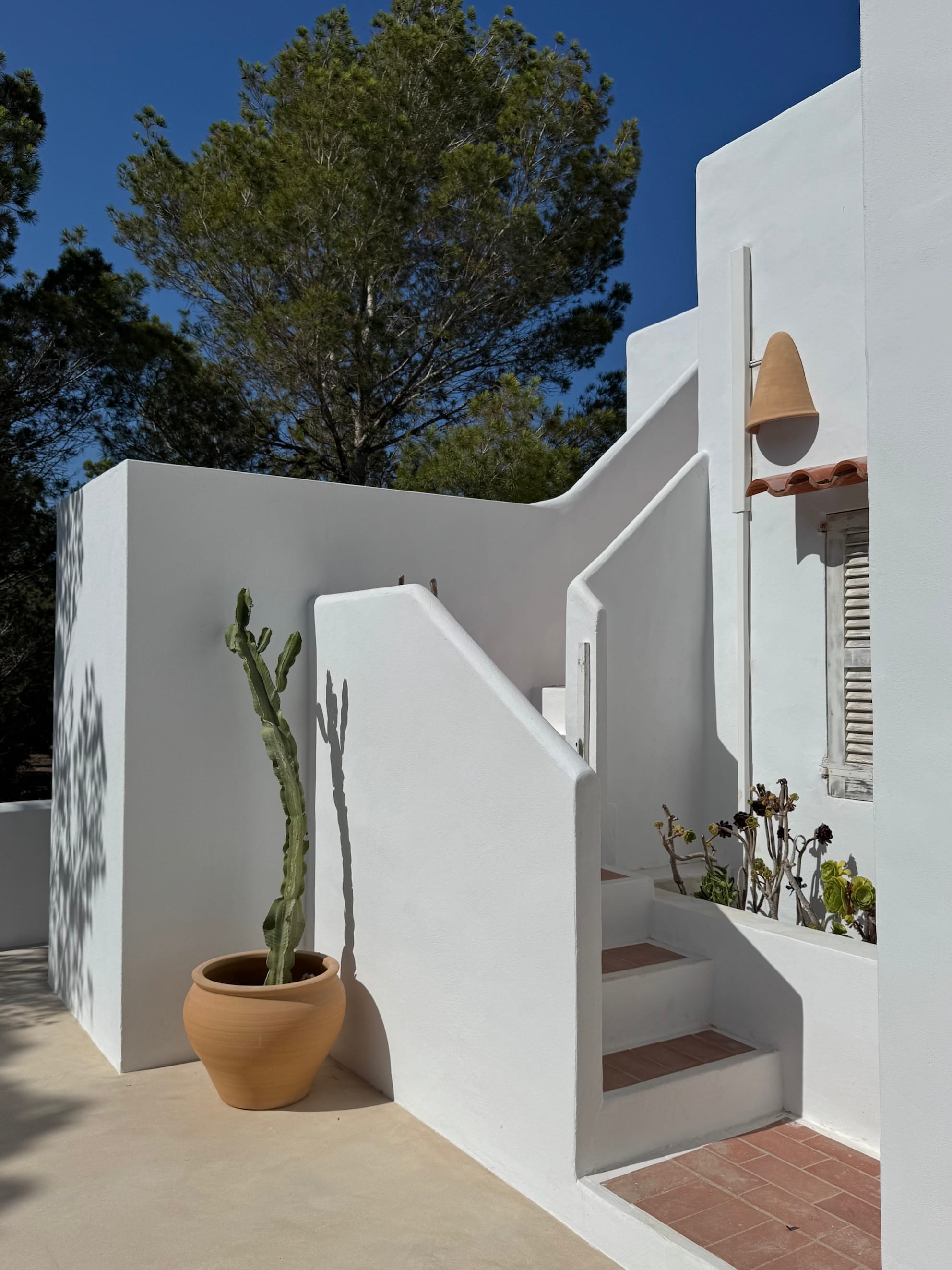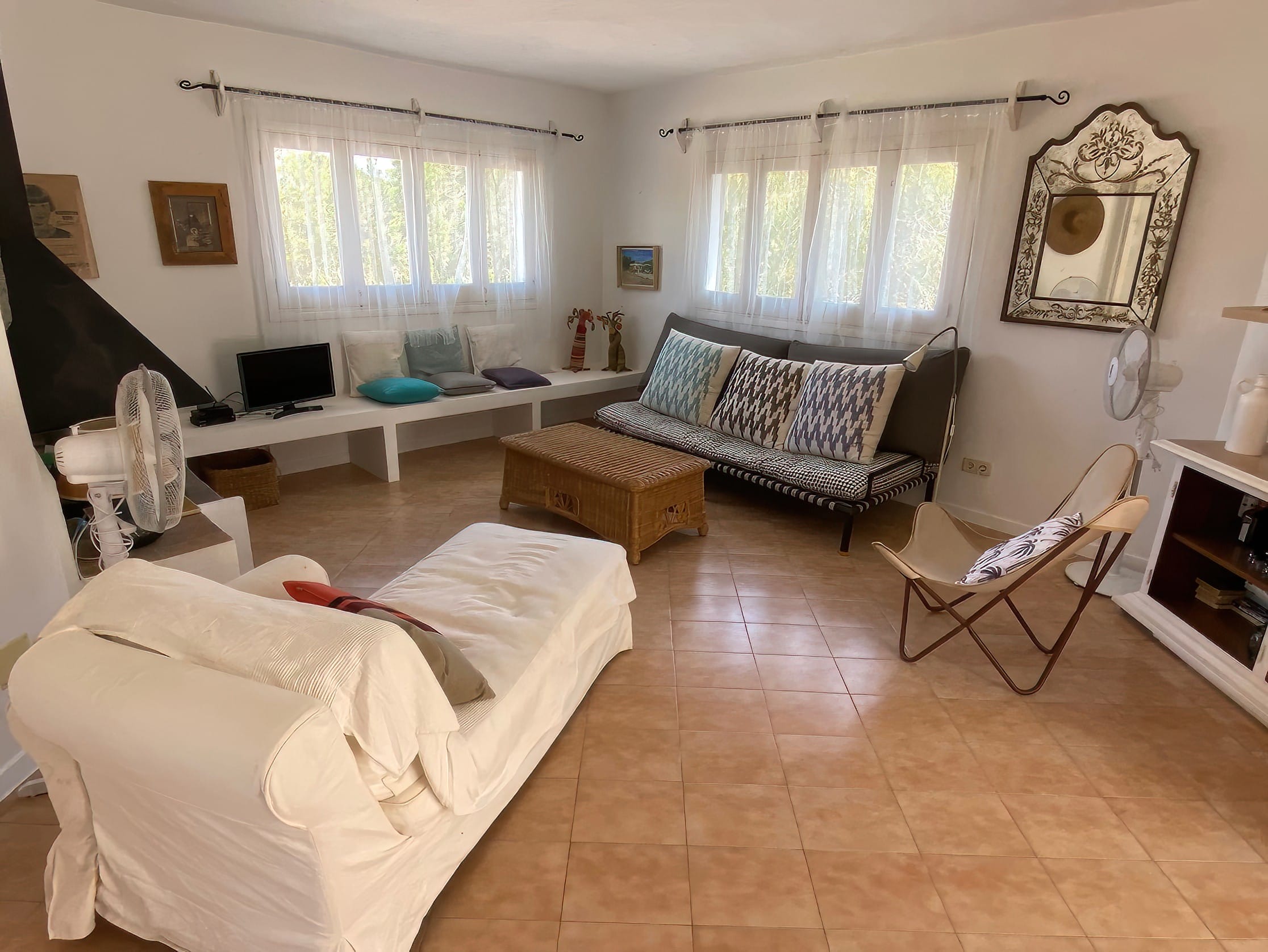 There is a beautiful garden and terraced spaces outside, perfect for spending long, relaxed days basking in the sunshine of Formentera.