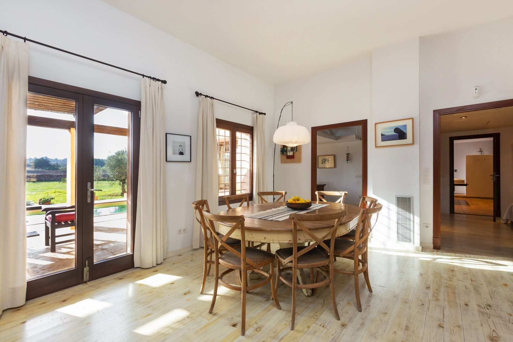 The heart of the home is a bright and open living area that flows directly onto the pool and garden, creating an inviting space for shared moments. The fully equipped kitchen, designed to serve up to 14 guests, is perfect for long, relaxed meals together.