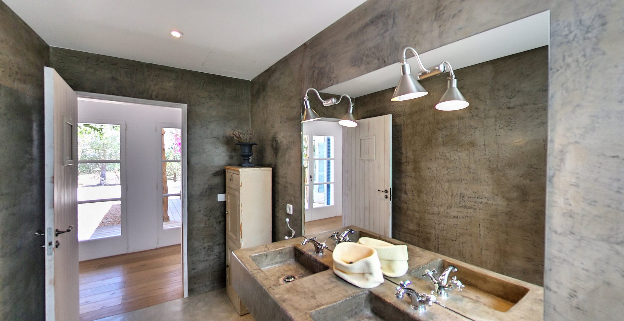 It has 2 suites each with private bathroom and one double bedroom that shares a full bathroom with a bedroom with 4 beds ( bunk beds ), specially perfect for kids,