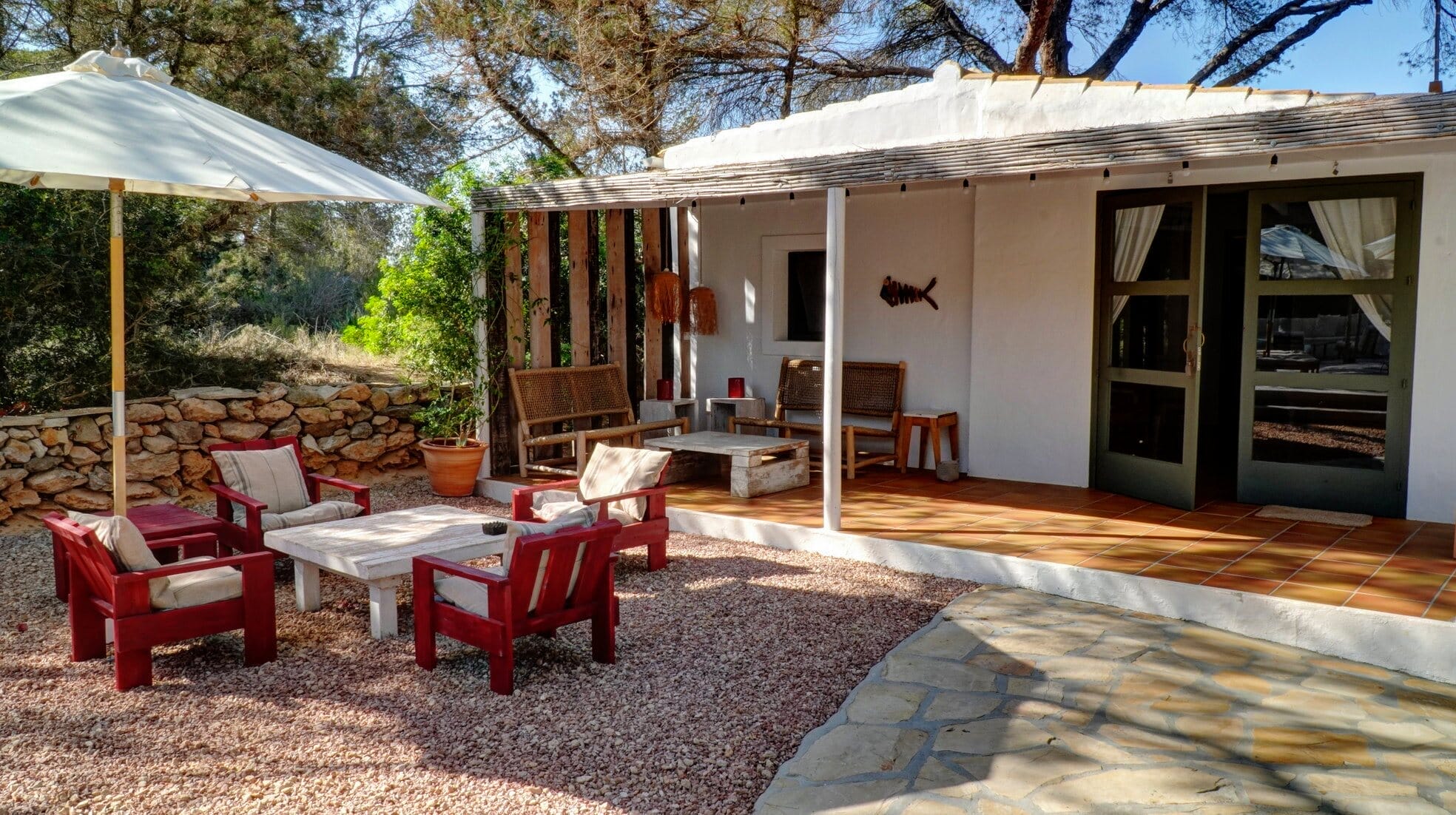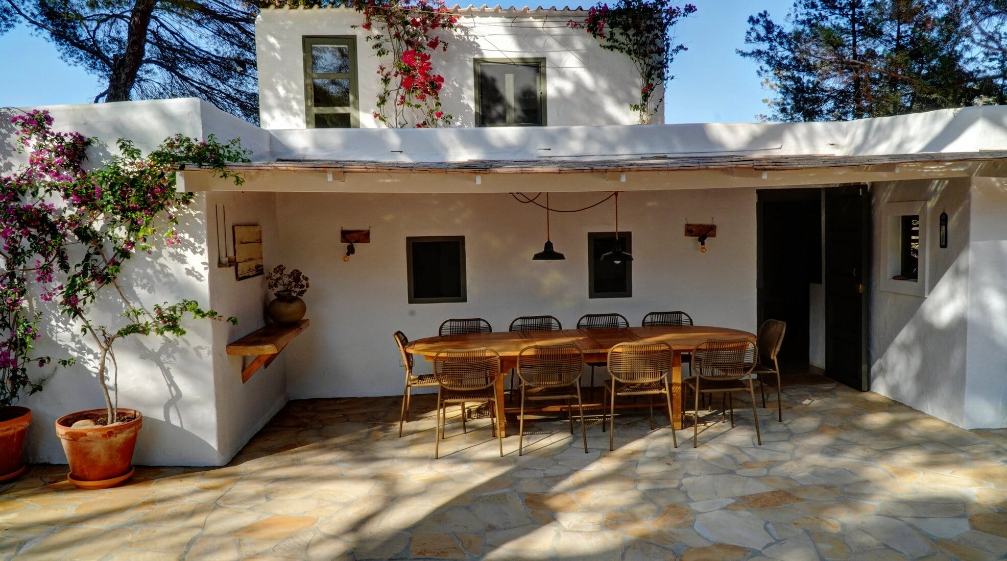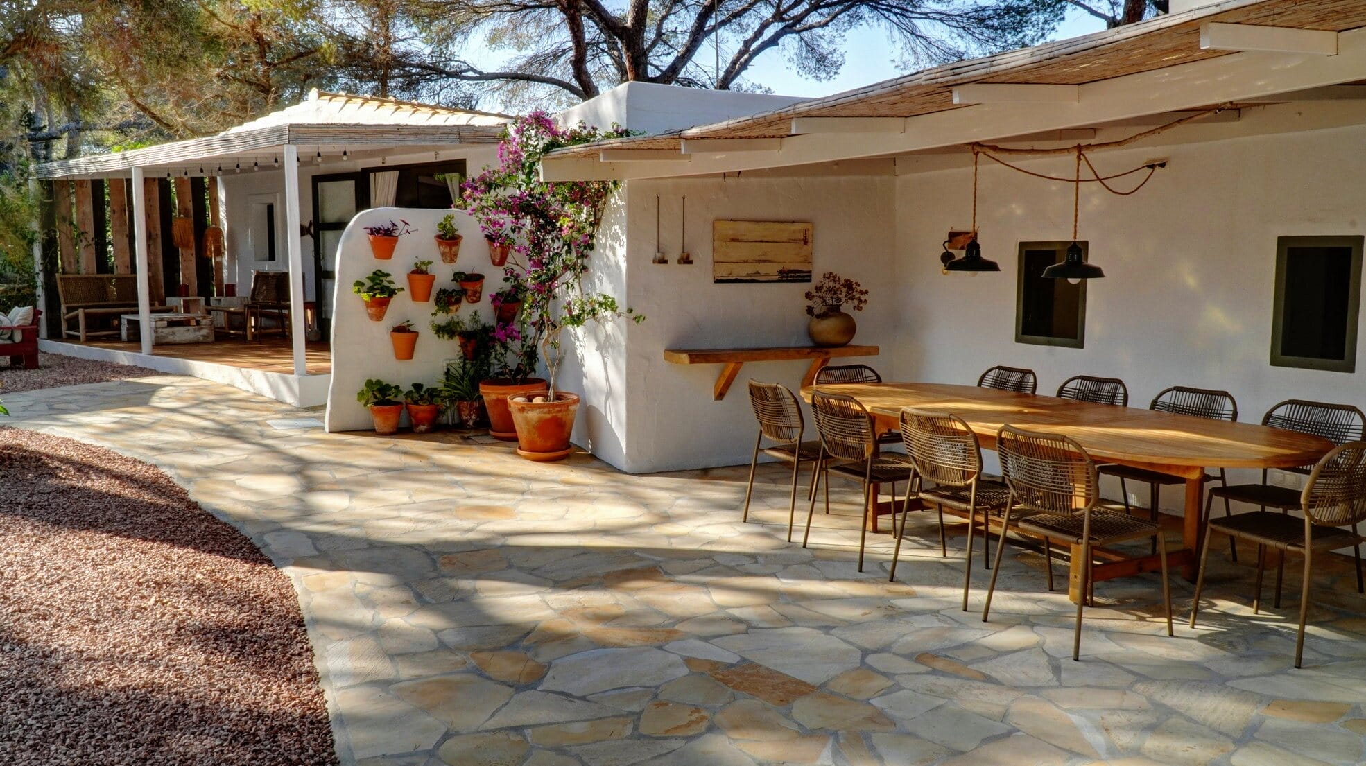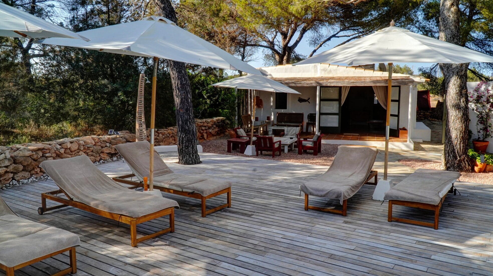 This expansive villa is ideal for families and groups of friends, featuring three beautifully designed annexes, each providing its own space and amenities. With a total of 6 bedrooms and 4 bathrooms, this Formentera villa rental accommodates up to 12 guests in style.