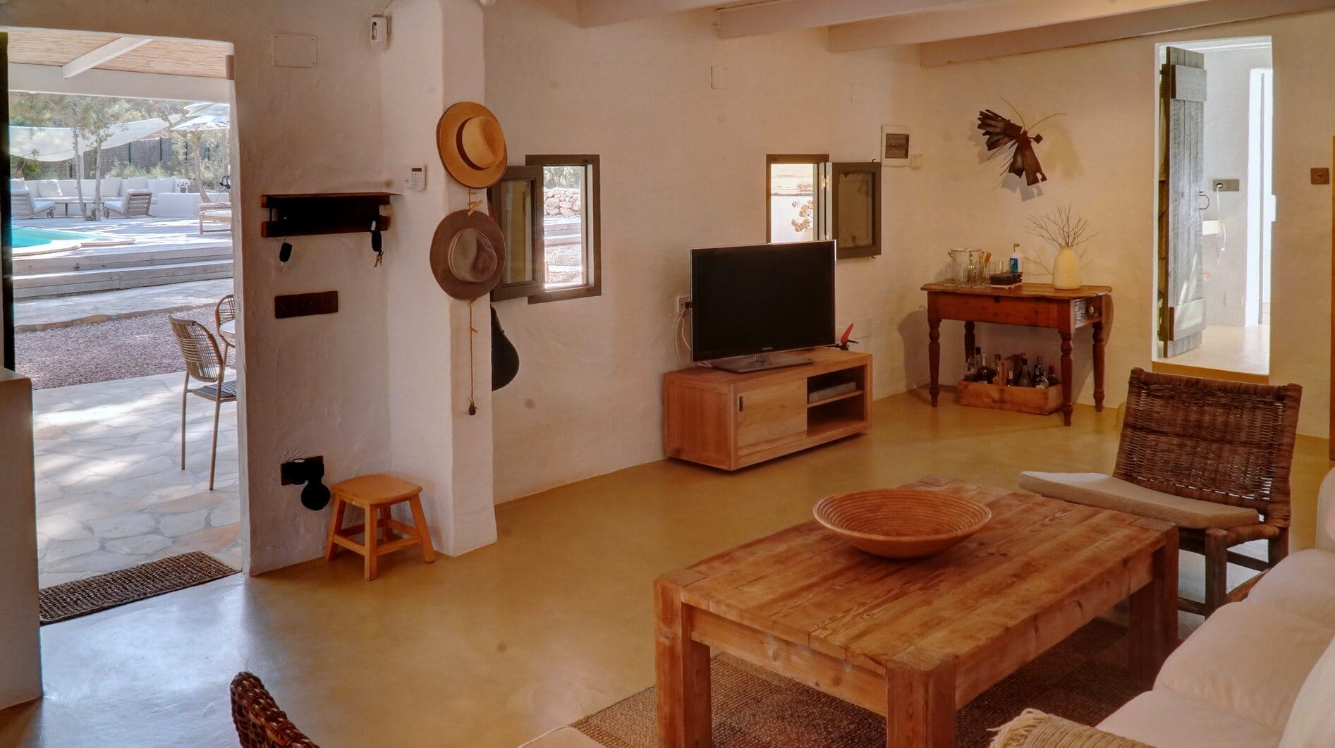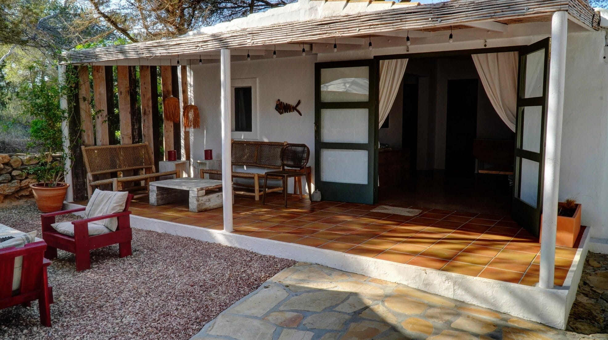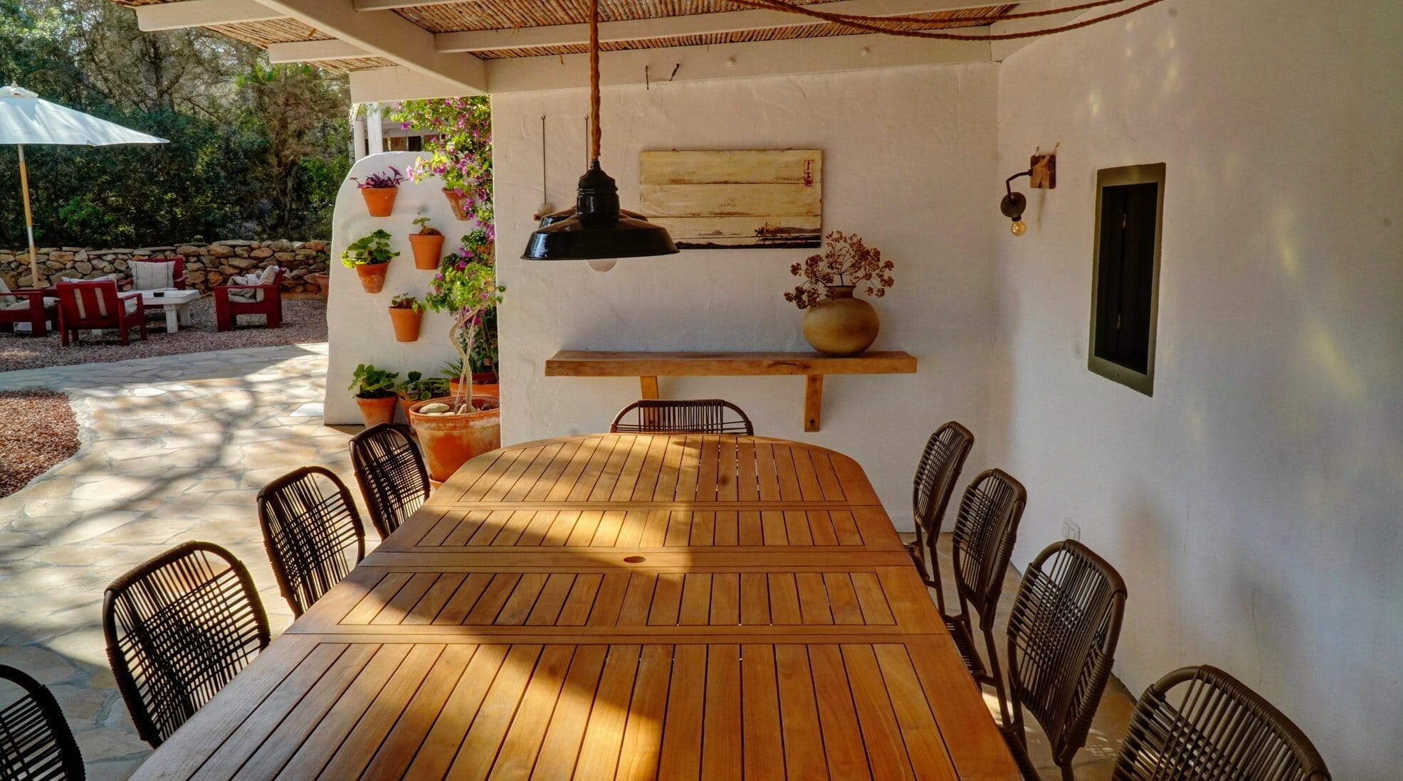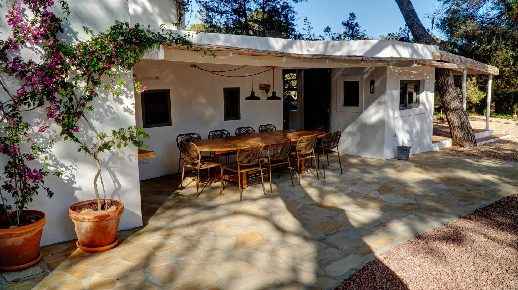 This expansive villa is ideal for families and groups of friends, featuring three beautifully designed annexes, each providing its own space and amenities. With a total of 6 bedrooms and 4 bathrooms, this Formentera villa rental accommodates up to 12 guests in style.