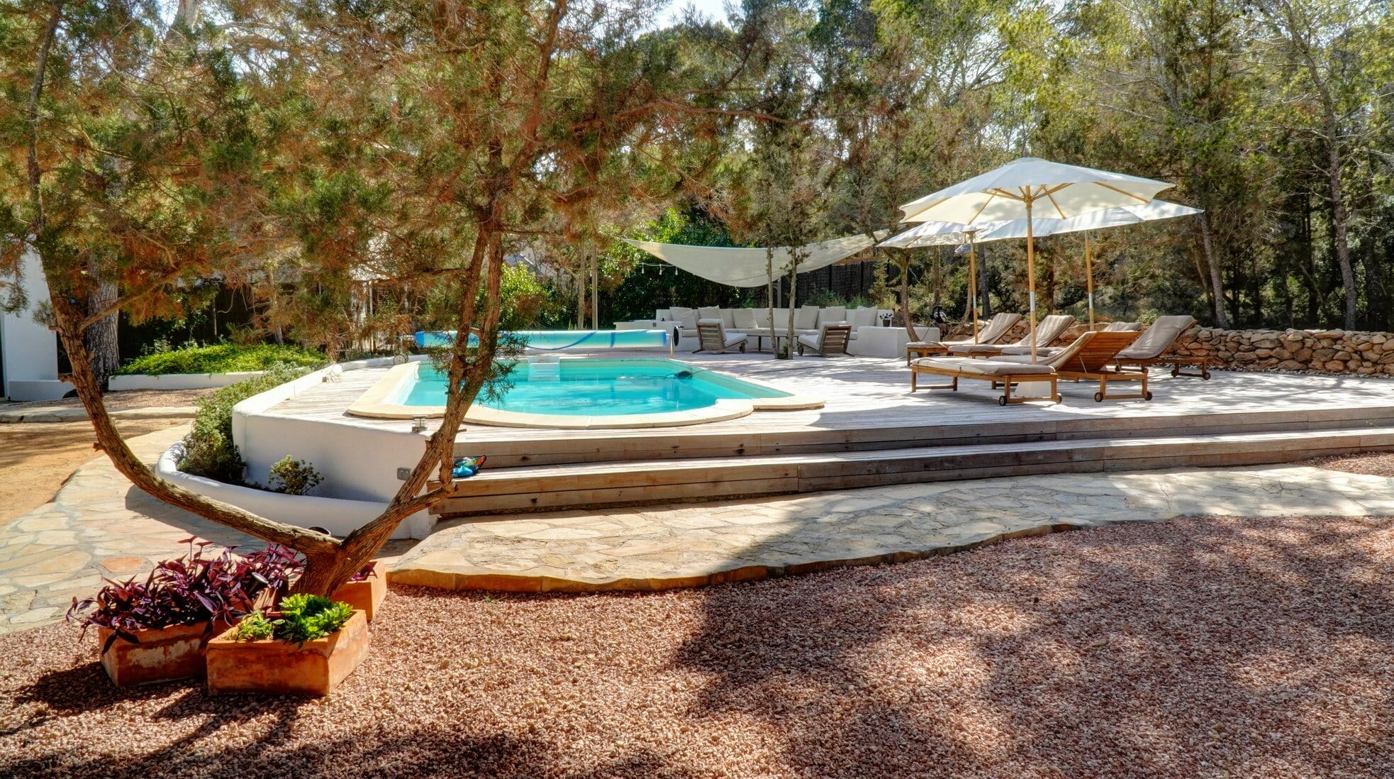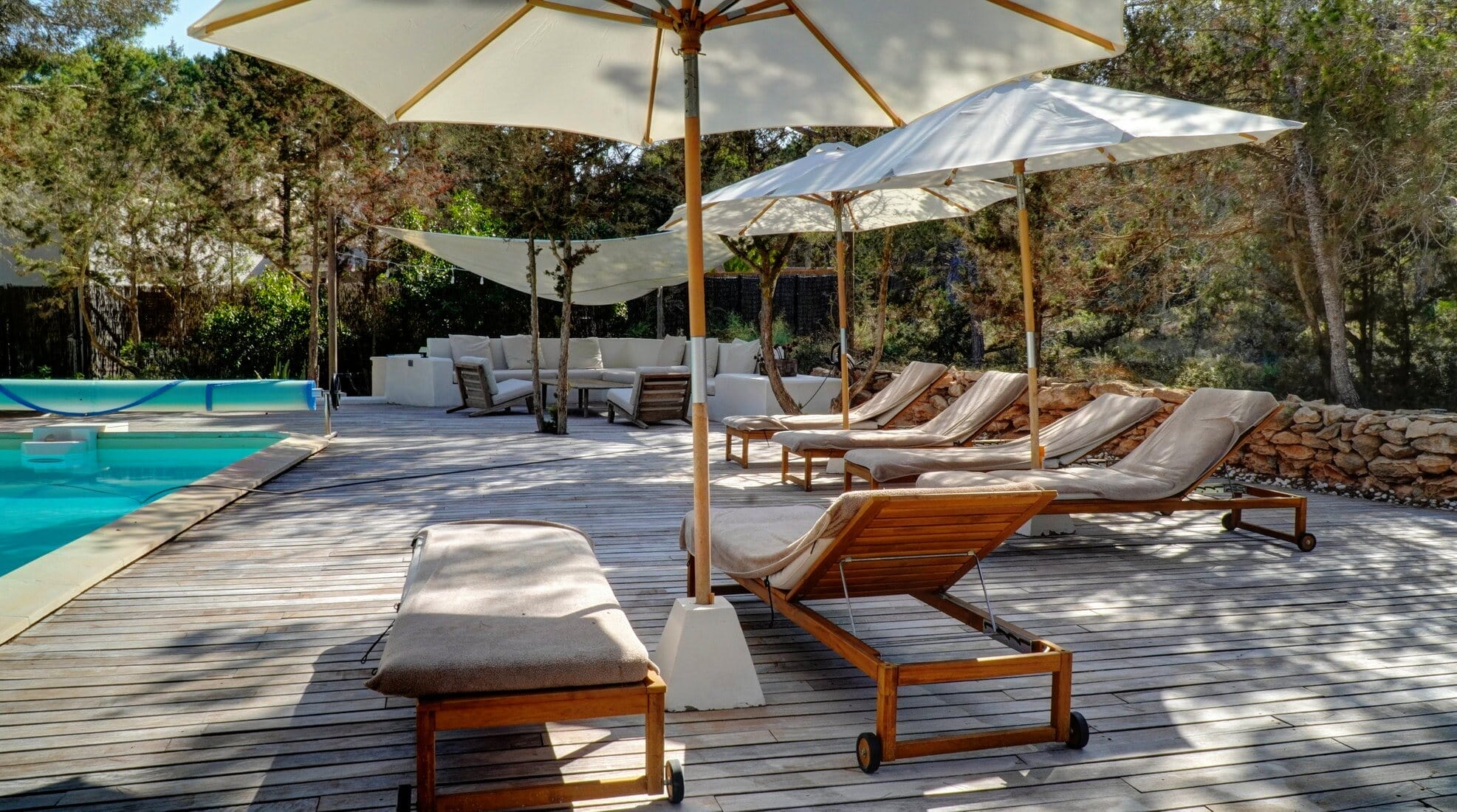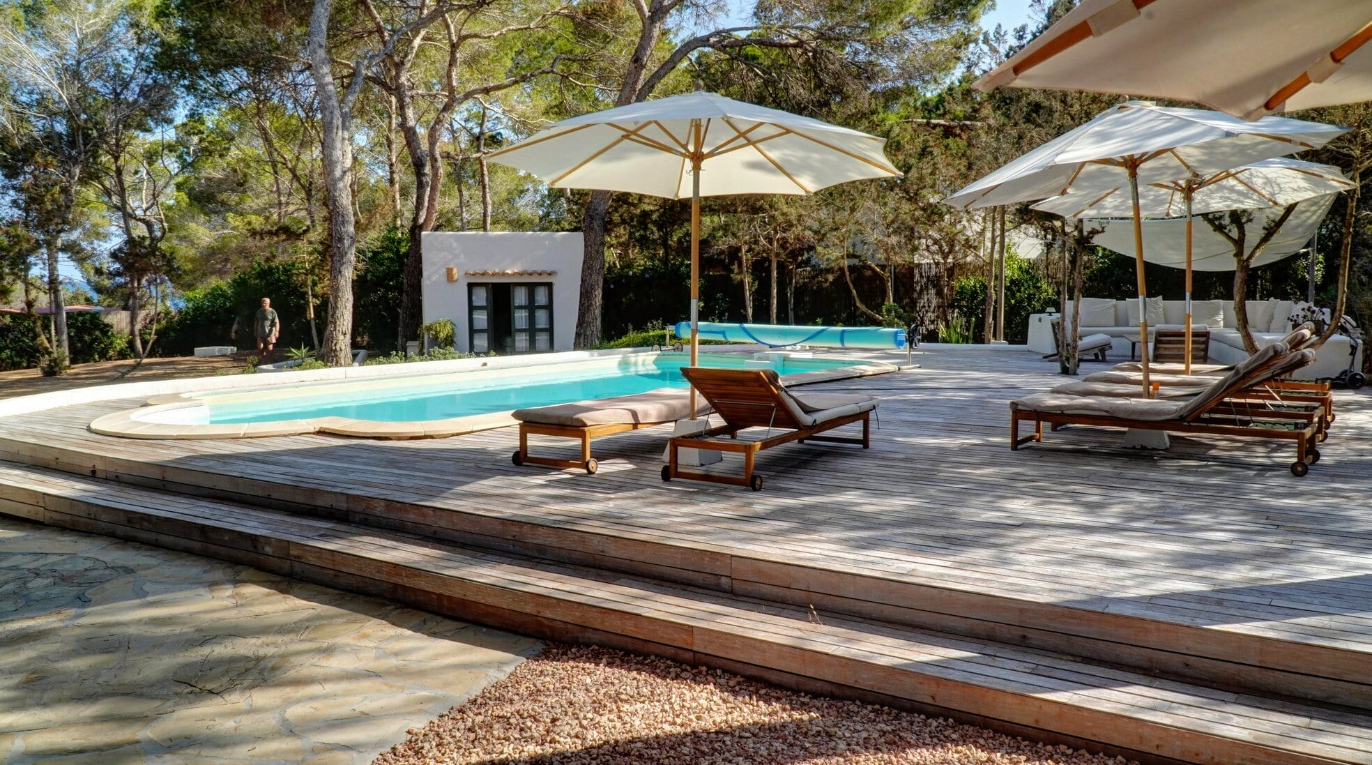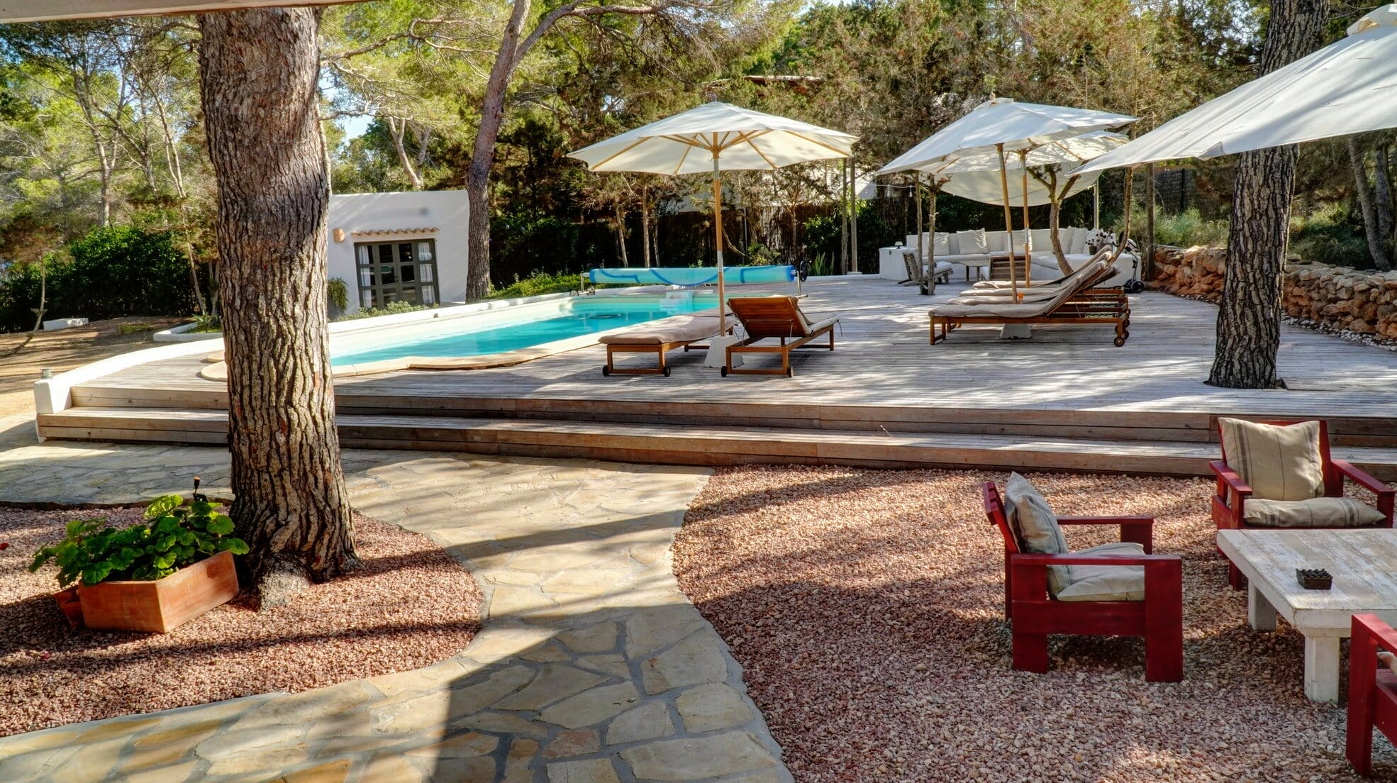 This expansive villa is ideal for families and groups of friends, featuring three beautifully designed annexes, each providing its own space and amenities. With a total of 6 bedrooms and 4 bathrooms, this Formentera villa rental accommodates up to 12 guests in style.