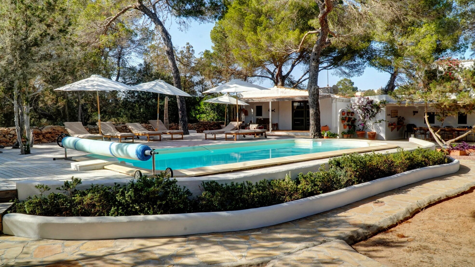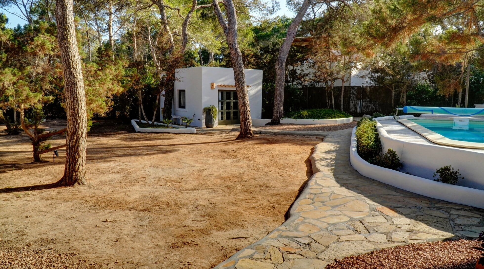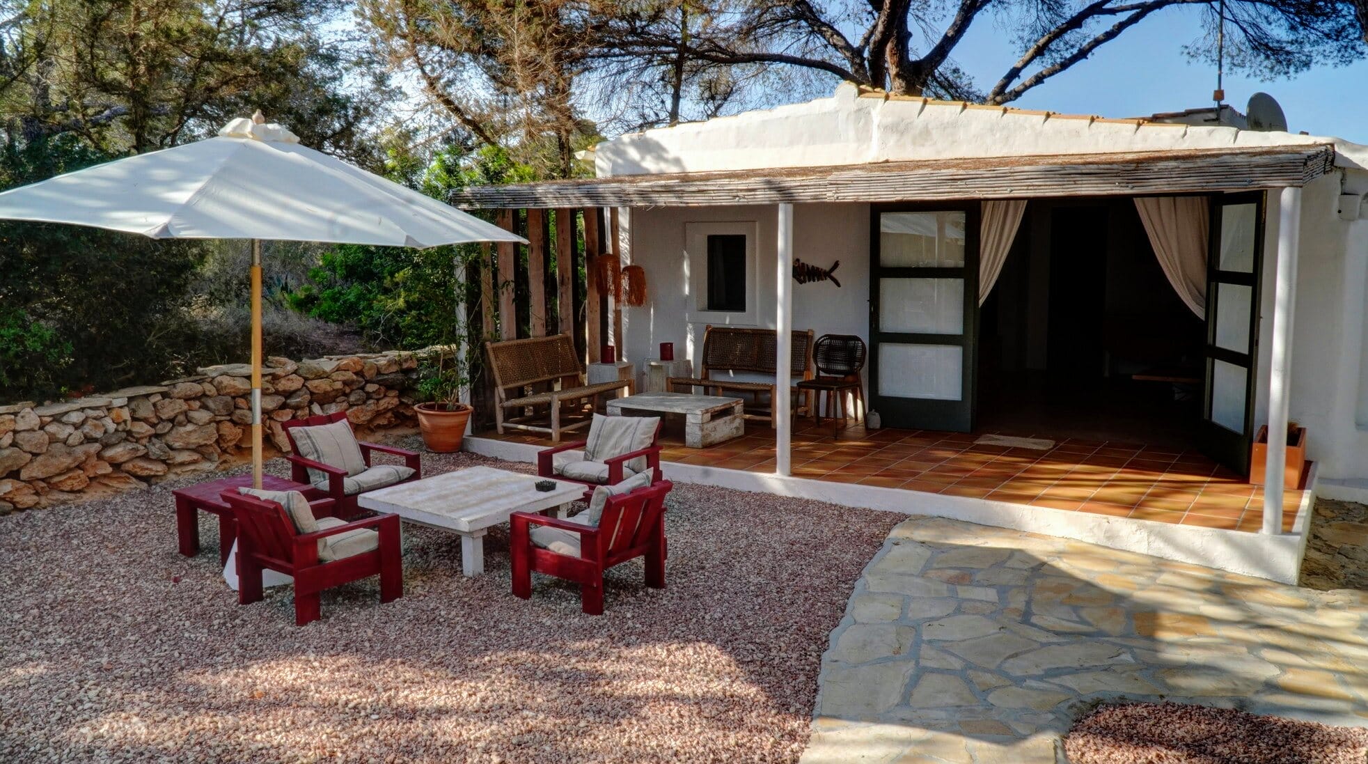 Looking for the perfect villa rental in Formentera? This stunning, fully detached villa offers the ultimate in privacy and comfort, located just 70 meters from the sparkling Mediterranean. A private road leads directly to the property, providing easy access to the beach and a truly tranquil setting.