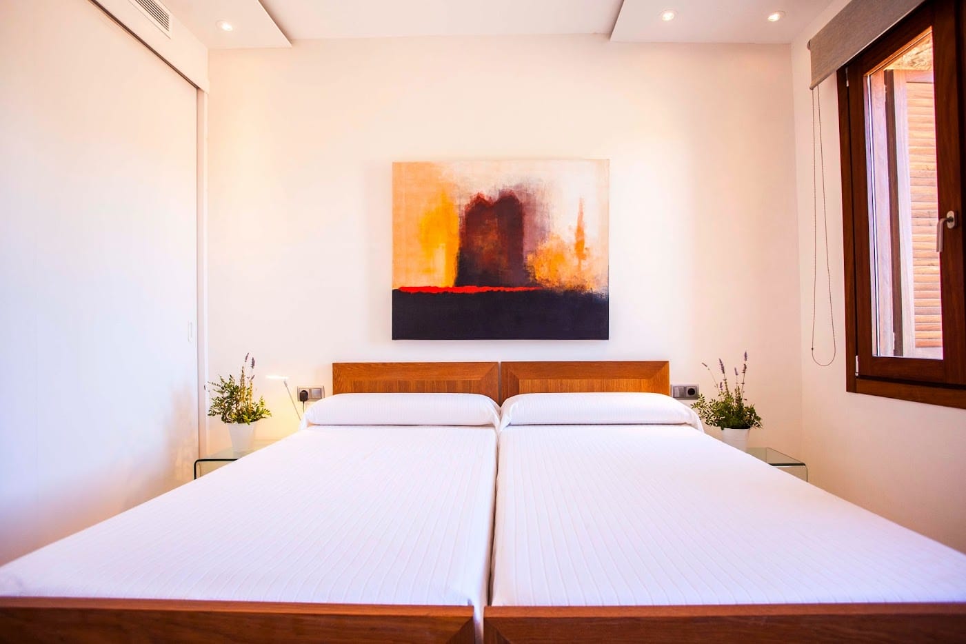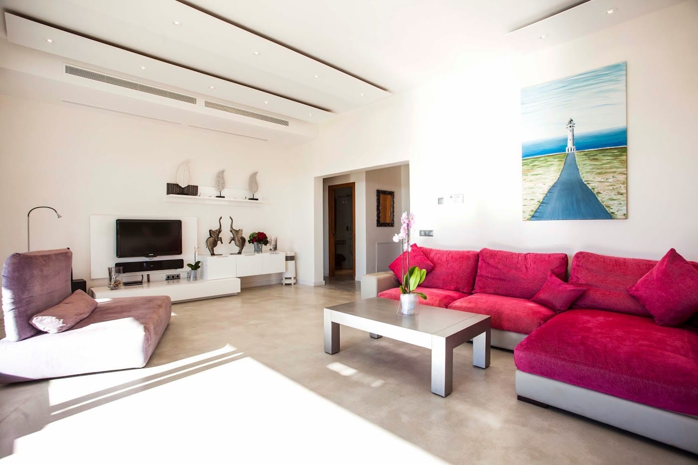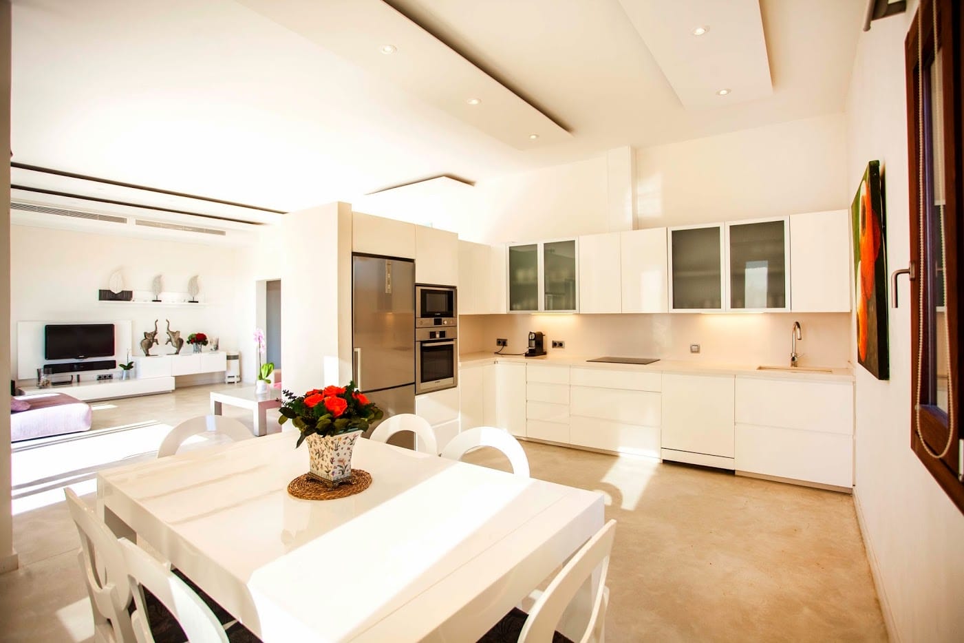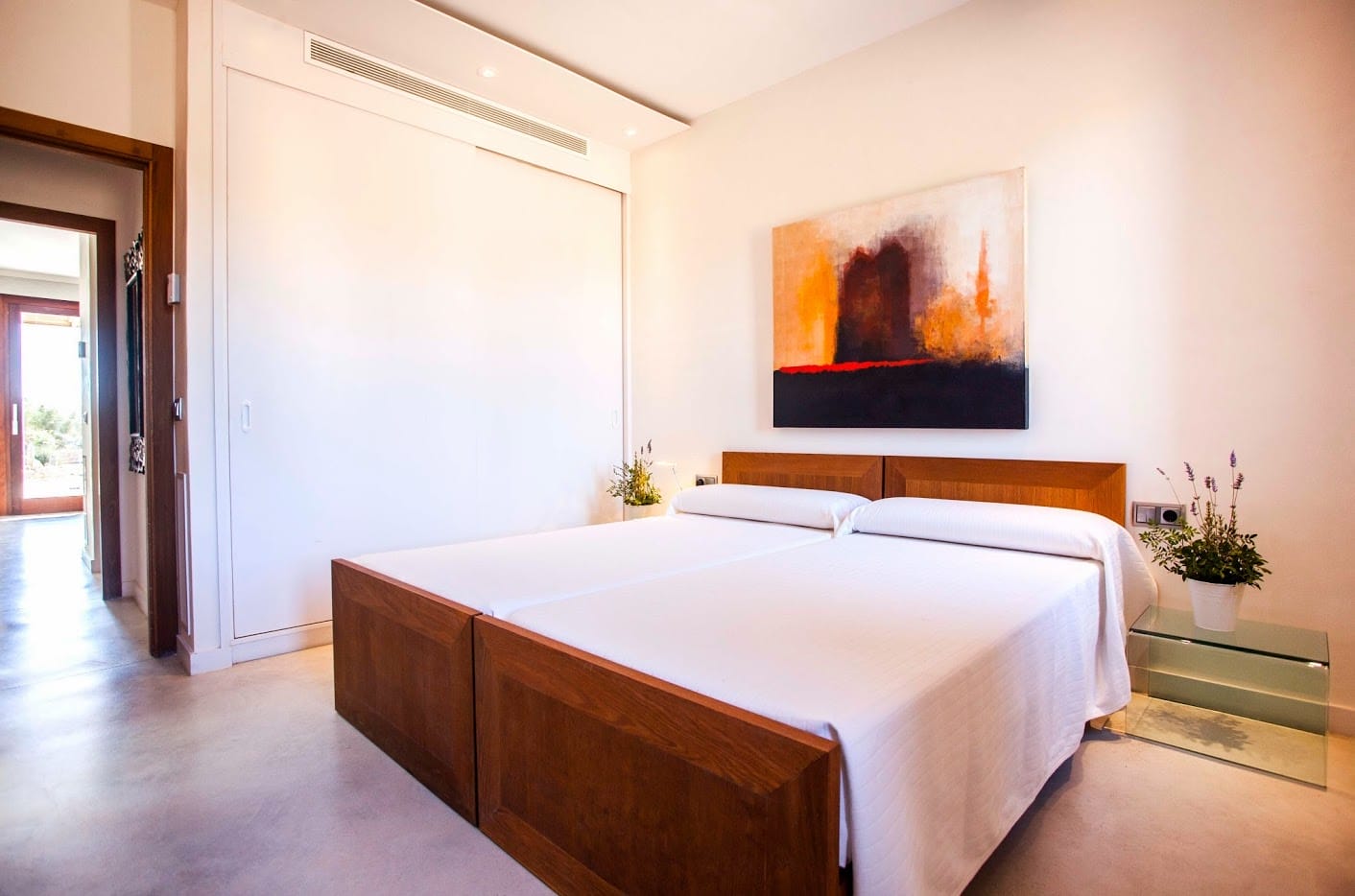 There are 2 double bedrooms and 2 twin bed bedrooms, 4 bathrooms, a comfortable living room with high quality furniture and a nice separate fitted kitchen with adjacent dining room.