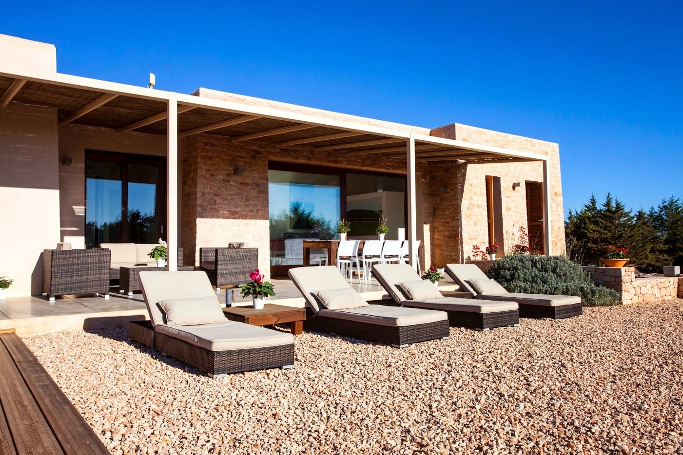 Beautiful luxury villa in Formentera located only 3 km from the beach of Cala Saona in the area of Cap de Barbaria. The house is set within well kept grounds with pretty gardens.