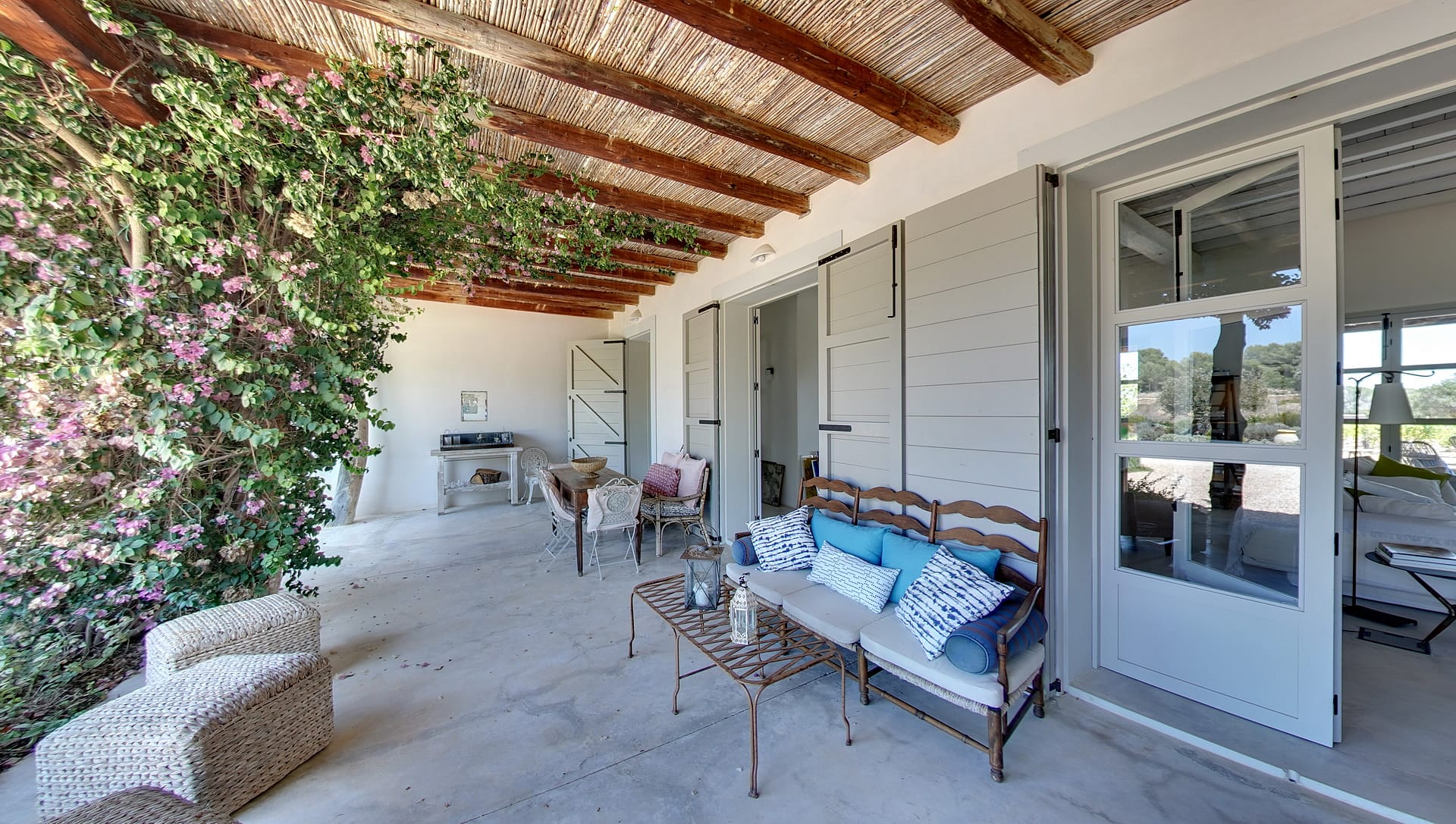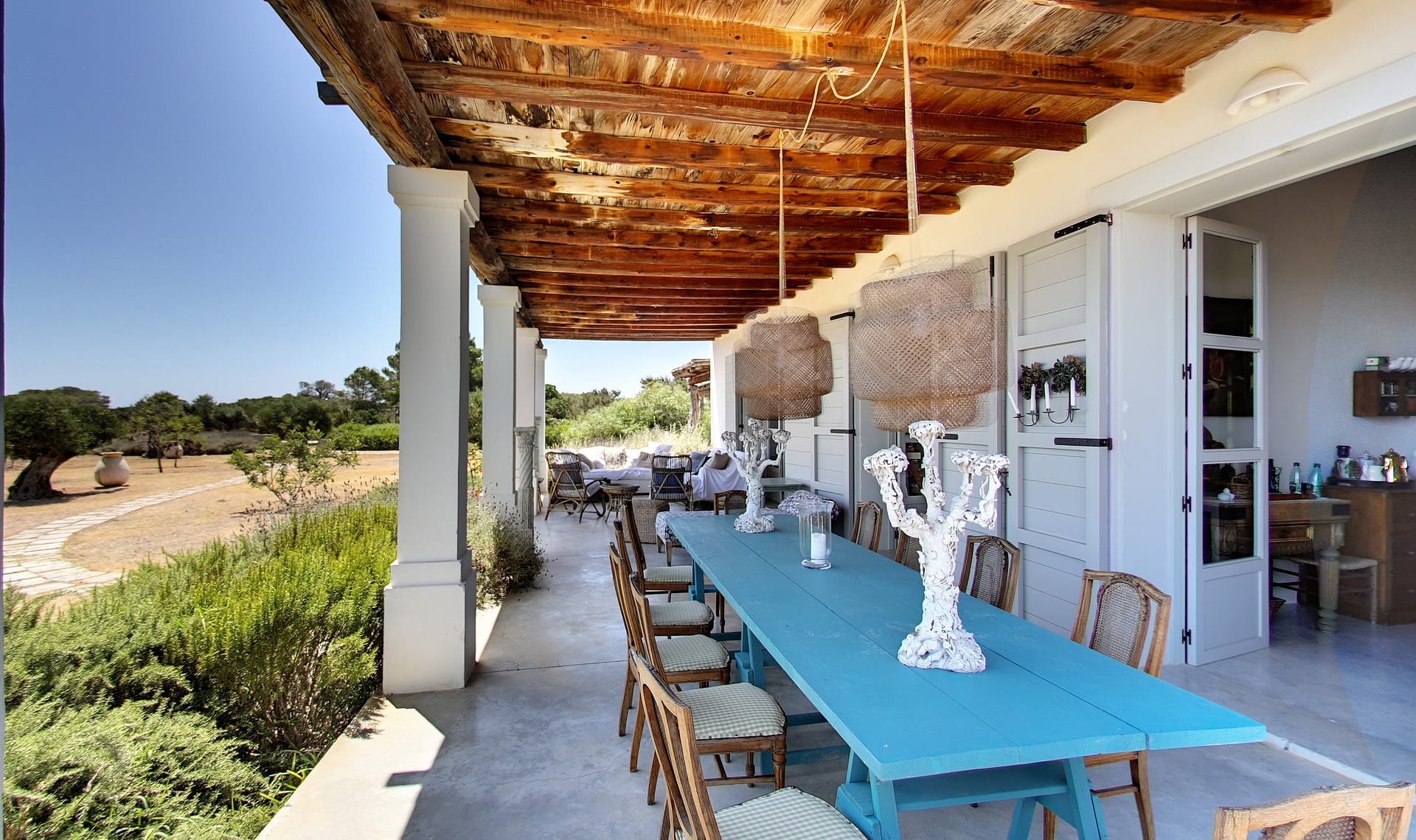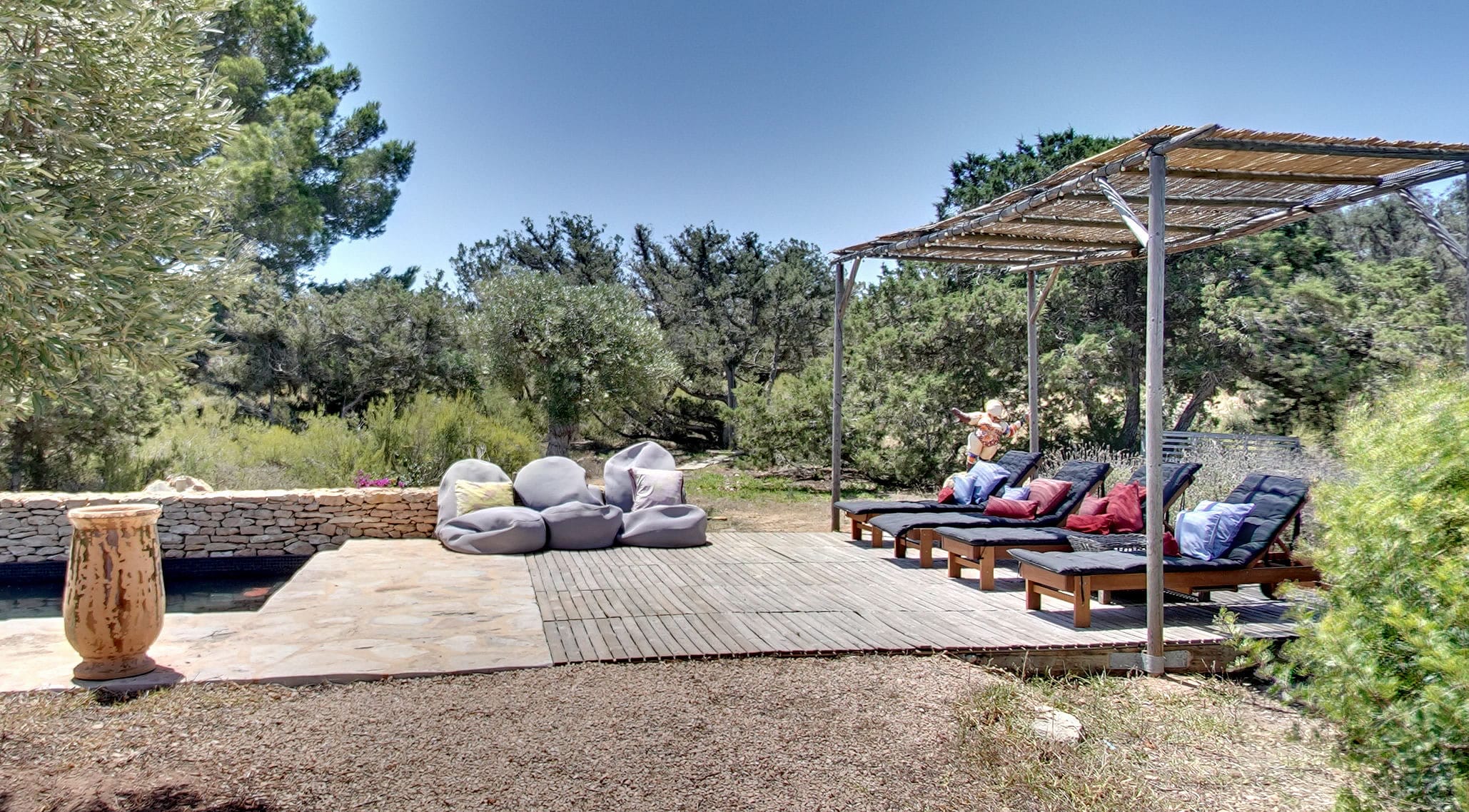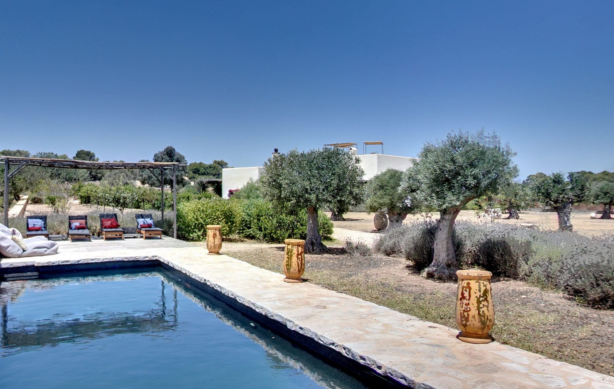 The outdoor areas offer plenty of space to relax on comfortable sun loungers, enjoy a quiet reading corner, or gather for an alfresco dinner under the stars. The villa is just a 15-minute drive from the iconic Cala Saona, where guests can experience crystal-clear waters and breathtaking sunsets. Additionally, the charming village of San Francesc, known for its boutique shops, fine dining, and warm atmosphere, is only a 10-minute drive away.
