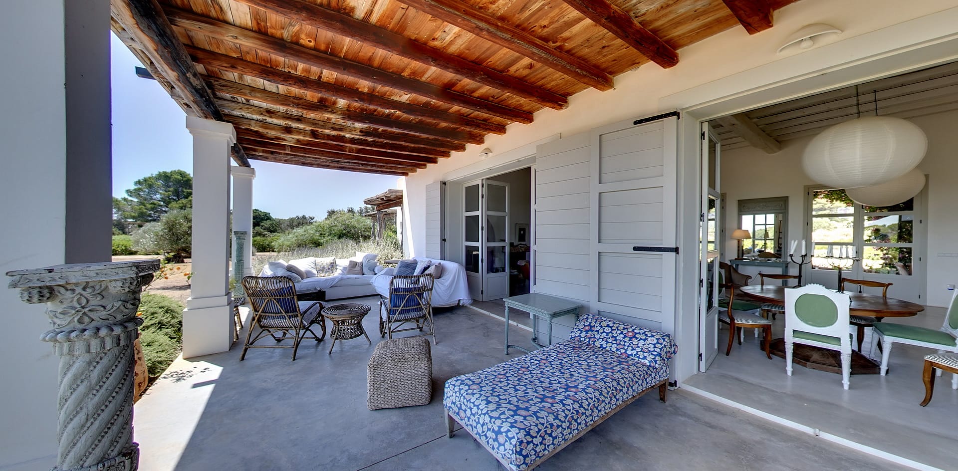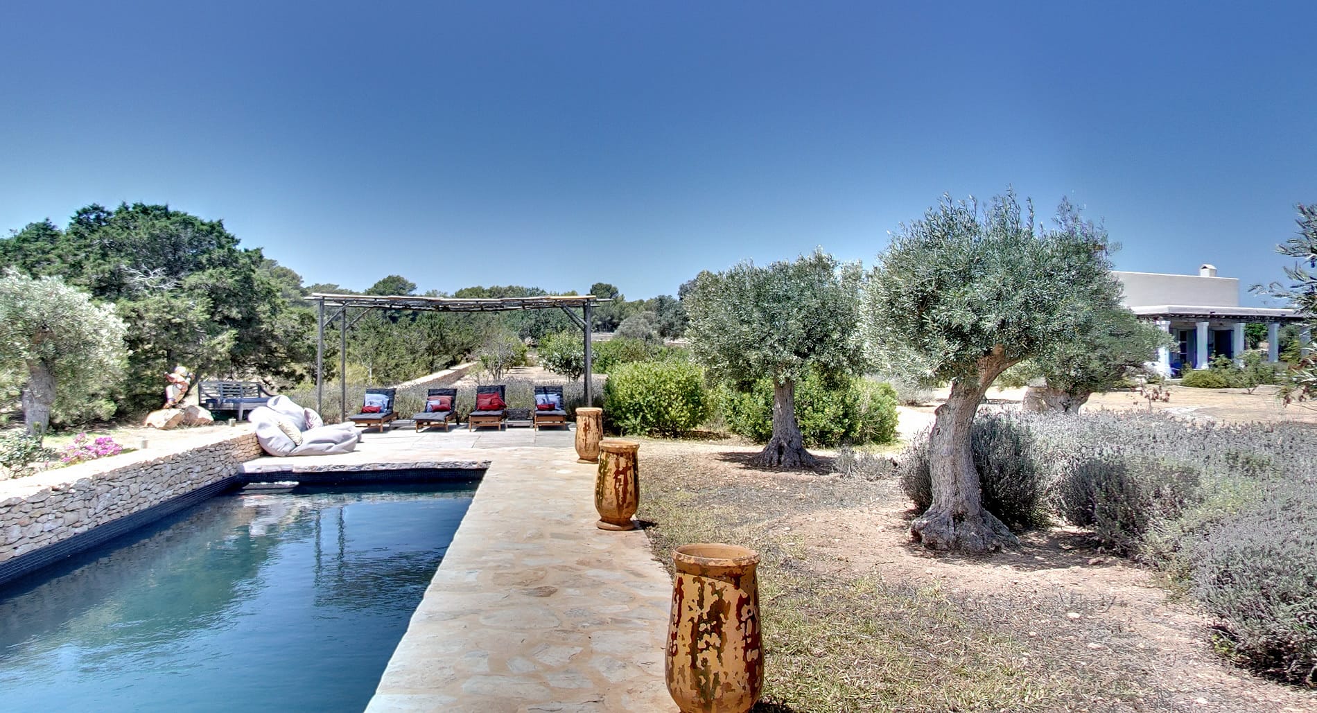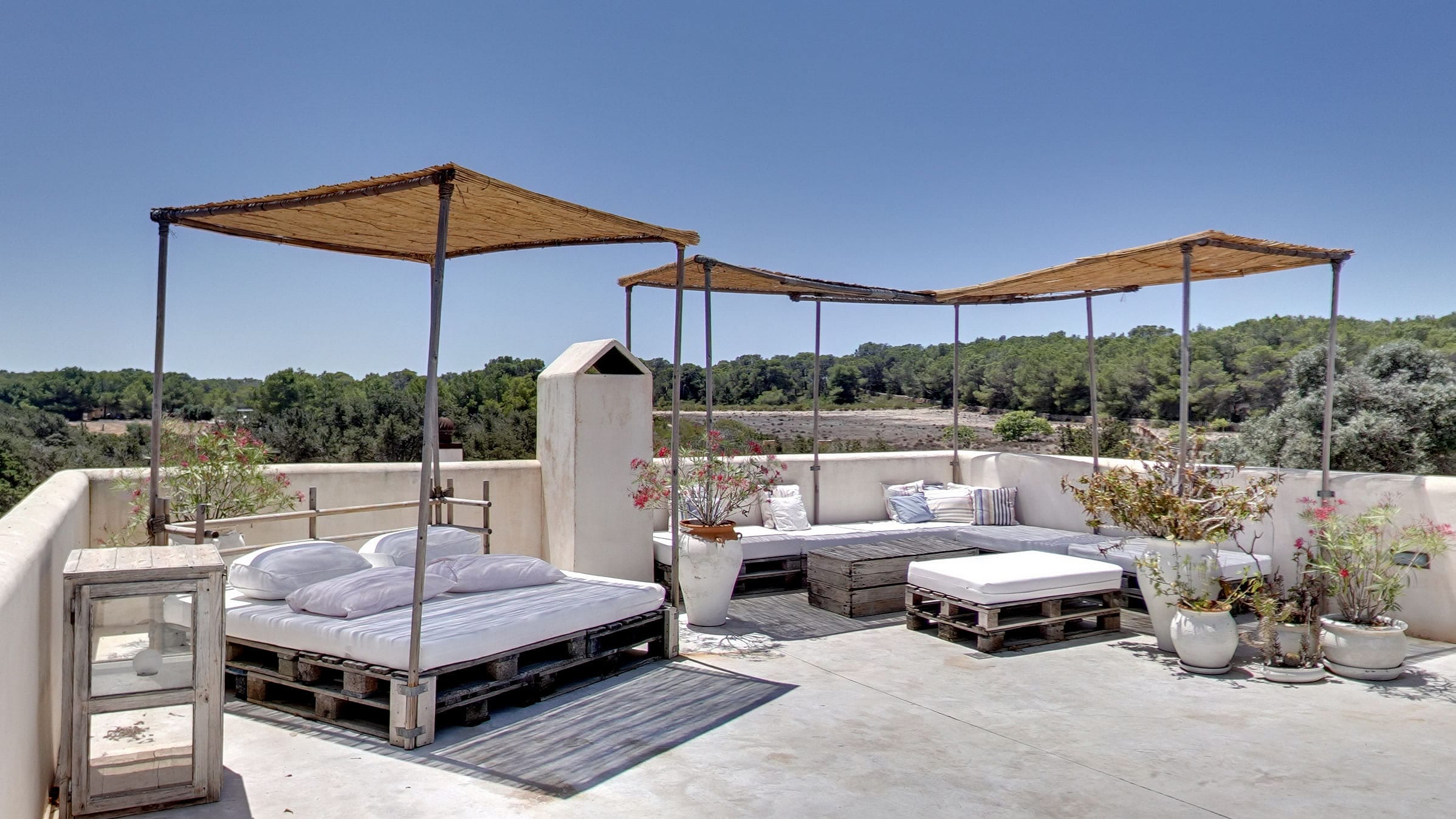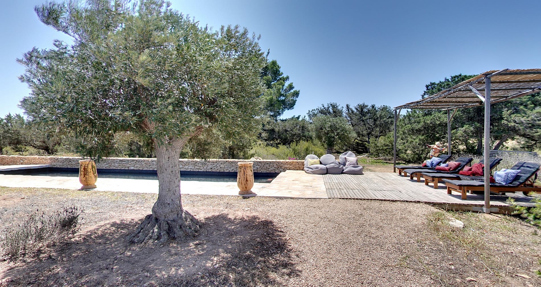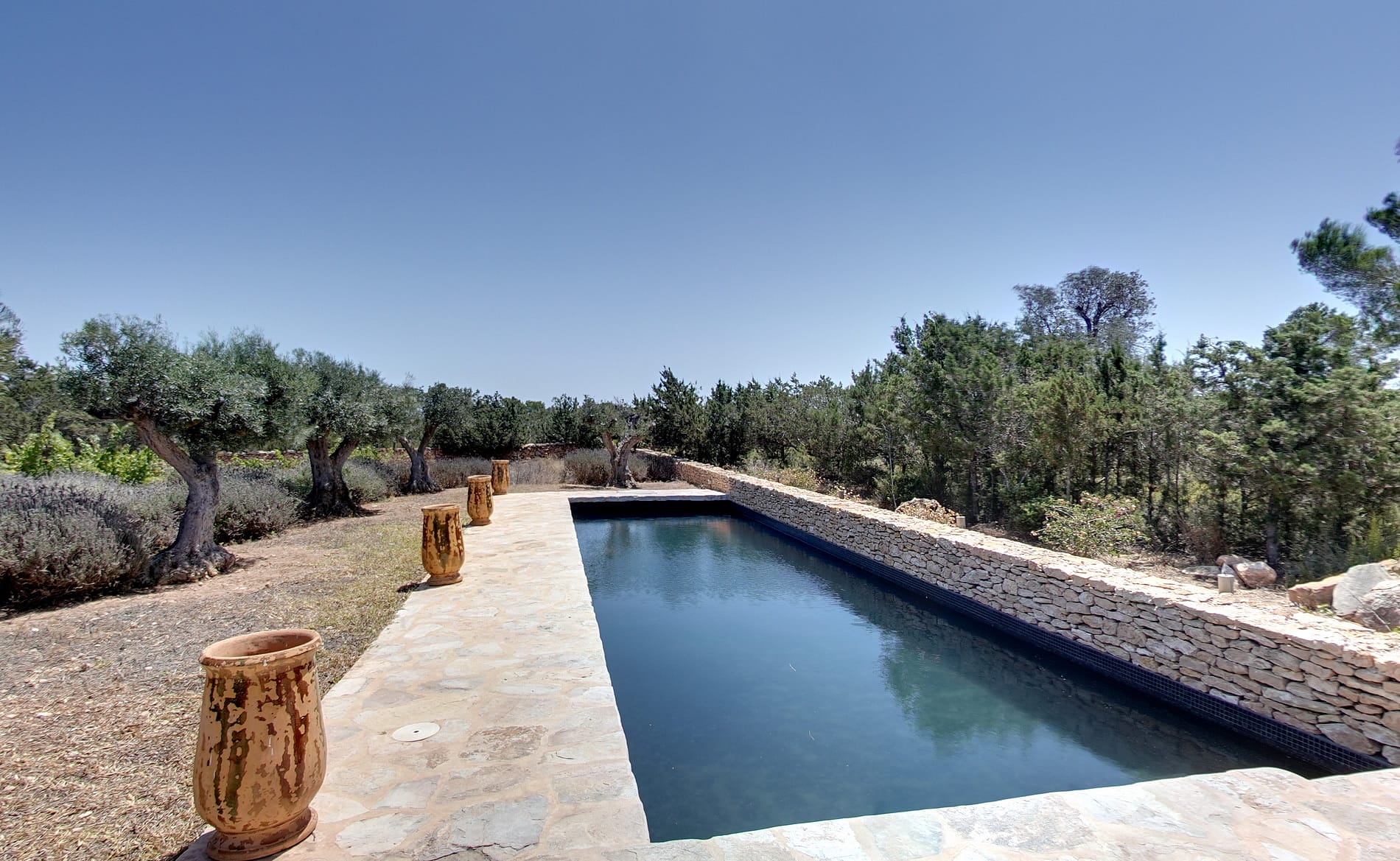 The outdoor areas offer plenty of space to relax on comfortable sun loungers, enjoy a quiet reading corner, or gather for an alfresco dinner under the stars. The villa is just a 15-minute drive from the iconic Cala Saona, where guests can experience crystal-clear waters and breathtaking sunsets. Additionally, the charming village of San Francesc, known for its boutique shops, fine dining, and warm atmosphere, is only a 10-minute drive away.