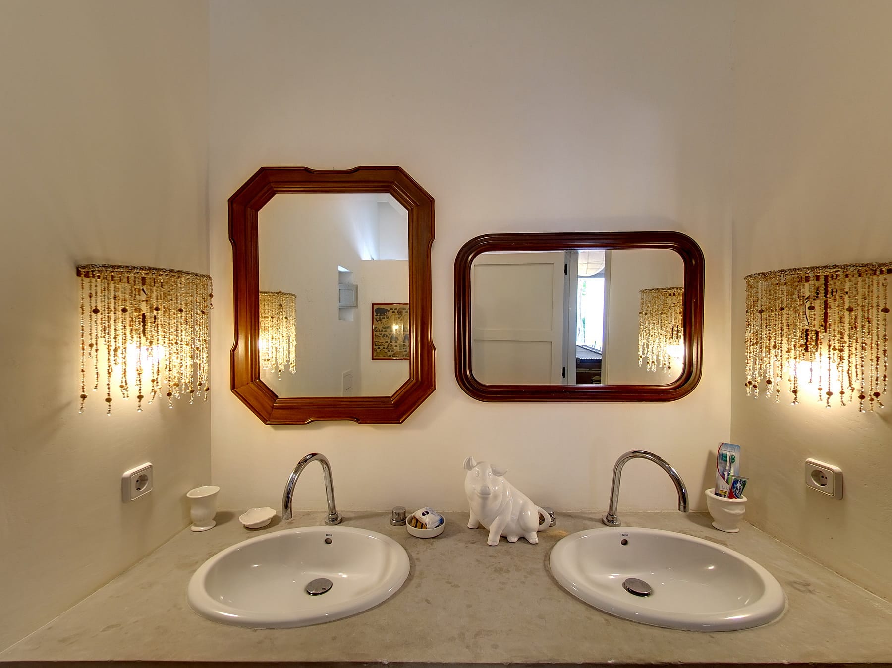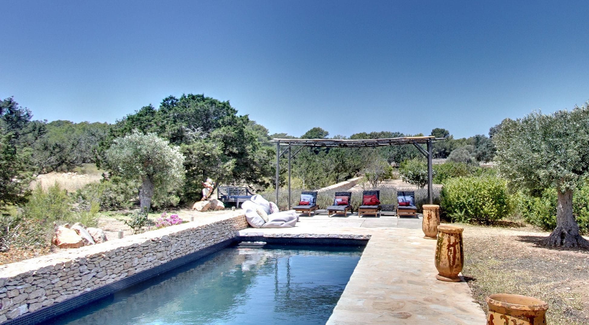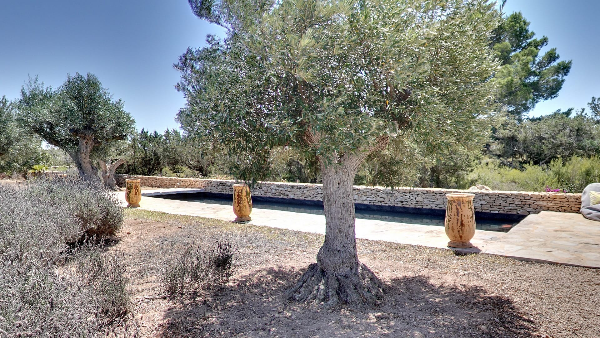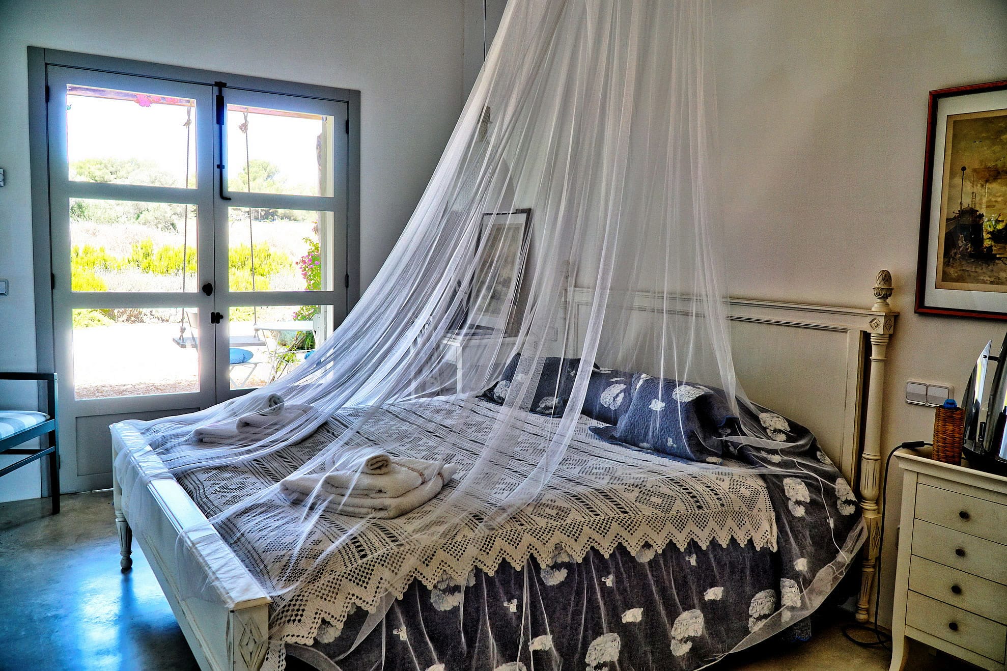 The outdoor areas offer plenty of space to relax on comfortable sun loungers, enjoy a quiet reading corner, or gather for an alfresco dinner under the stars. The villa is just a 15-minute drive from the iconic Cala Saona, where guests can experience crystal-clear waters and breathtaking sunsets. Additionally, the charming village of San Francesc, known for its boutique shops, fine dining, and warm atmosphere, is only a 10-minute drive away.