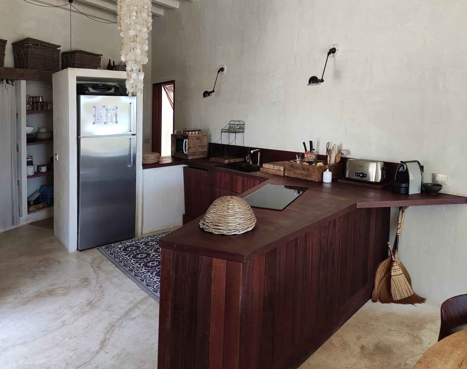 The kitchen is fully equipped with everything required for self catering and it enjoys a nice and bright living area with direct access to the garden and porch.