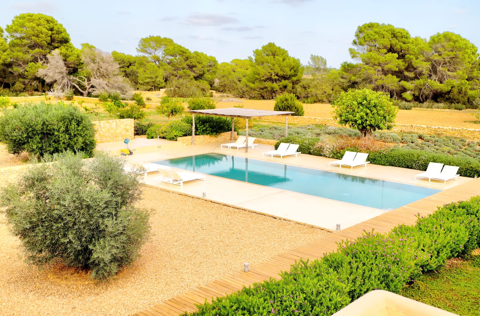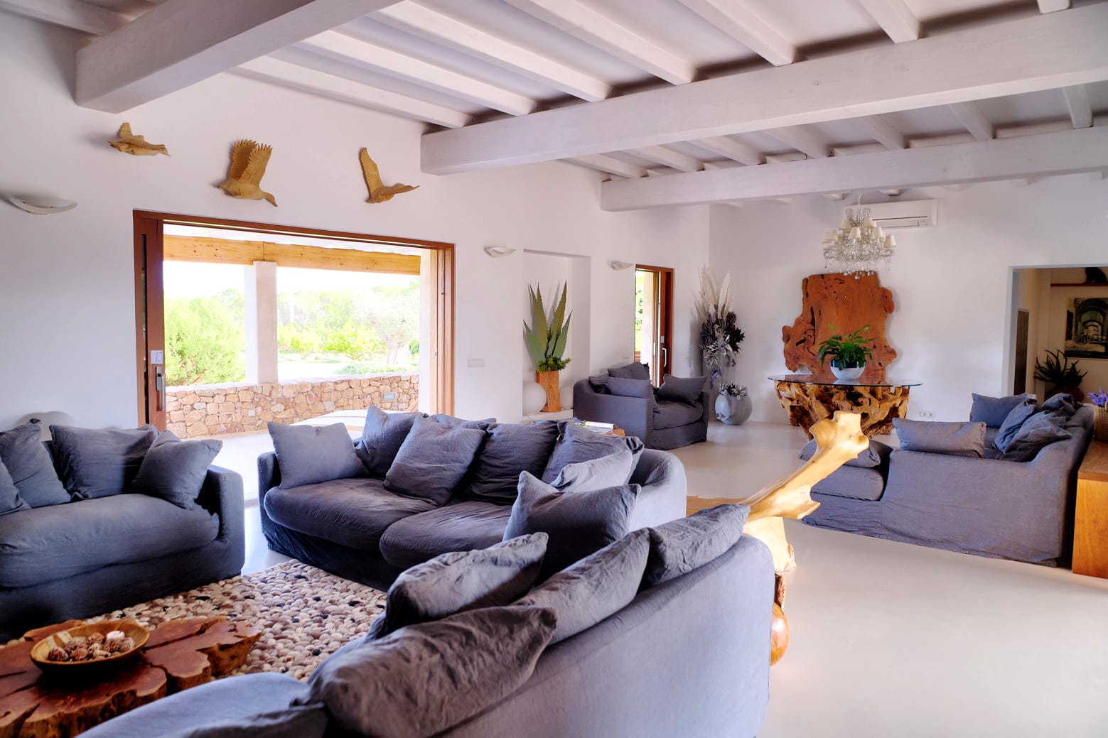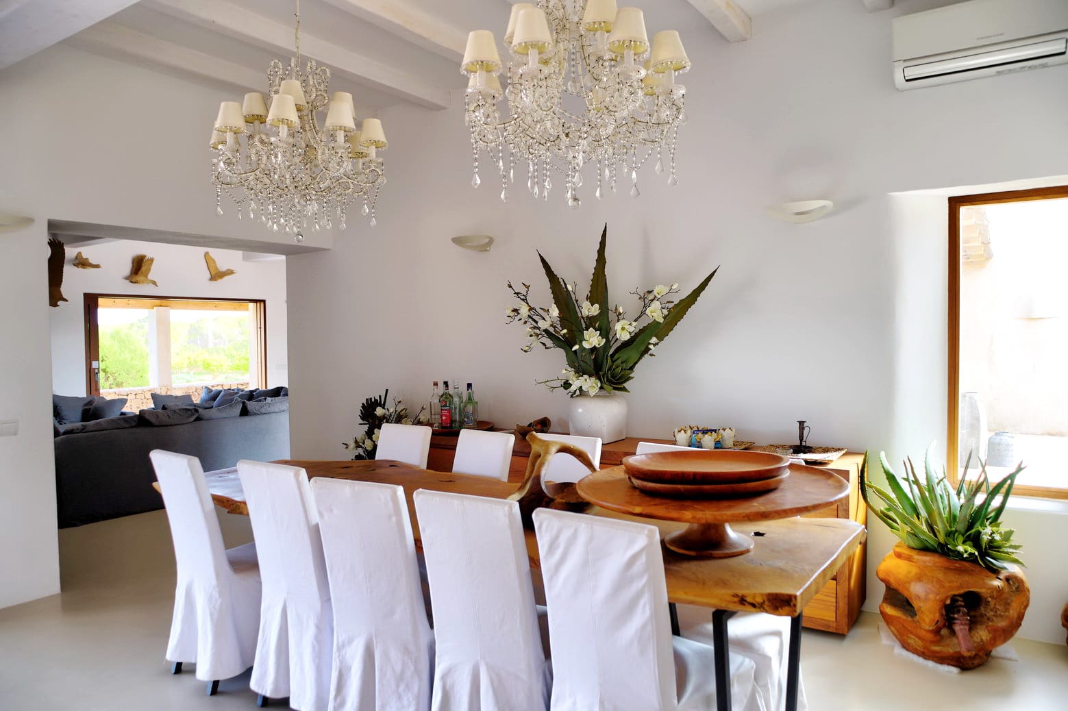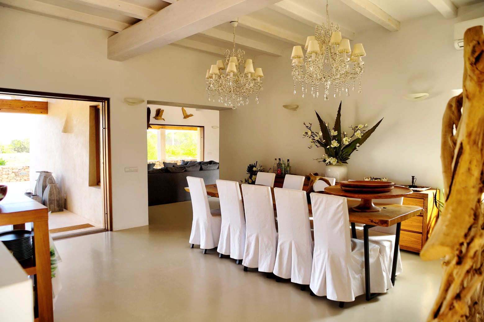 This villa is located in the countryside within Cap Barbaria. The nearest beach is Cala Saona. For all restaurants and amenities the closest town is San Francesc at 3km