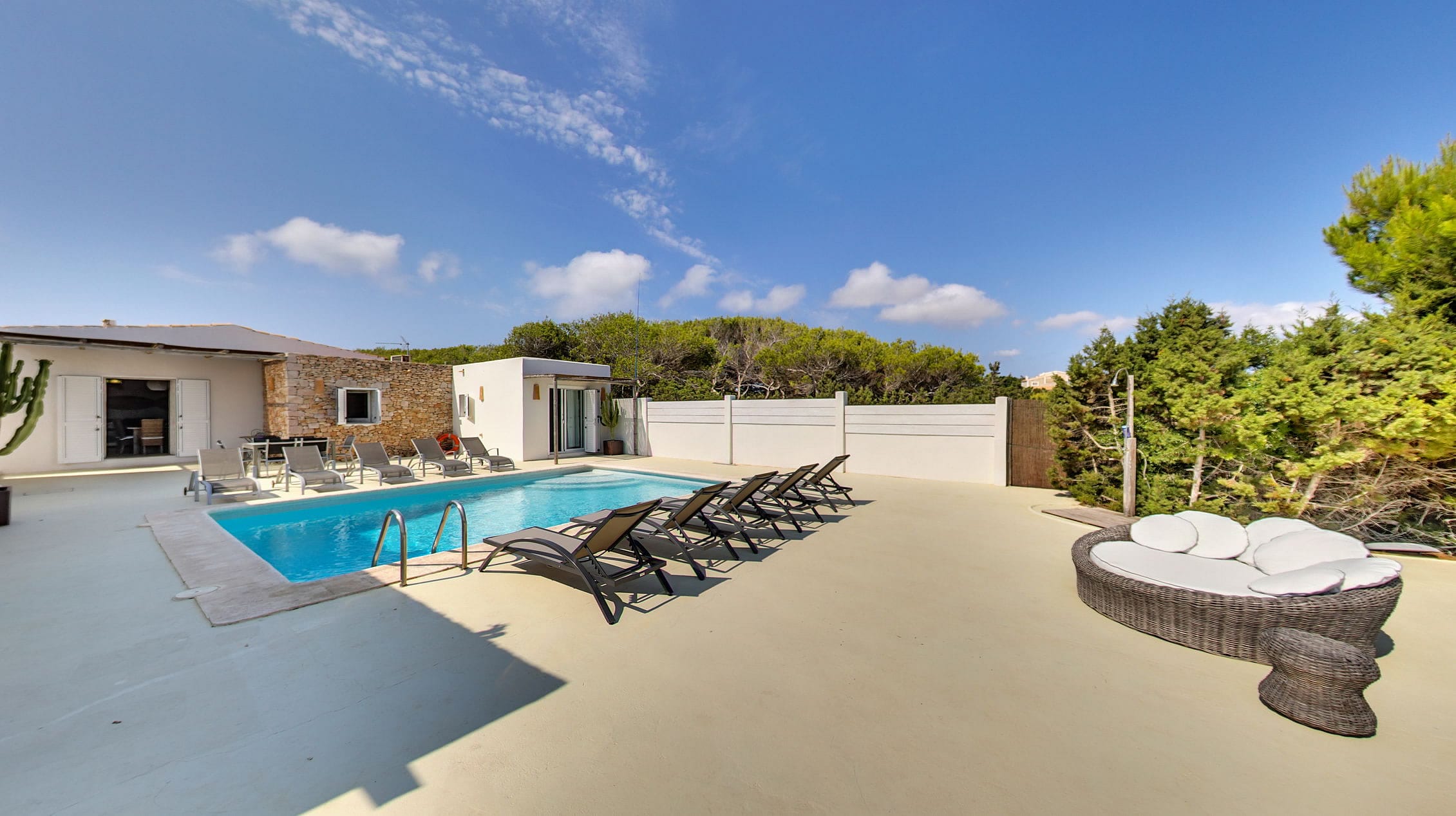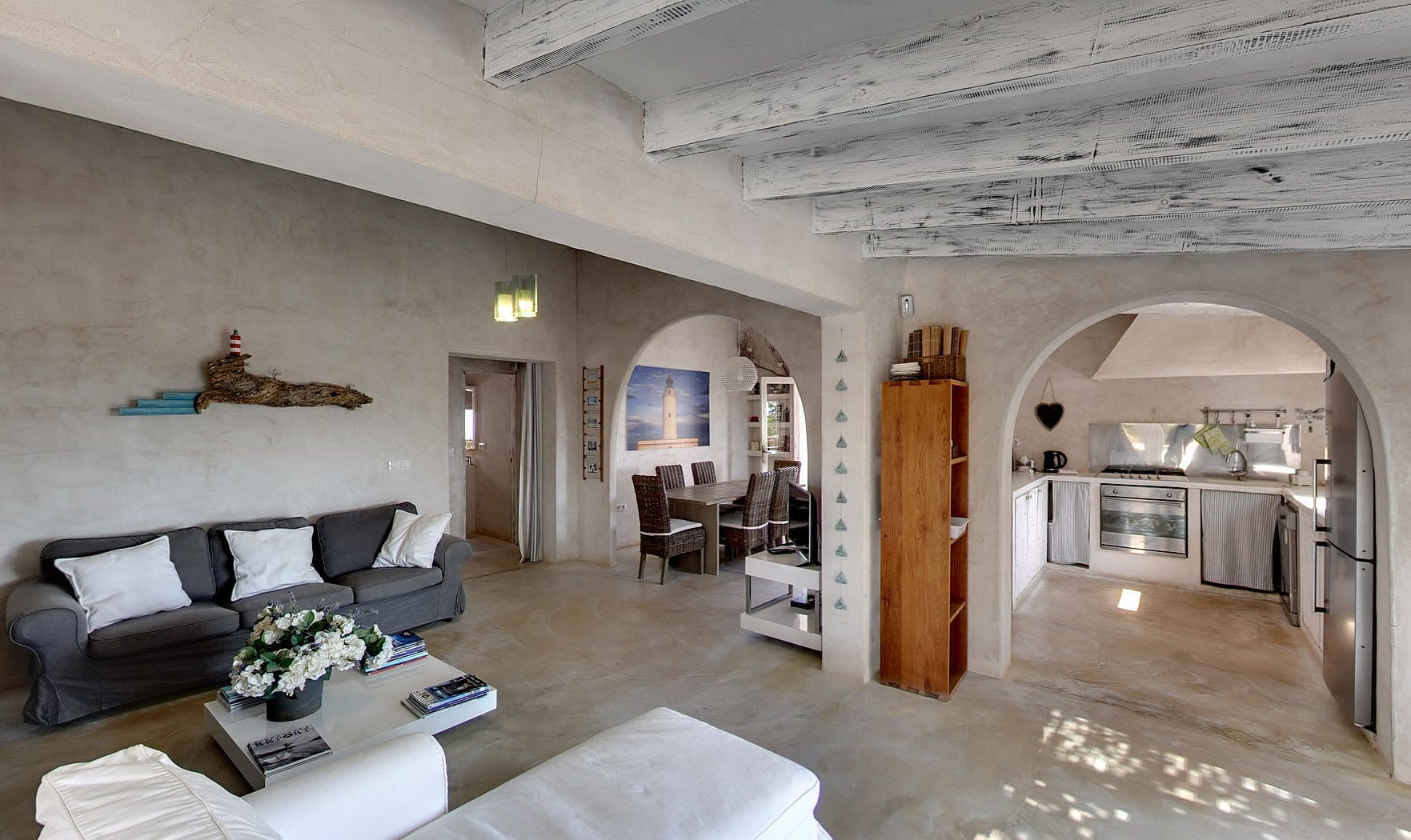 This Formentera villa rental offers the perfect combination of privacy and convenience. The villa is just minutes away from the stunning Es Caló and Migjorn beaches, where you can enjoy crystal-clear waters and soft golden sands. The lively town of San Ferrán is also within easy reach, offering restaurants, bars, and local markets.
