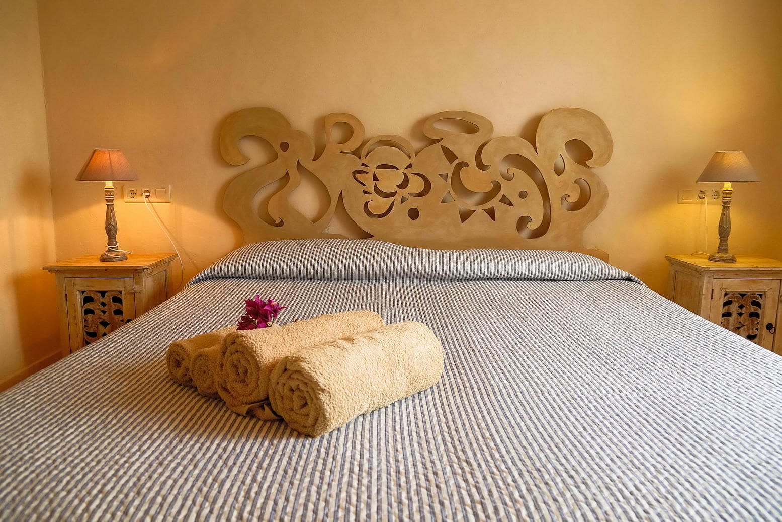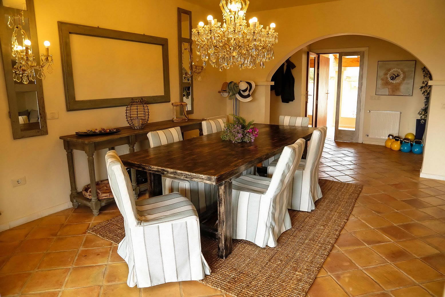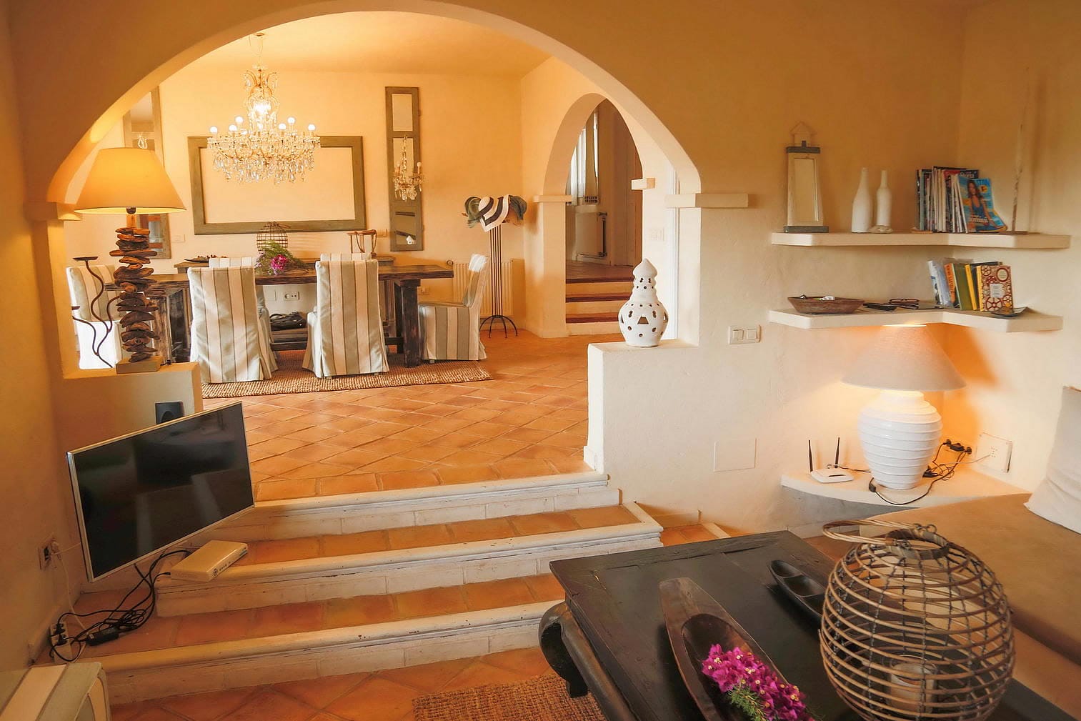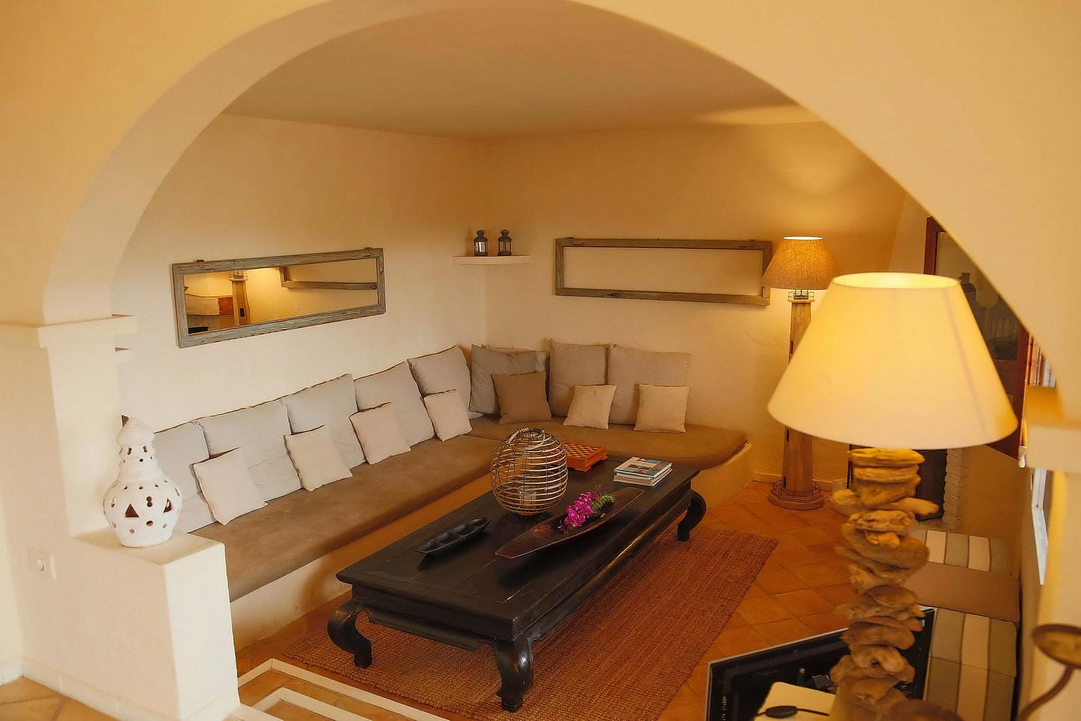 The comfortable terraces that connect to the living room offer shade and views over the typical vegetation of the island of Formentera.