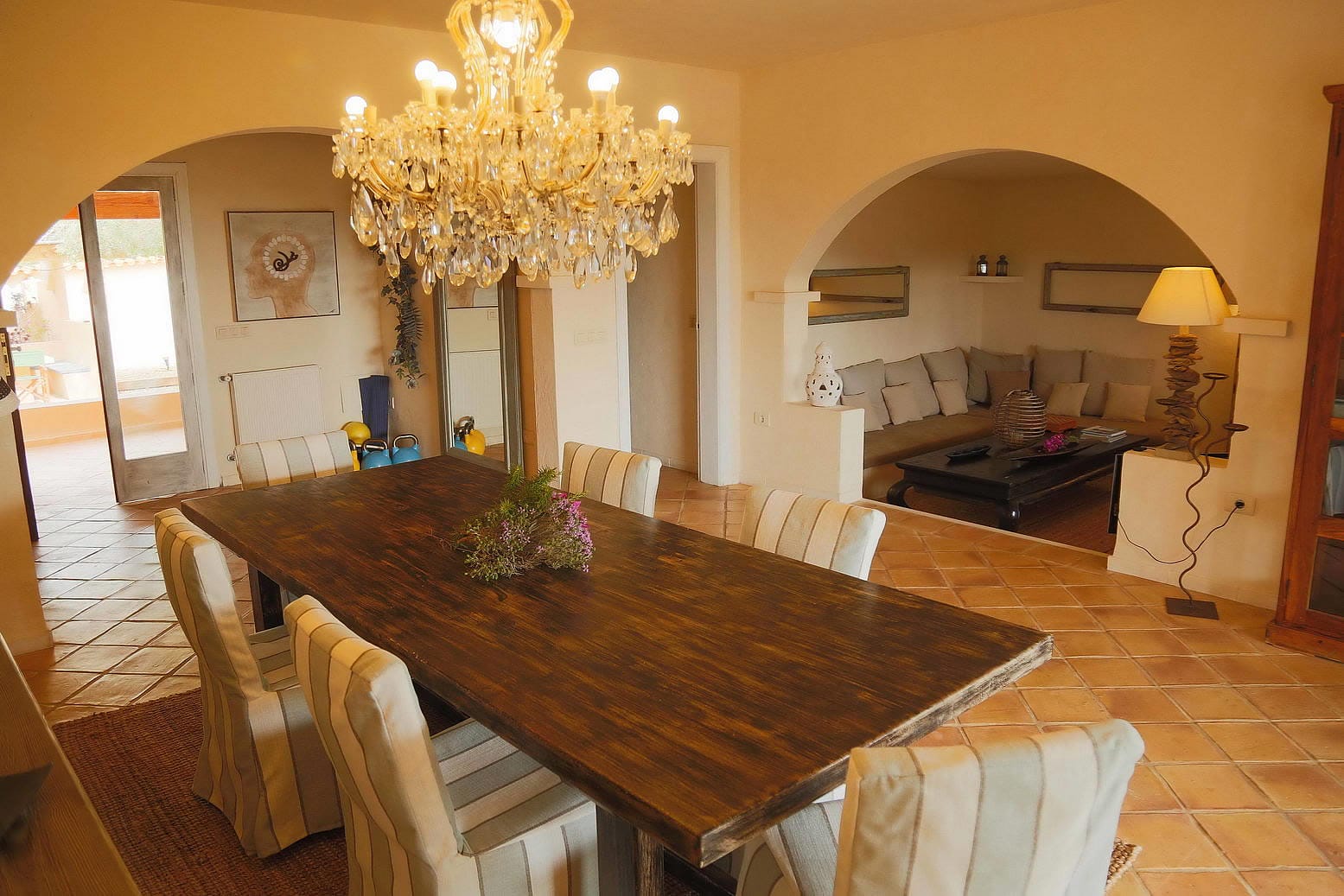 The house is developed on one ground floor, there is a large living room with sofas and relaxation area and dining room, this room has direct access to the front and back of the house