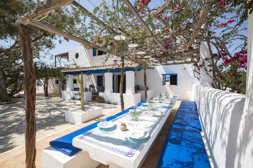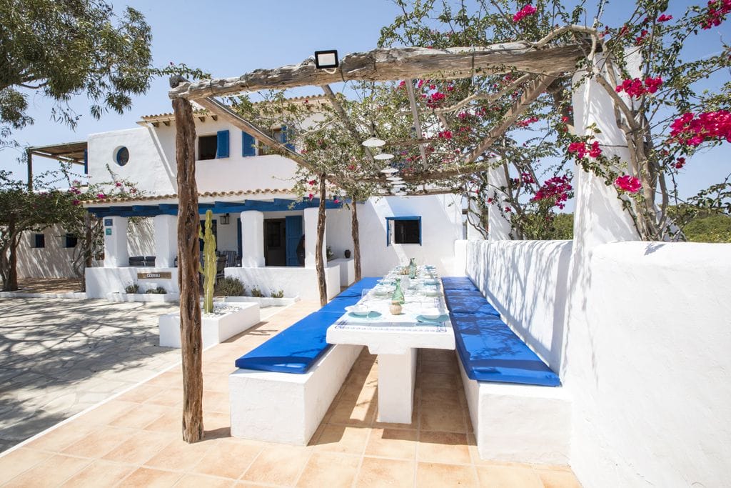 This villa in Formentera is situated in Es Calò, close to Migjorn beach in a quiet area but with the benefit of being close to the amenities such as beaches, sports, pharmacy, supermarket and various shops, as well as bars and restaurants of different styles.