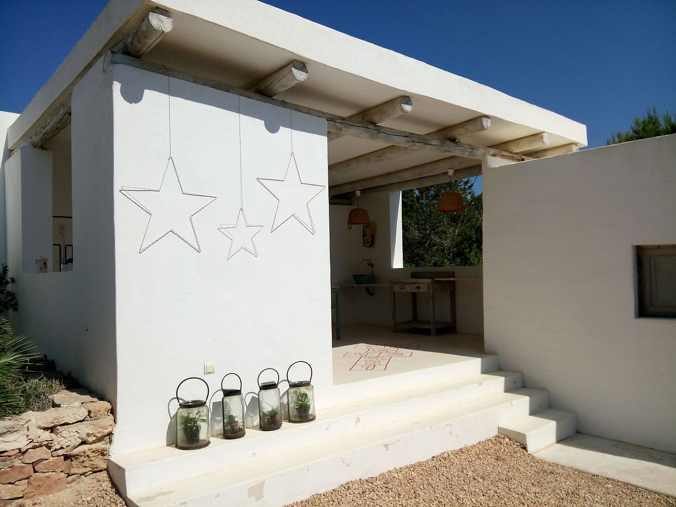 Step outside and embrace the beauty of Formentera’s natural surroundings. This villa rental in Formentera is designed for outdoor living, offering a private swimming pool with sun loungers, perfect for soaking up the Mediterranean sun.