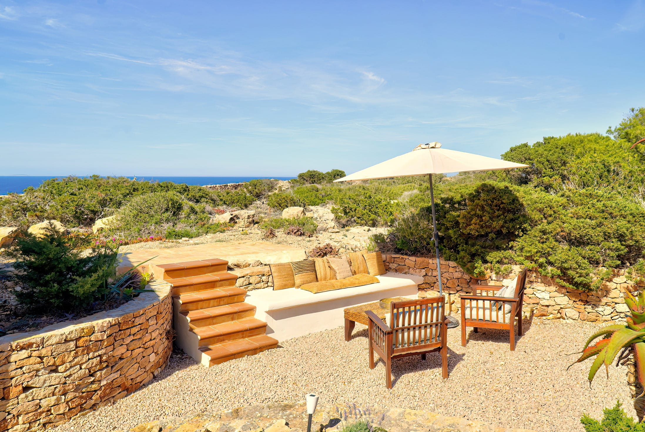 A set of 5 steps takes you up to chill out are where to enjoy those tremendous views of the sea.