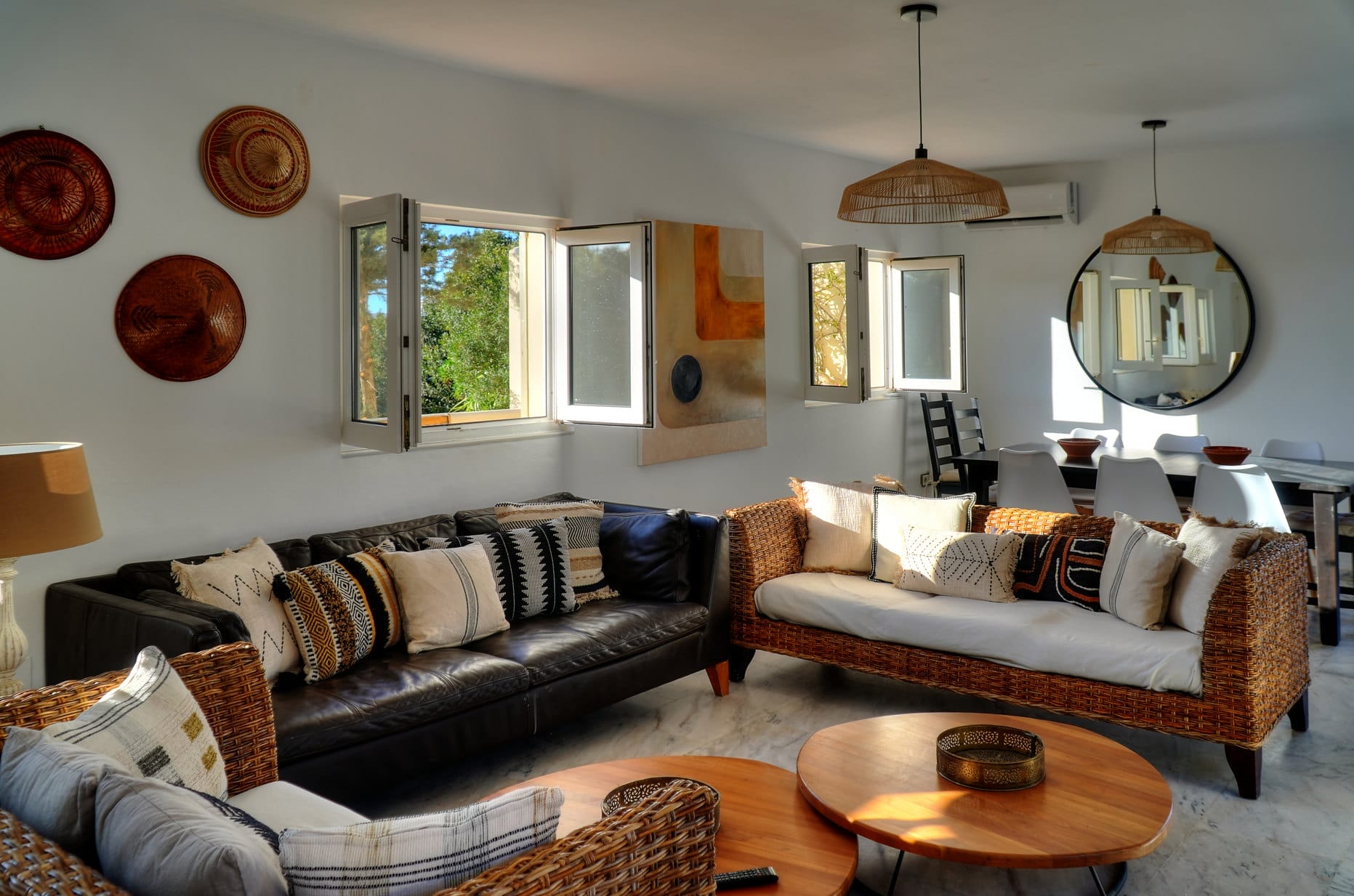 The living area is lively and well-lit thanks to the abundance of natural light that enters via the windows and french sliding doors that lead out to the front porch and the internal patio.