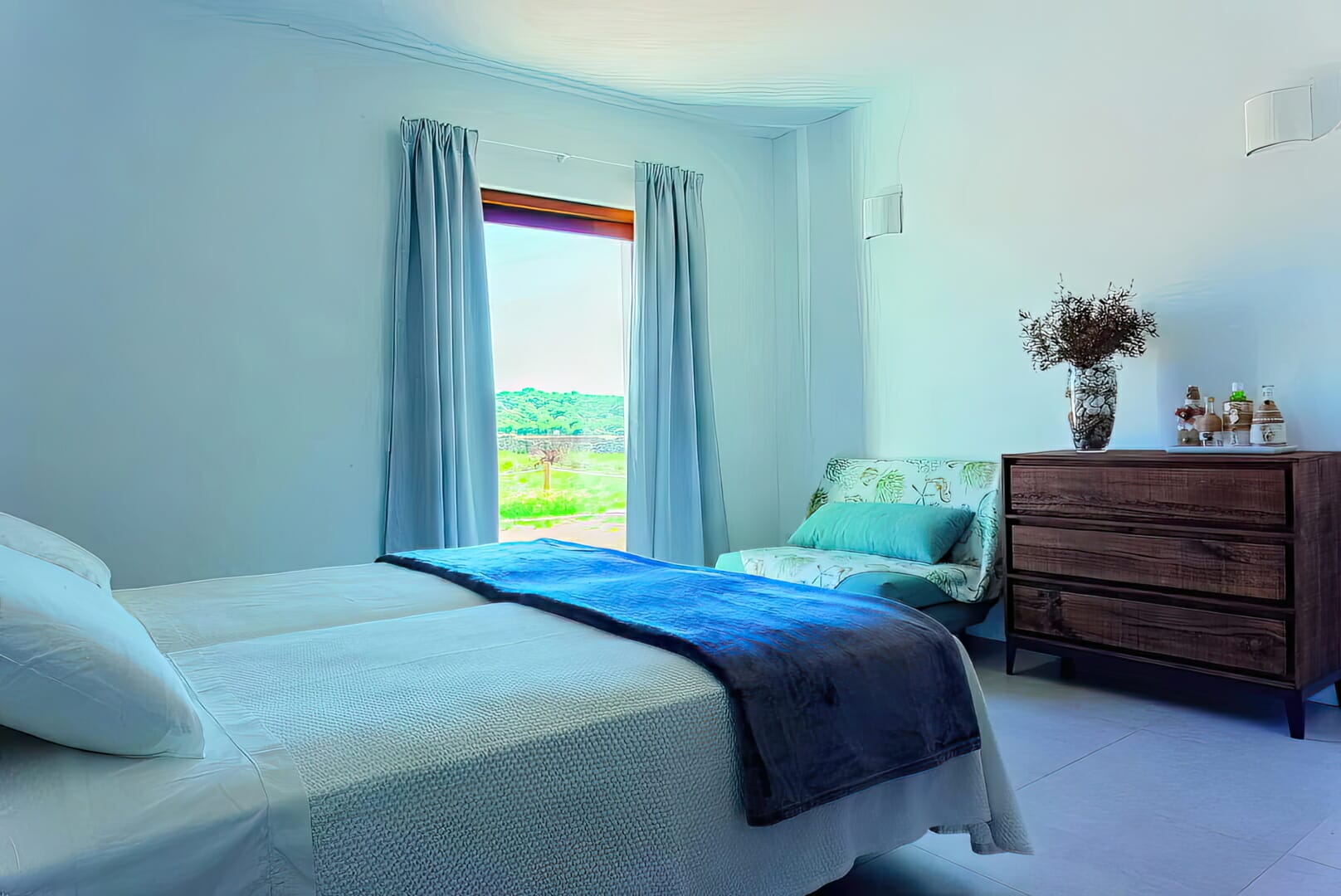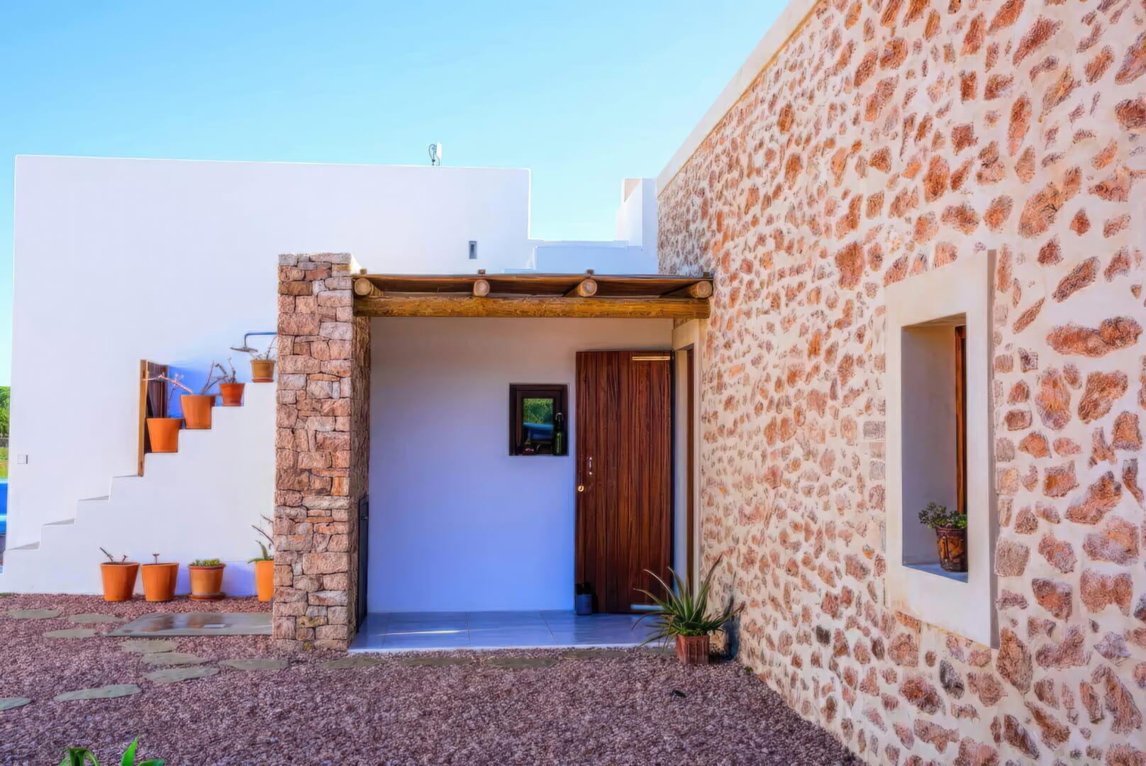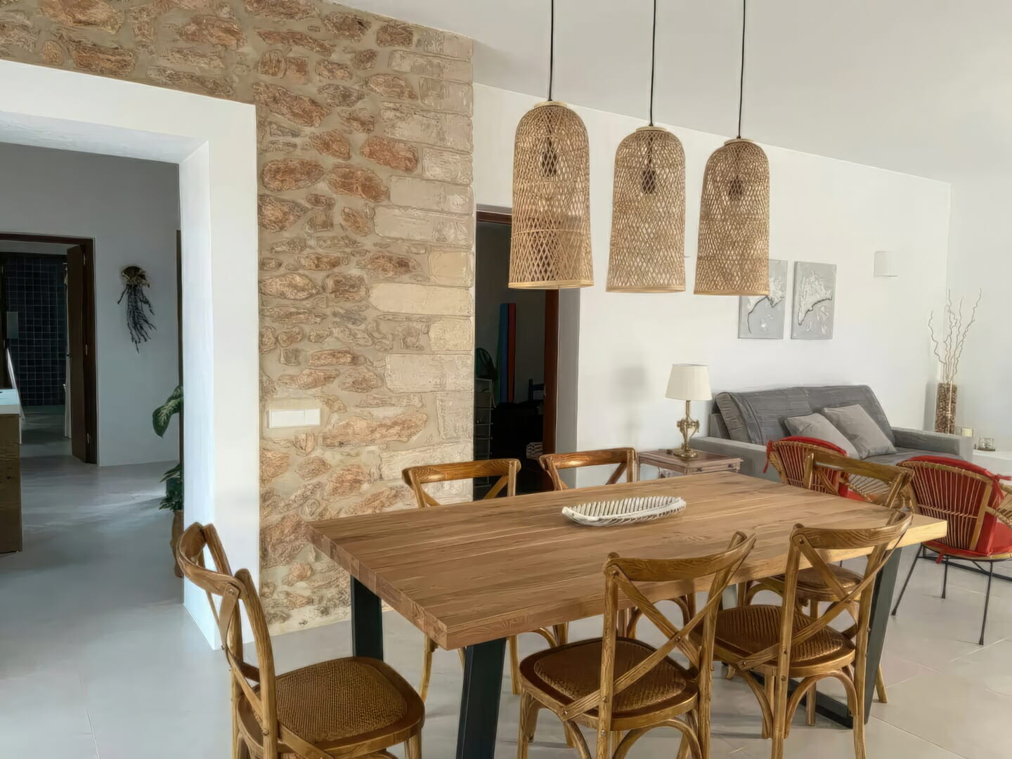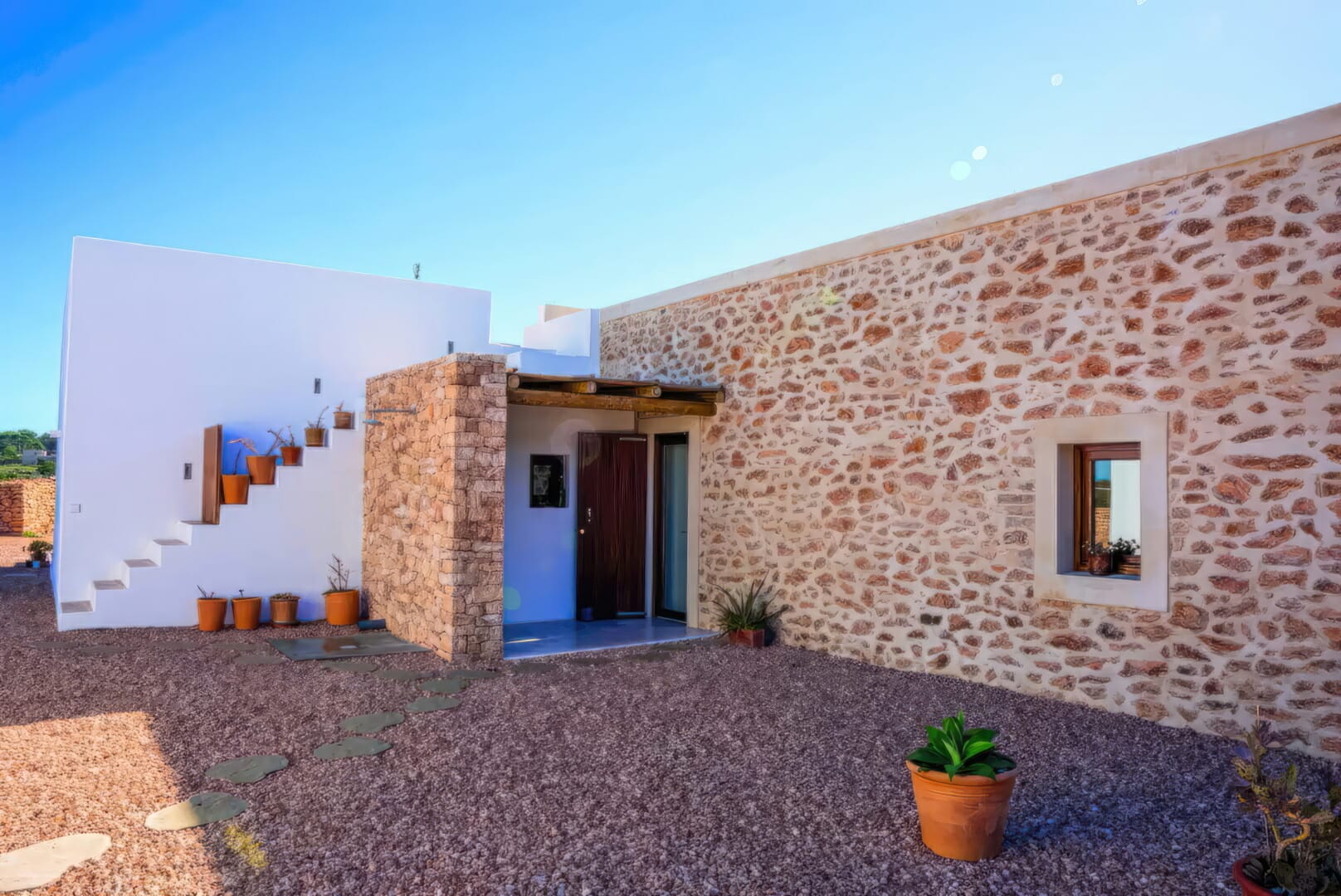 Located in a rural environment, the villa is surrounded by an impressive natural landscape. Just a few minutes from the town, where you will find a variety of restaurants, supermarkets and the famous hippy market that takes place on Wednesdays and Sundays. In addition, you will be only 15 minutes by car from the renowned beaches of the south coast of Migjorn and the picturesque fishing village of Es Caló de Sant AgustÃ. These paradisiacal beaches will give you the opportunity to relax on their white sands and immerse yourself in the crystal clear waters of the Mediterranean.