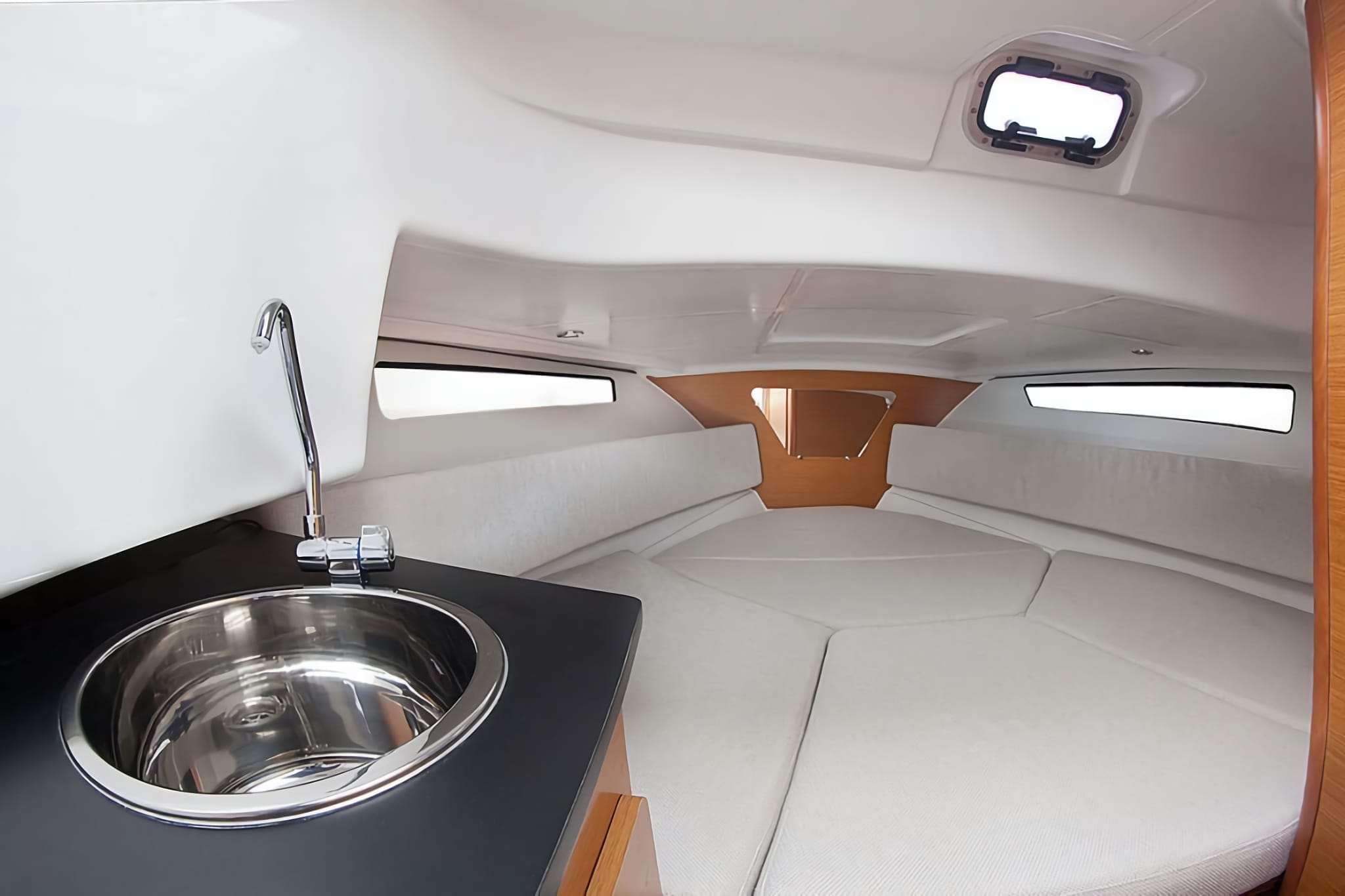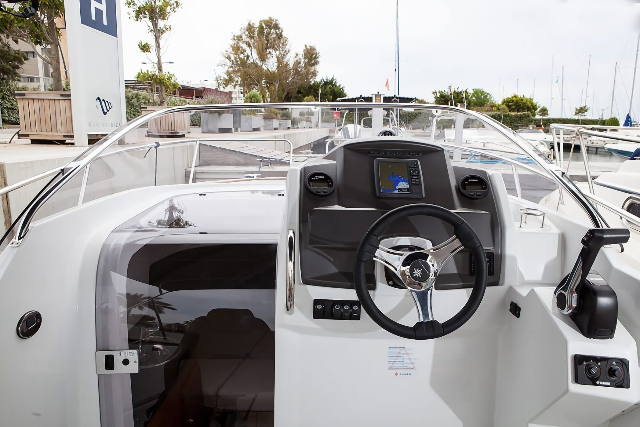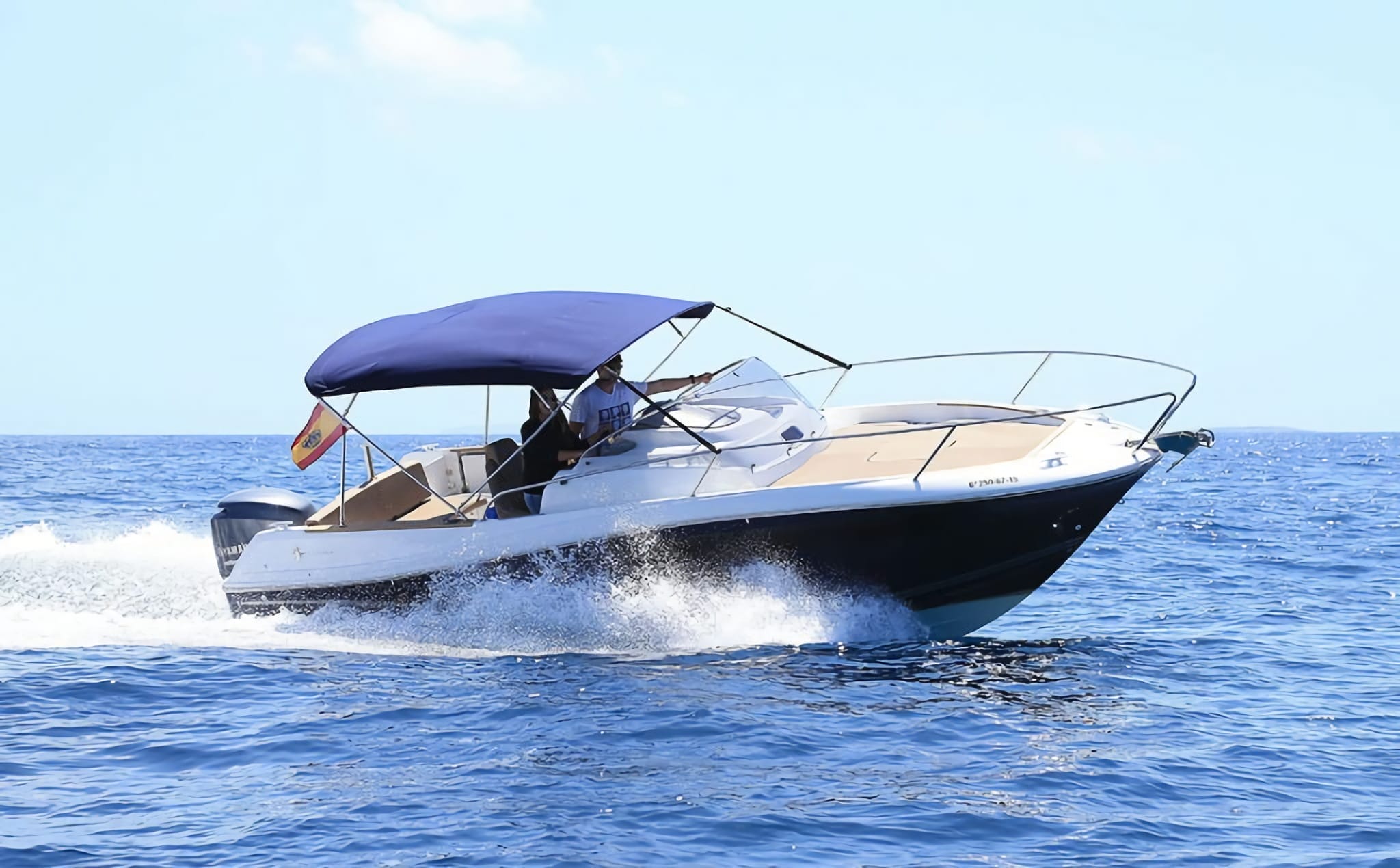 The Cap Camarat 7.5 WA Series 2, crafted by Jeanneau Boats, is a standout in the 7-meter motorboat class, offering the perfect blend of performance, comfort, and style. Designed for both relaxation and adventure, this sleek vessel features a spacious sundeck at the bow, a comfortable sofa area at the stern, and ergonomic pilot and co-pilot seats for an effortless cruising experience. Equipped with a high-quality stereo system, an awning for shade, and an outdoor shower for refreshing dips in the sea, the Cap Camarat 7.5 WA ensures a seamless day on the water. Whether you’re looking for a practical and stylish boat for island-hopping or a romantic getaway, this vessel is the ideal choice. Rent it without a skipper and surprise your partner with an unforgettable boat trip to Formentera, where you can explore the island’s most stunning hidden coves, swim in crystal-clear waters, and enjoy a leisurely meal at a charming beachside restaurant. Perfect for a day of sun, sea, and relaxation, the Cap Camarat 7.5 WA delivers an exceptional boating experience.