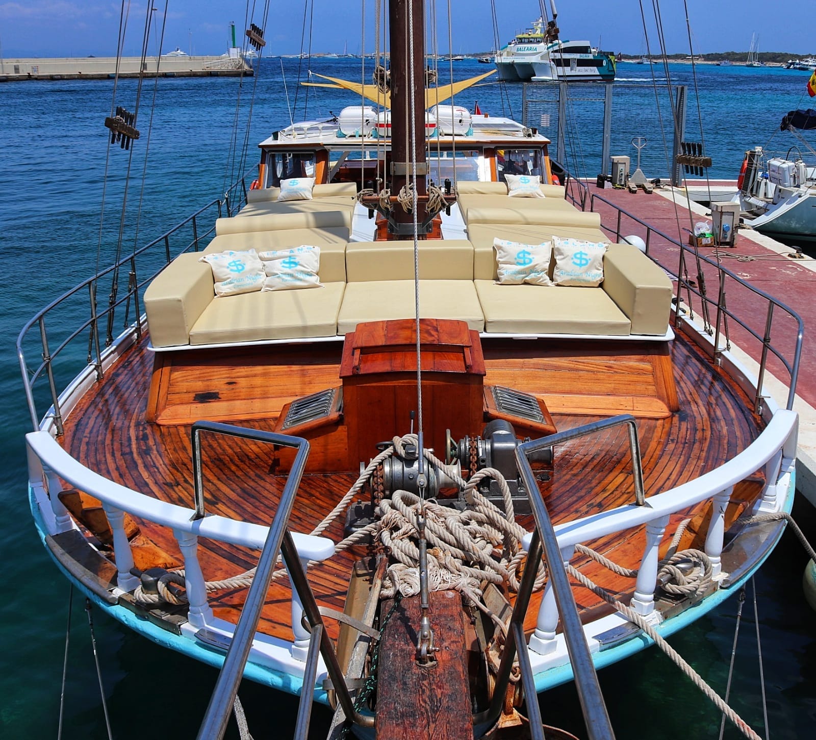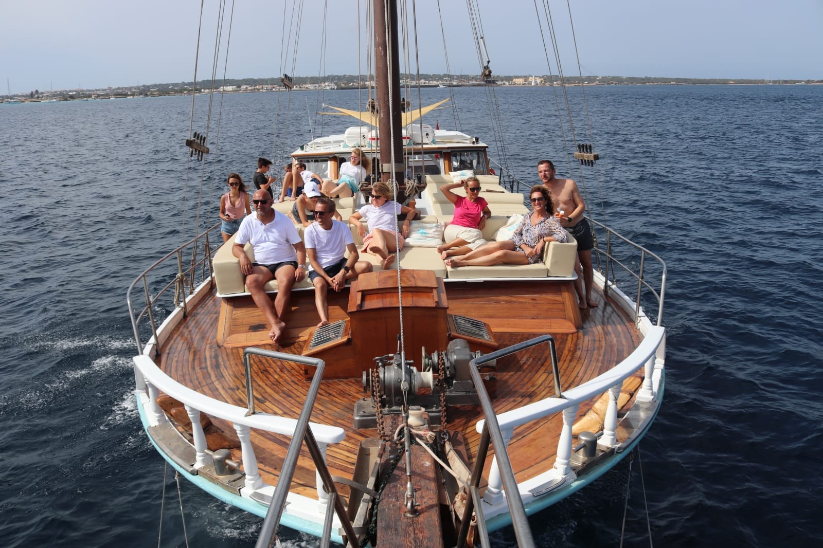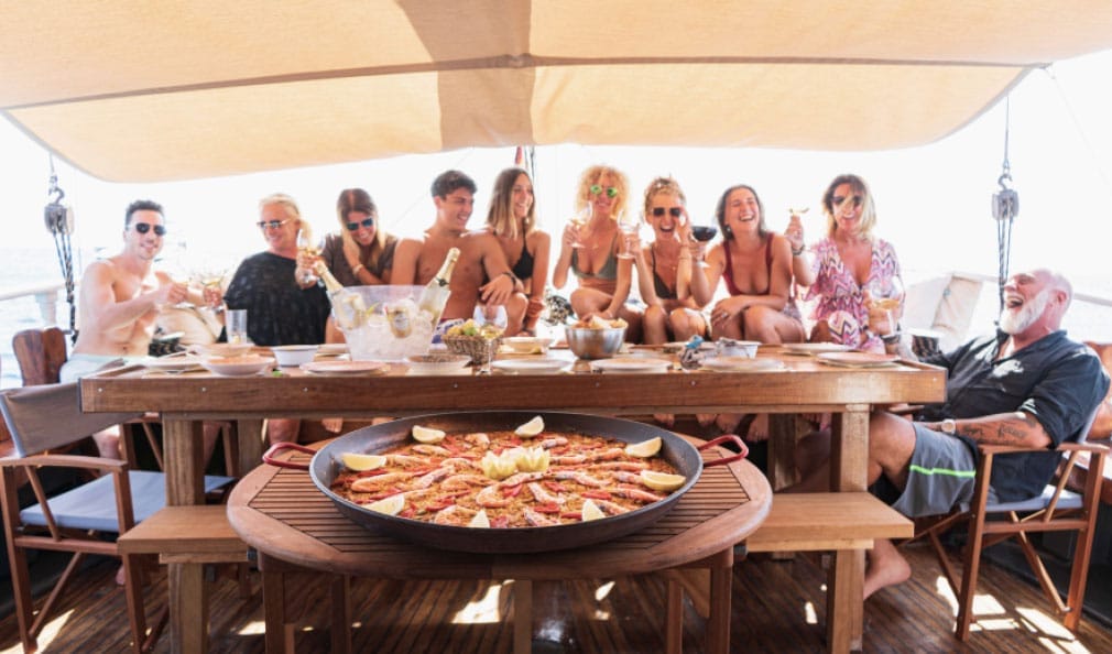 Chartering this gulet is the perfect way to enjoy an unforgettable day at sea, exploring the beautiful coastline of Ibiza and Formentera. With a capacity of up to 25 people, it offers spacious areas to lounge, sunbathe, and have a great time with friends or family. A typical day on board begins at the port of La Savina, in Formentera. From there, we set sail towards the island of Espalmador, enjoying stunning views of Illetas beach along the way. Once anchored, the sailor will take you to the island on the dinghy—an almost untouched paradise in the heart of the Mediterranean. Back on board, a delicious lunch awaits you, served right on the gulet. After a refreshing swim and a moment to relax, we continue our journey towards Cala Saona, sailing and soaking in the beauty of the coastline. In Cala Saona, with its crystal-clear waters, you can enjoy snorkeling or simply take one last swim before heading back to the port at sunset. Get in touch with us through the form above. Don’t wait—charter your gulet in Ibiza and Formentera now and live a truly unique experience at sea.